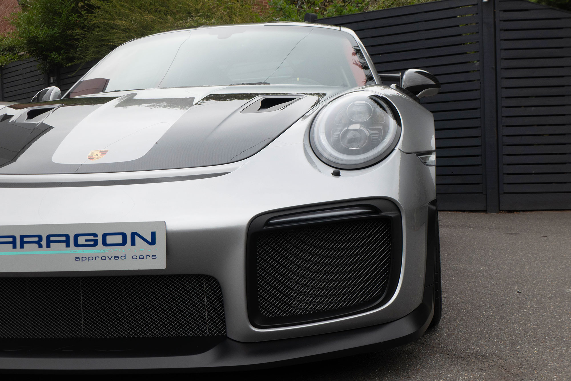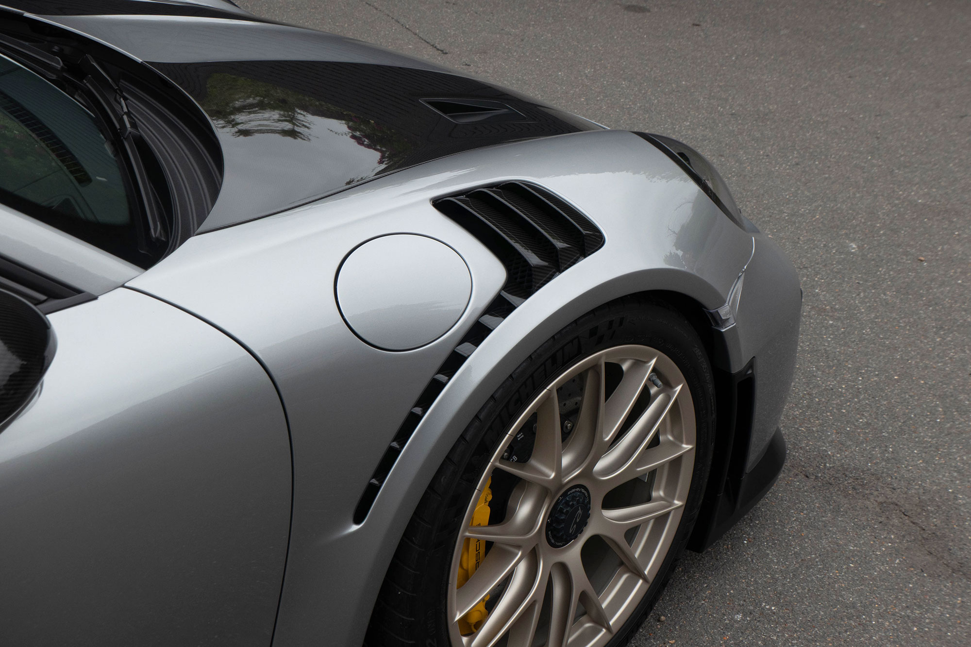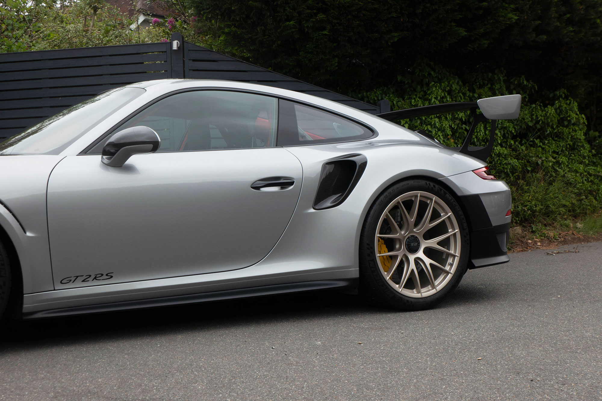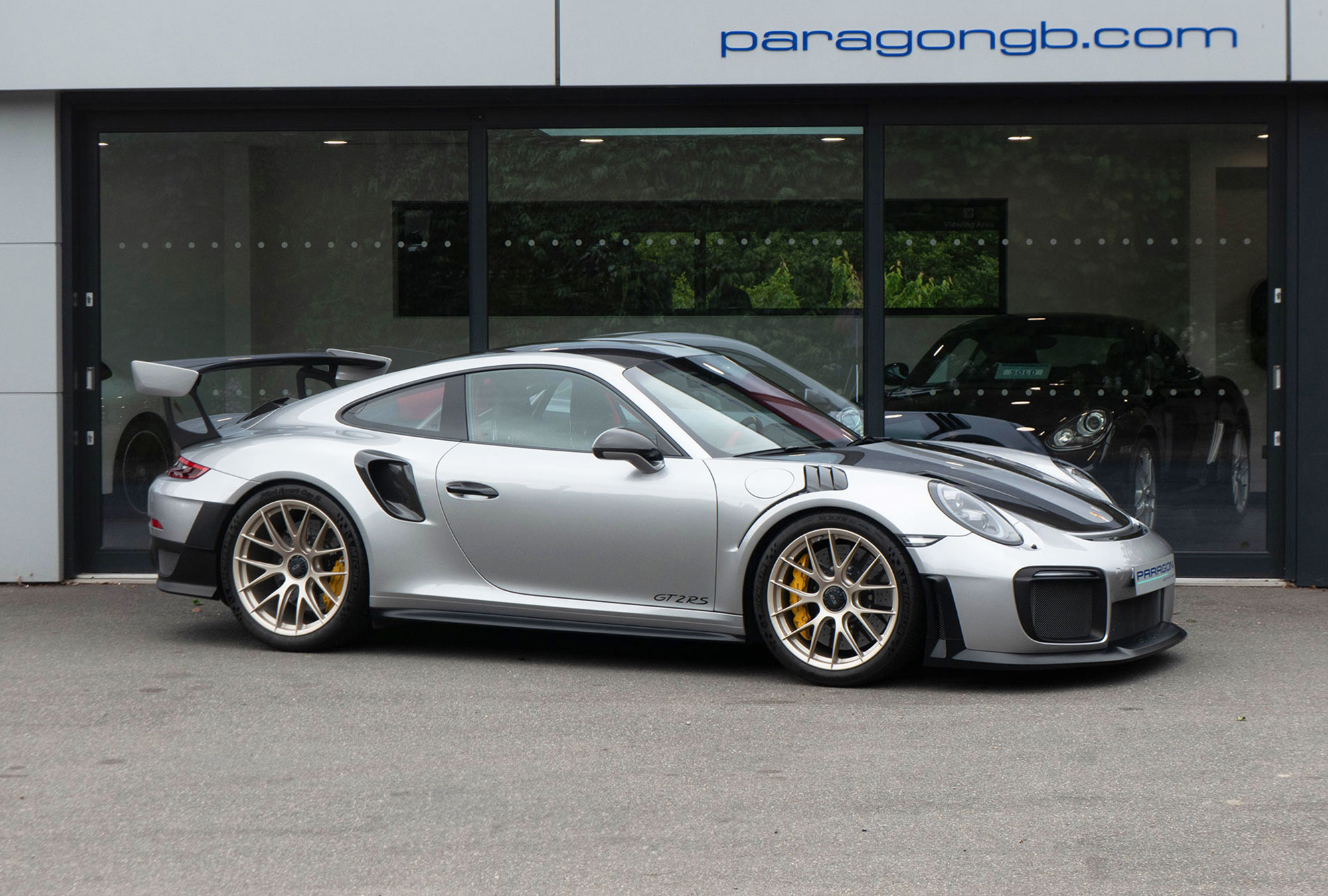 This left hand drive 911 GT2RS (991) has the 7-speed PDK gearbox and is presented in GT Silver with 918 carbon bucket seats.