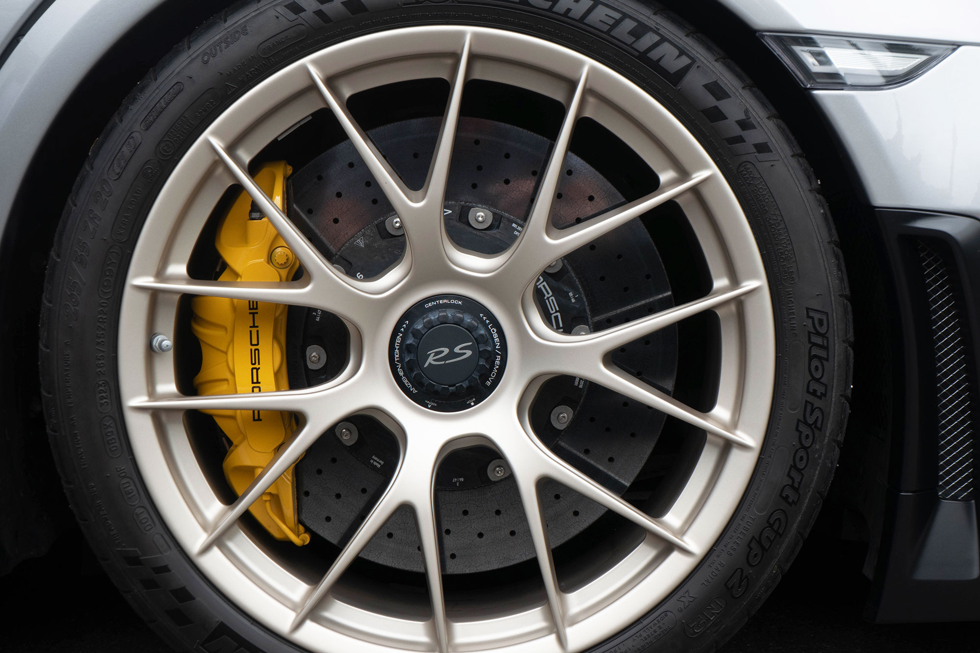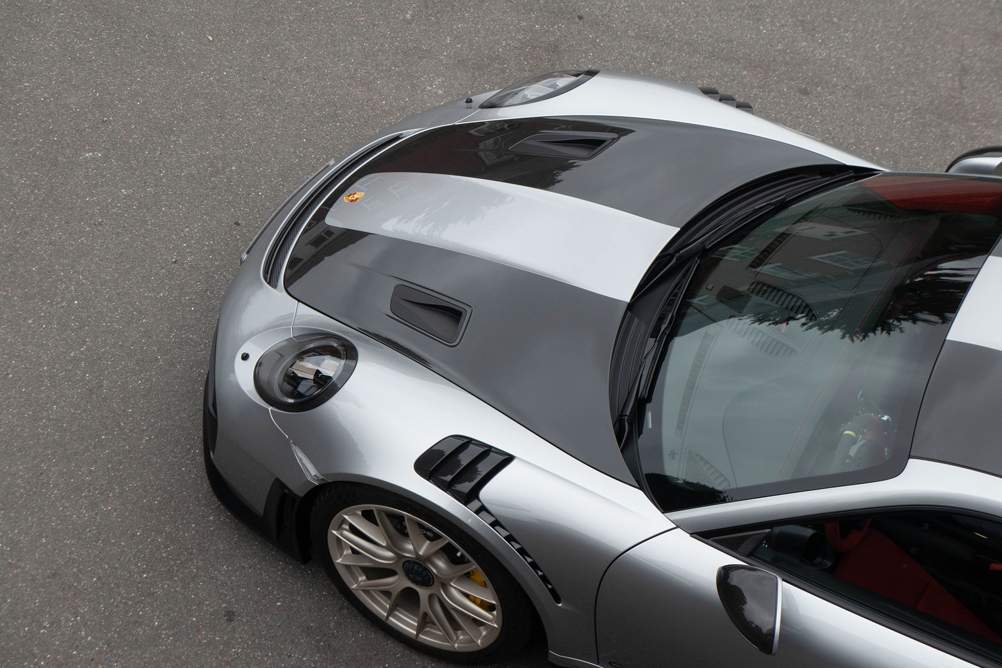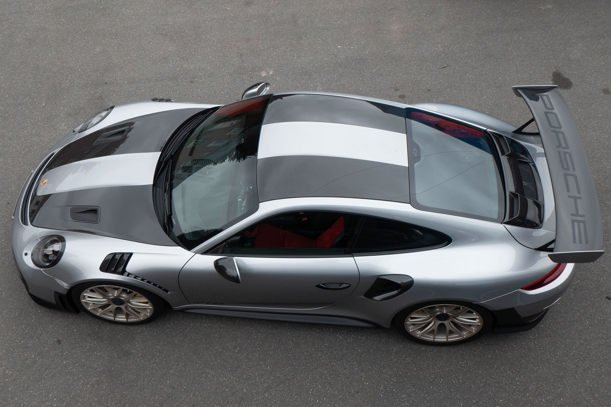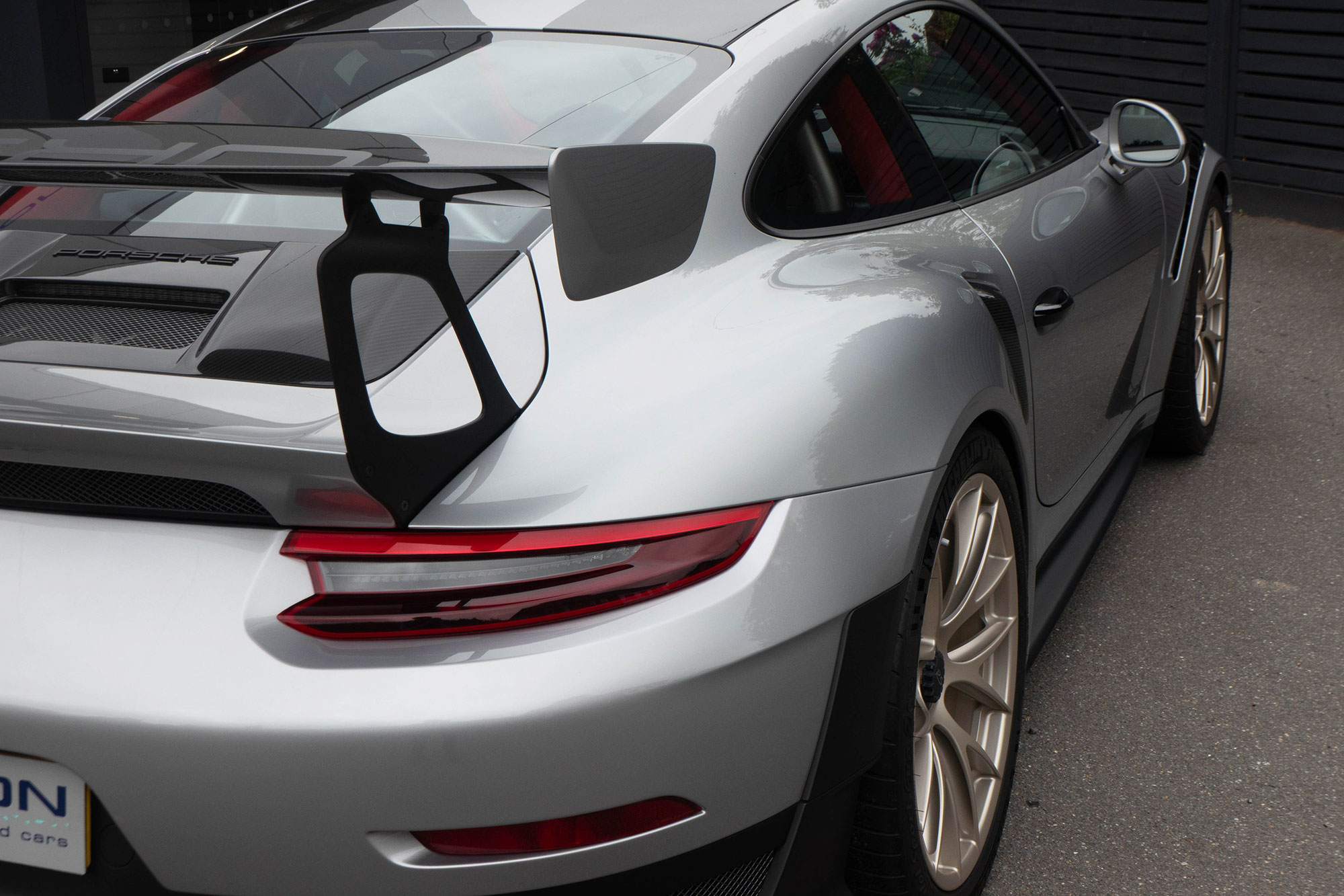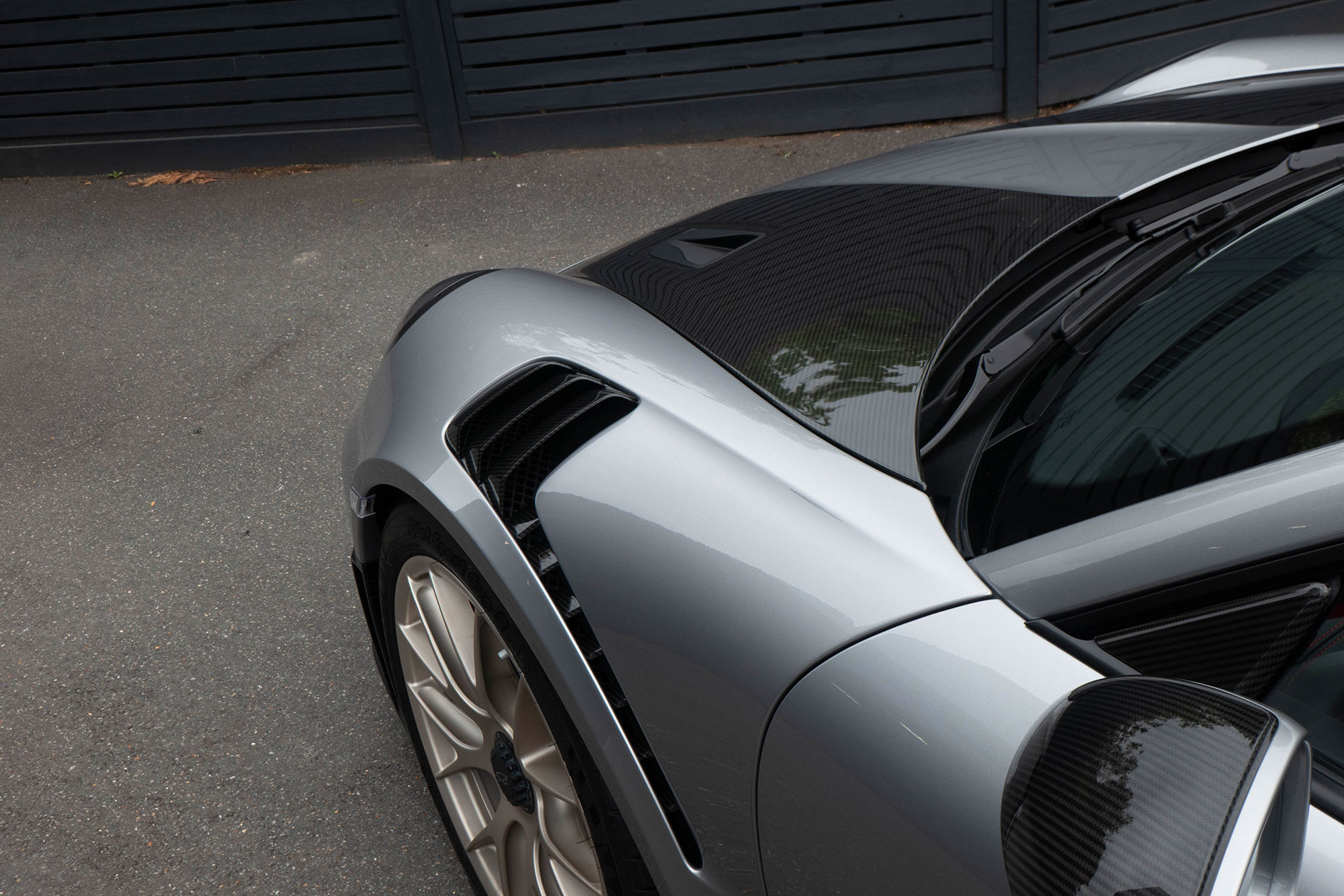 This left hand drive 911 GT2RS (991) has the 7-speed PDK gearbox and is presented in GT Silver with 918 carbon bucket seats.