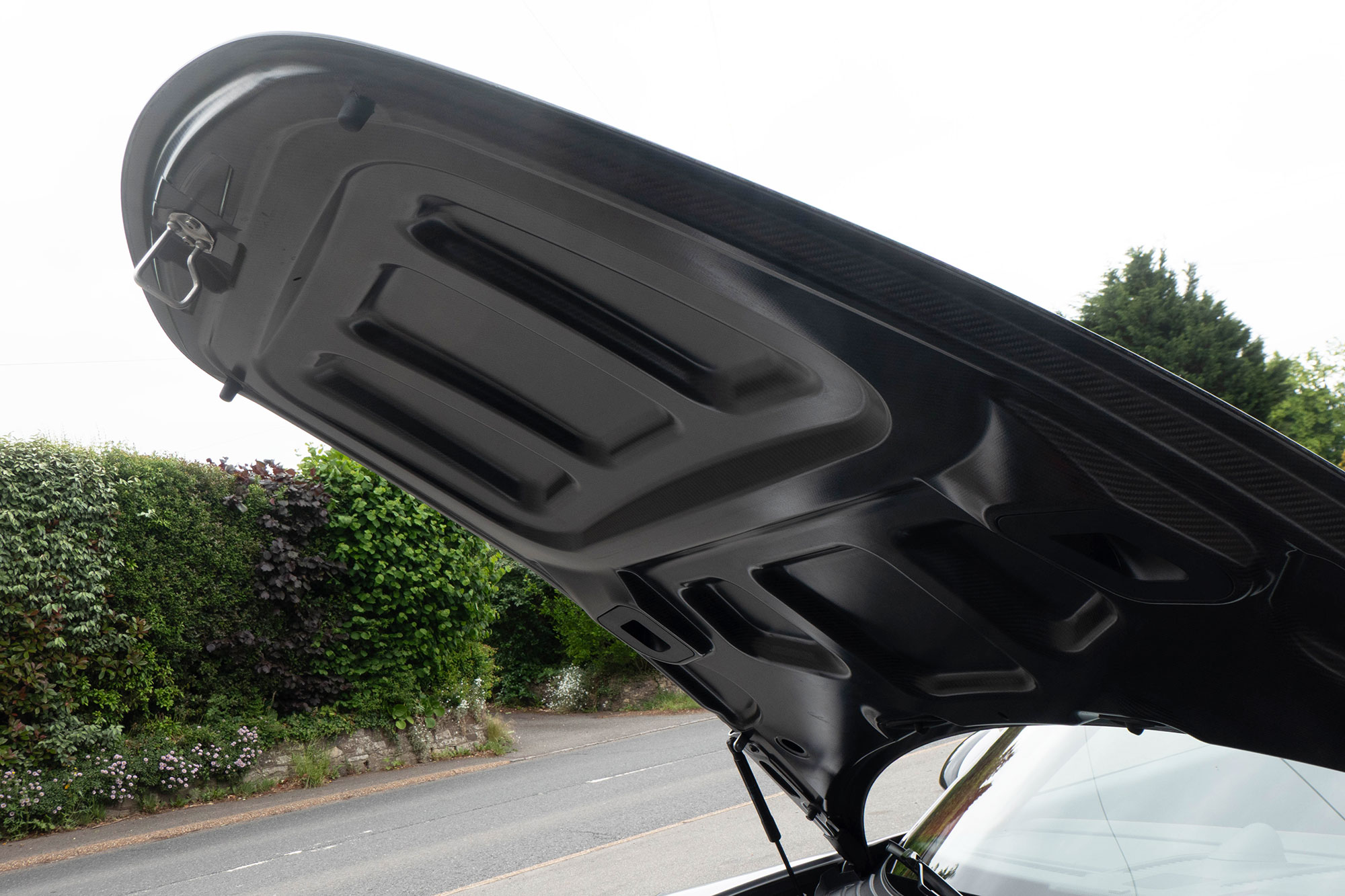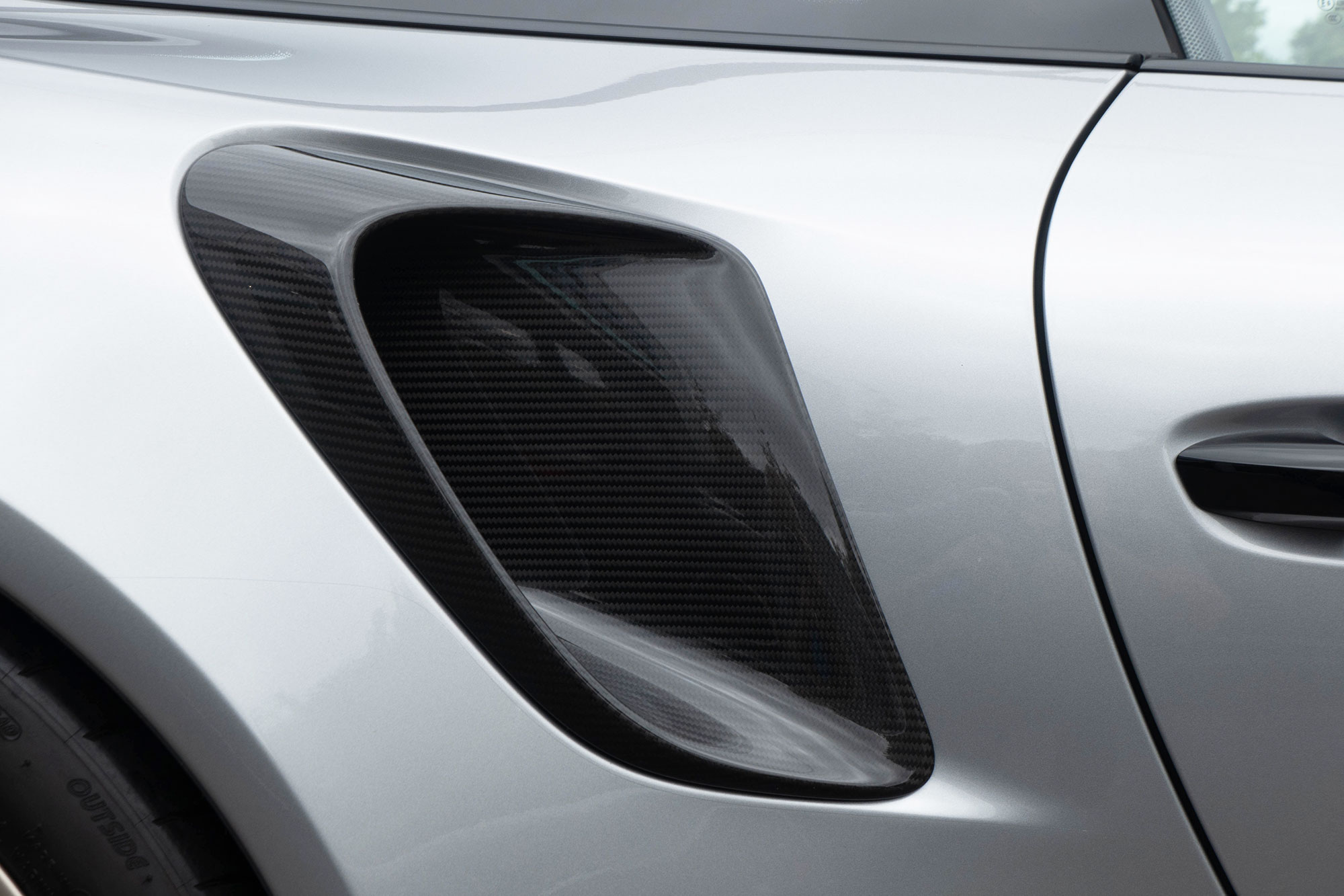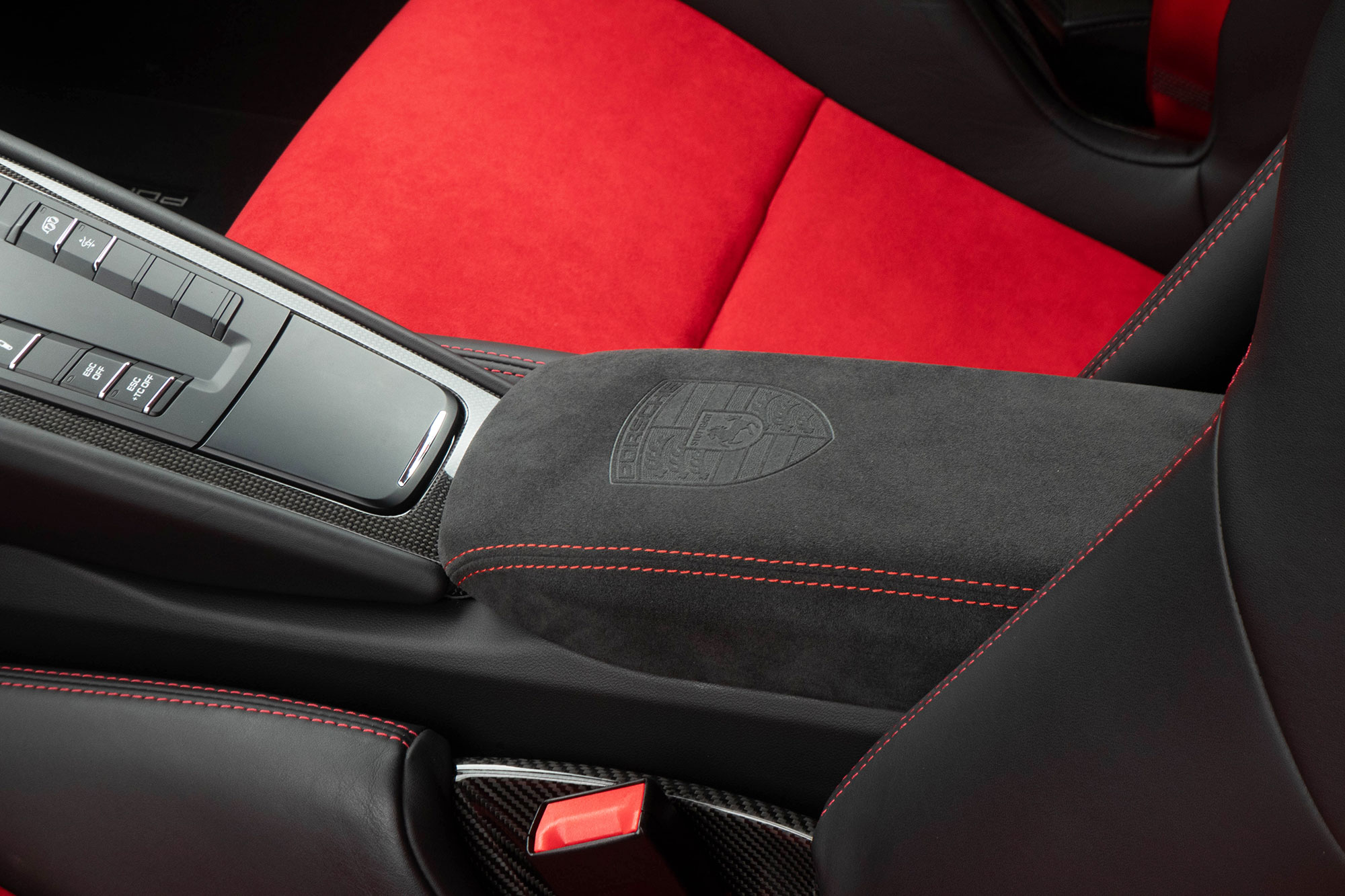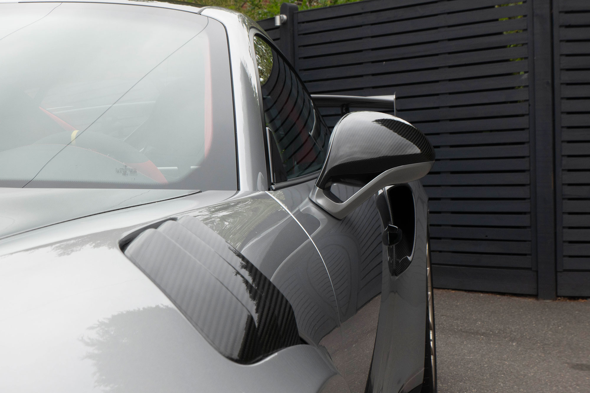 The 3.8 litre flat six turbocharged engine develops 690 bhp and standard features include air conditioning, touchscreen satellite navigation with Apple CarPlay, a carbon bonnet, Electronic Stability Control & Traction Control, rear axle steering, Porsche Ceramic Composite Brakes, front axle lift, Porsche Active Suspension Management, Bi-Xenon dynamic cornering headlights, automatic headlights, a voice activated computer, DAB digital radio, Bluetooth phone, carbon door entry guards, the mirror caps & side air vents in carbon and Guards Red seat belts.