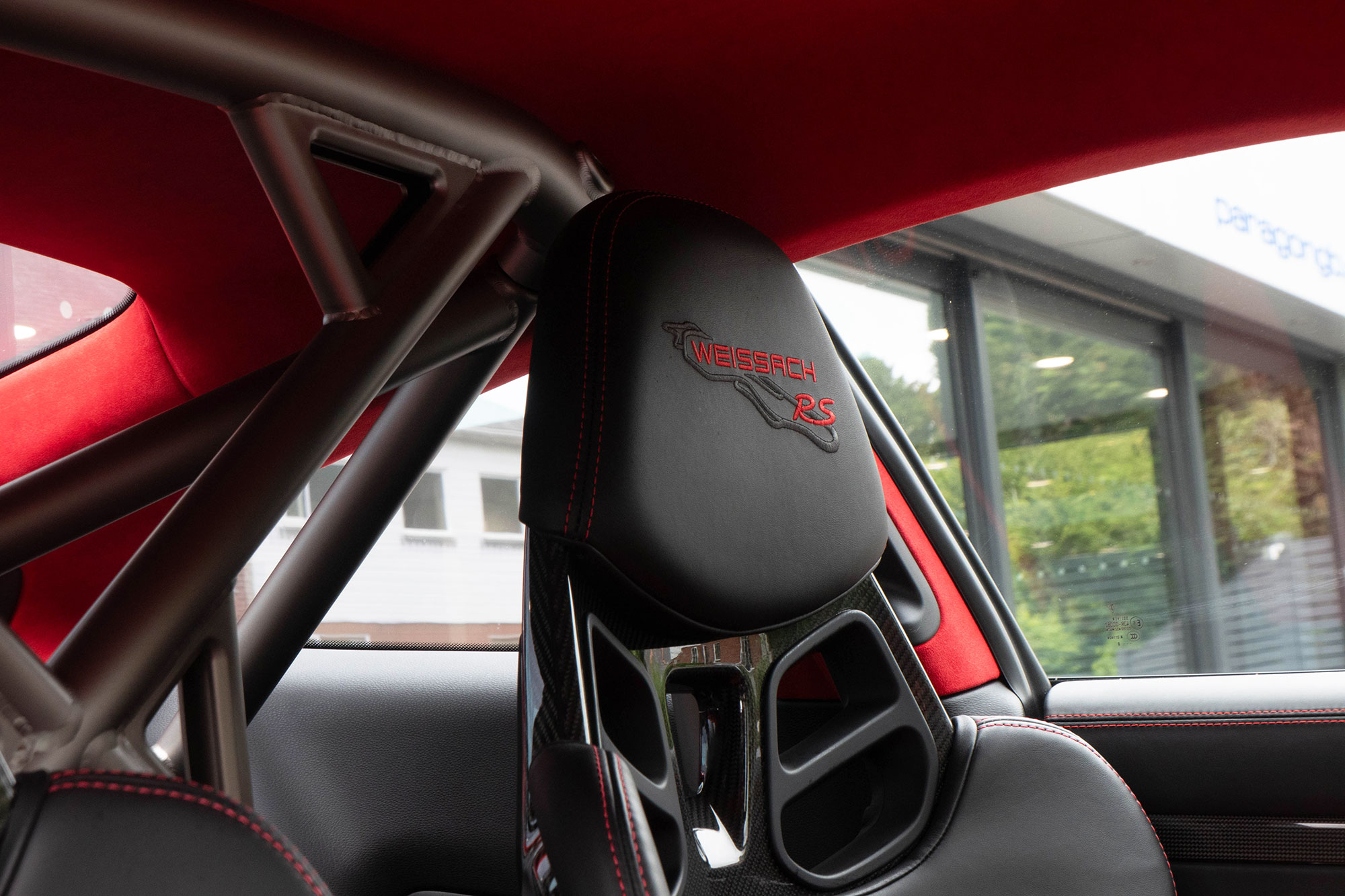 Factory-fitted options include the Weissach Package which includes a carbon fibre roof, 20/21" Magnesium centre lock wheels & titanium rear roll cage, a BOSE sound system, a carbon/Alcantara steering wheel, reverse camera, aluminum look pedals, the dials & Chrono clock finished in red and cruise control.