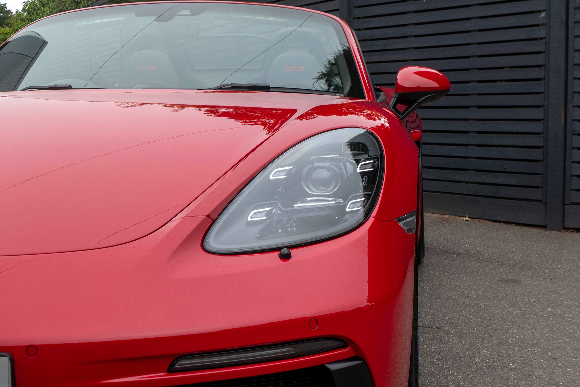 Factory-fitted options include the 7-speed PDK gearbox, LED main headlights, front & rear parking sensors, a reverse camera, adaptive cruise control, a BOSE sound system, heated seats & steering wheel, the GTS Interior Pack, the Sport Chrono with Sport Plus, LED main headlights, the rev counter finished in Carmine Red, Guards Red seat belts and the Extended Leather Pack.