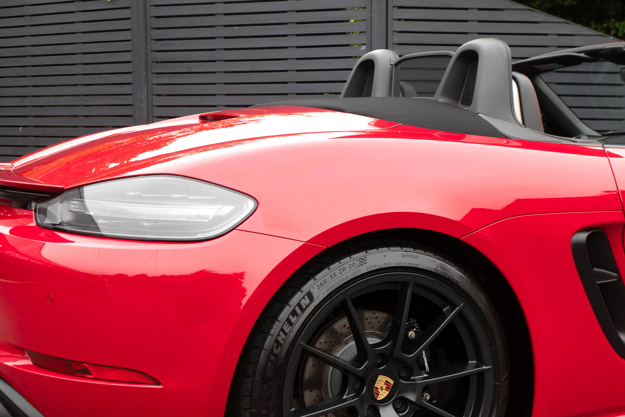 The 4.0 litre flat six direct fuel injection engine develops 400 bhp and standard features include air conditioning, 20" RS Spyder Design wheels, Porsche Active Suspension Management & Porsche Stability Management, a switchable sports exhaust, voice activated computer, mesh wind deflector, touchscreen satellite navigation with Apple CarPlay, a DAB radio & Bluetooth phone, automatic headlights and the Carbon Interior Pack.