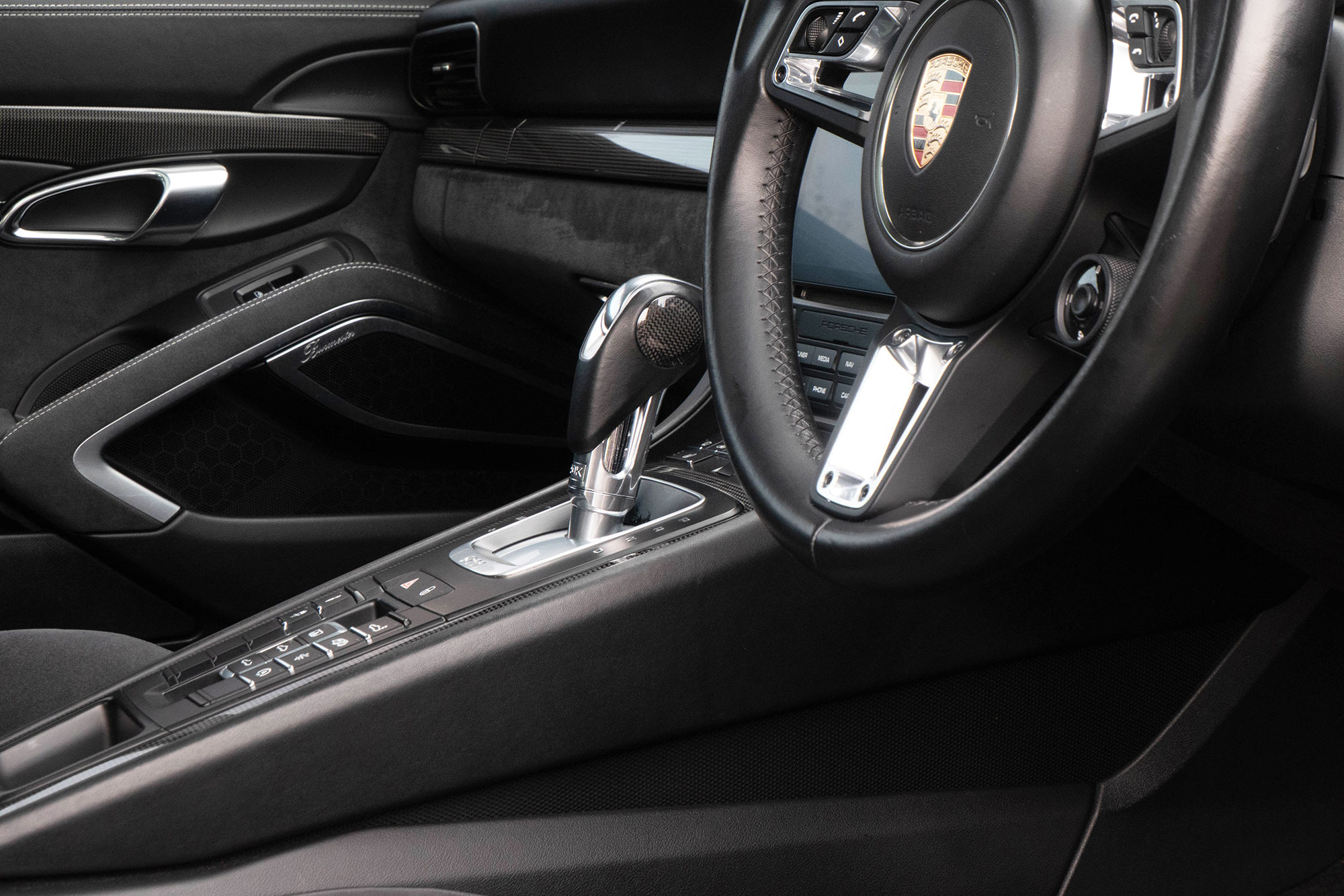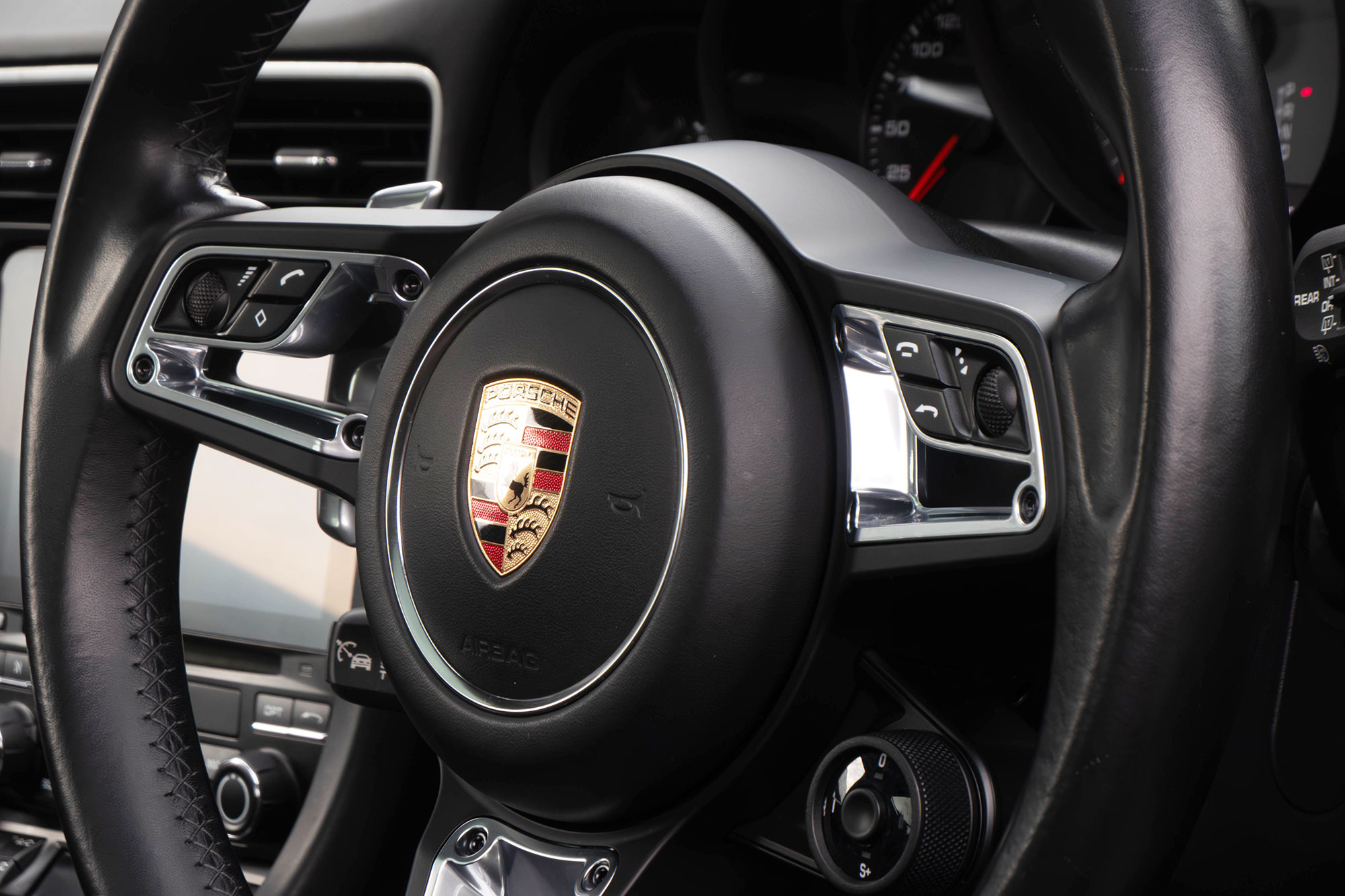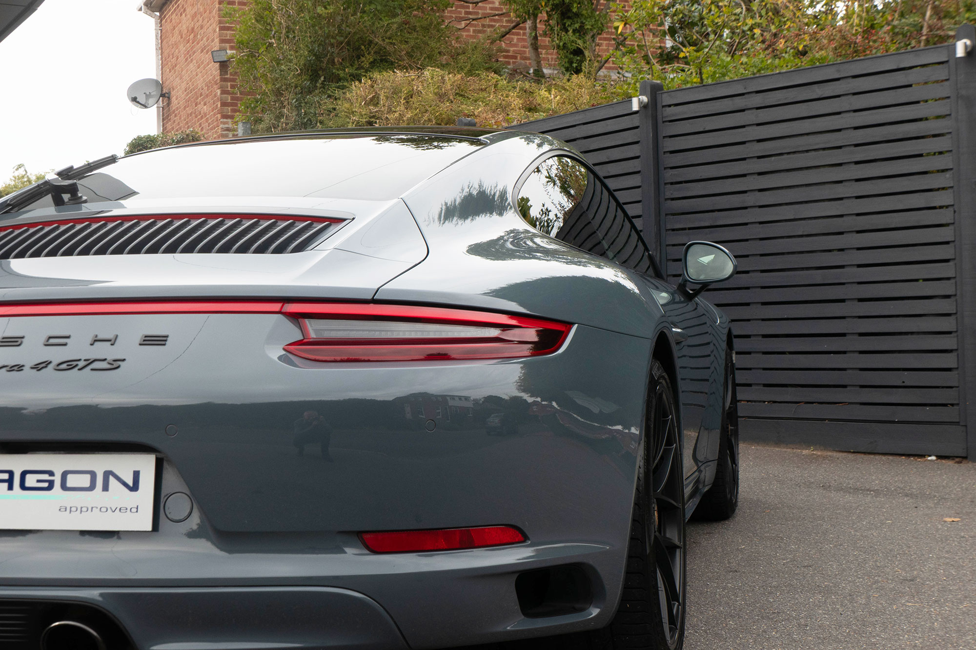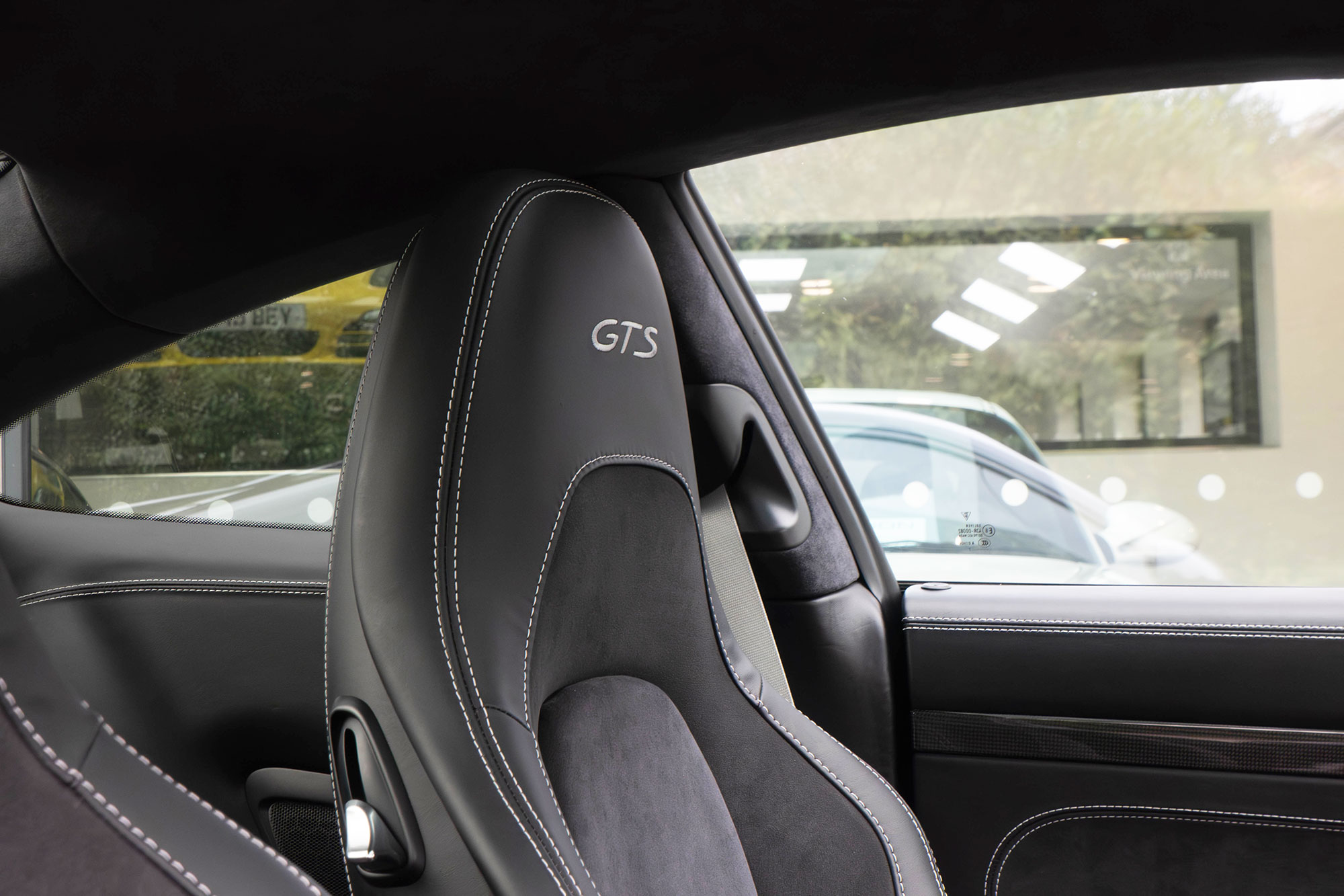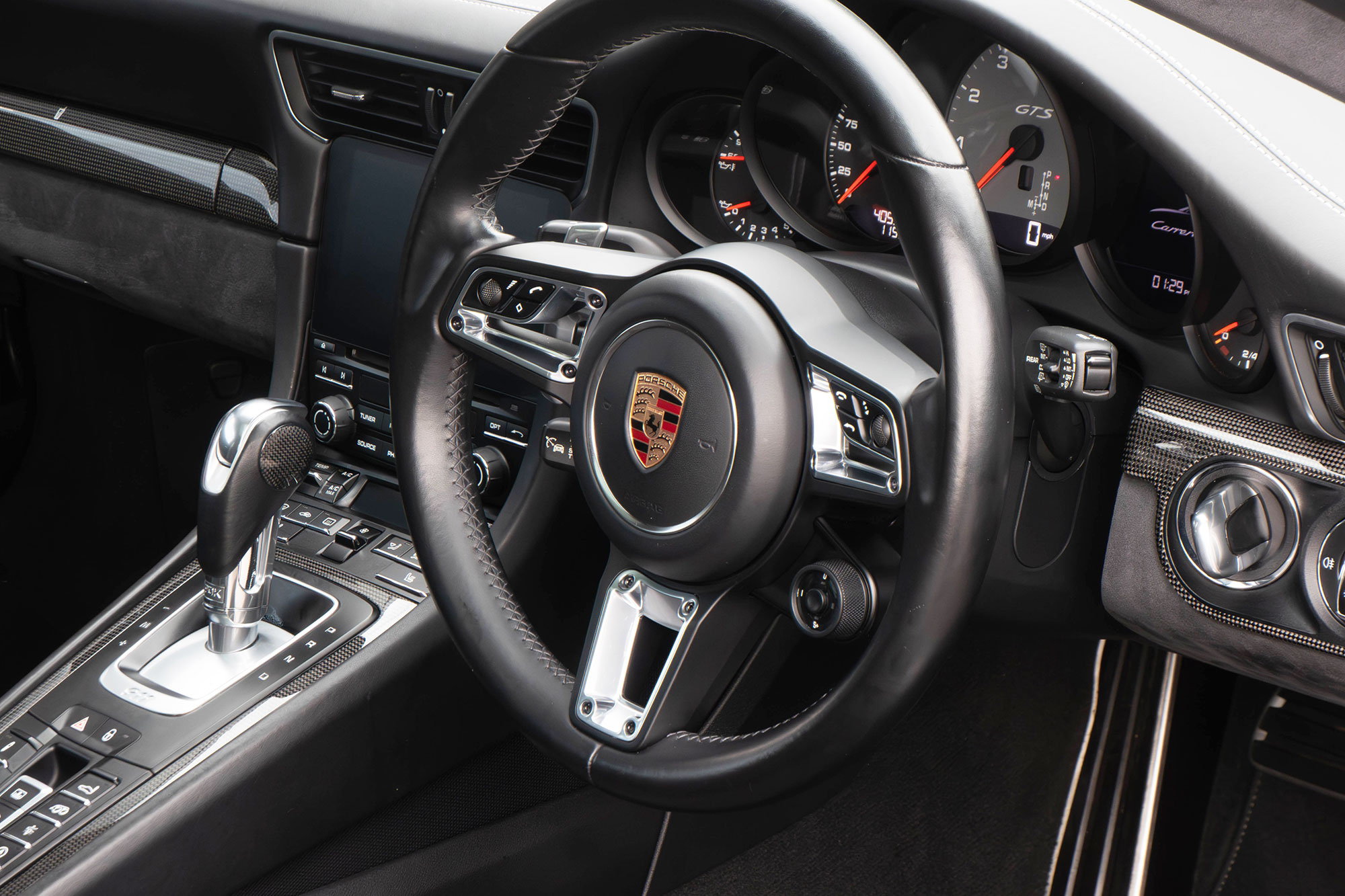 The 3.0 litre flat six turbocharged engine develops 450 bhp and standard features include four wheel drive, 20" GTS centre lock wheels, air conditioning, touchscreen satellite navigation with Apple CarPlay, DAB radio & Bluetooth phone, Porsche Active Suspension Management & Porsche Stability Management, the Carbon Interior Pack, automatic headlights, a stop/start function, a switchable sports exhaust, rear axle steer, LED daytime running lights, Bi-Xenon headlights, a voice activated computer and multifunction steering wheel.