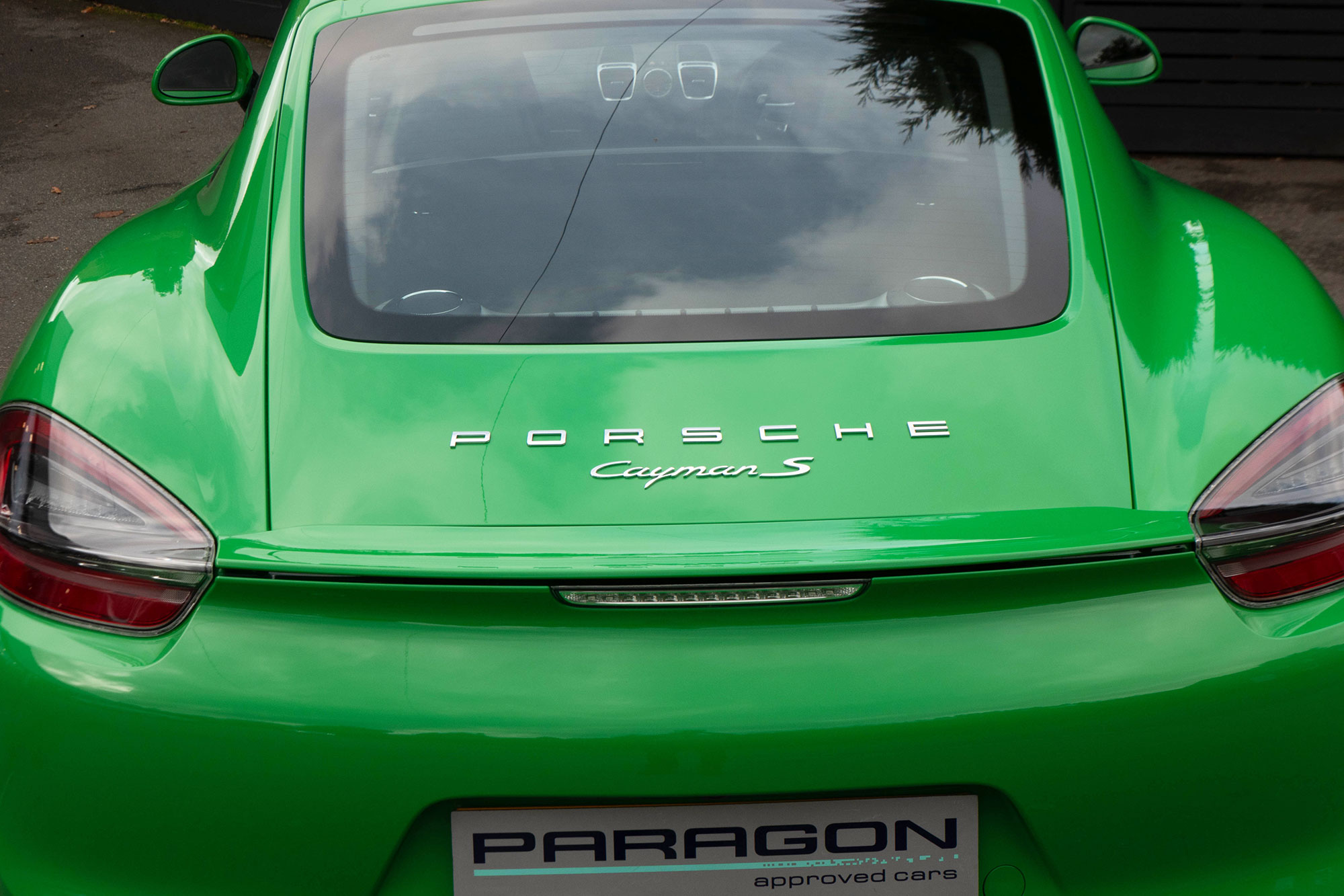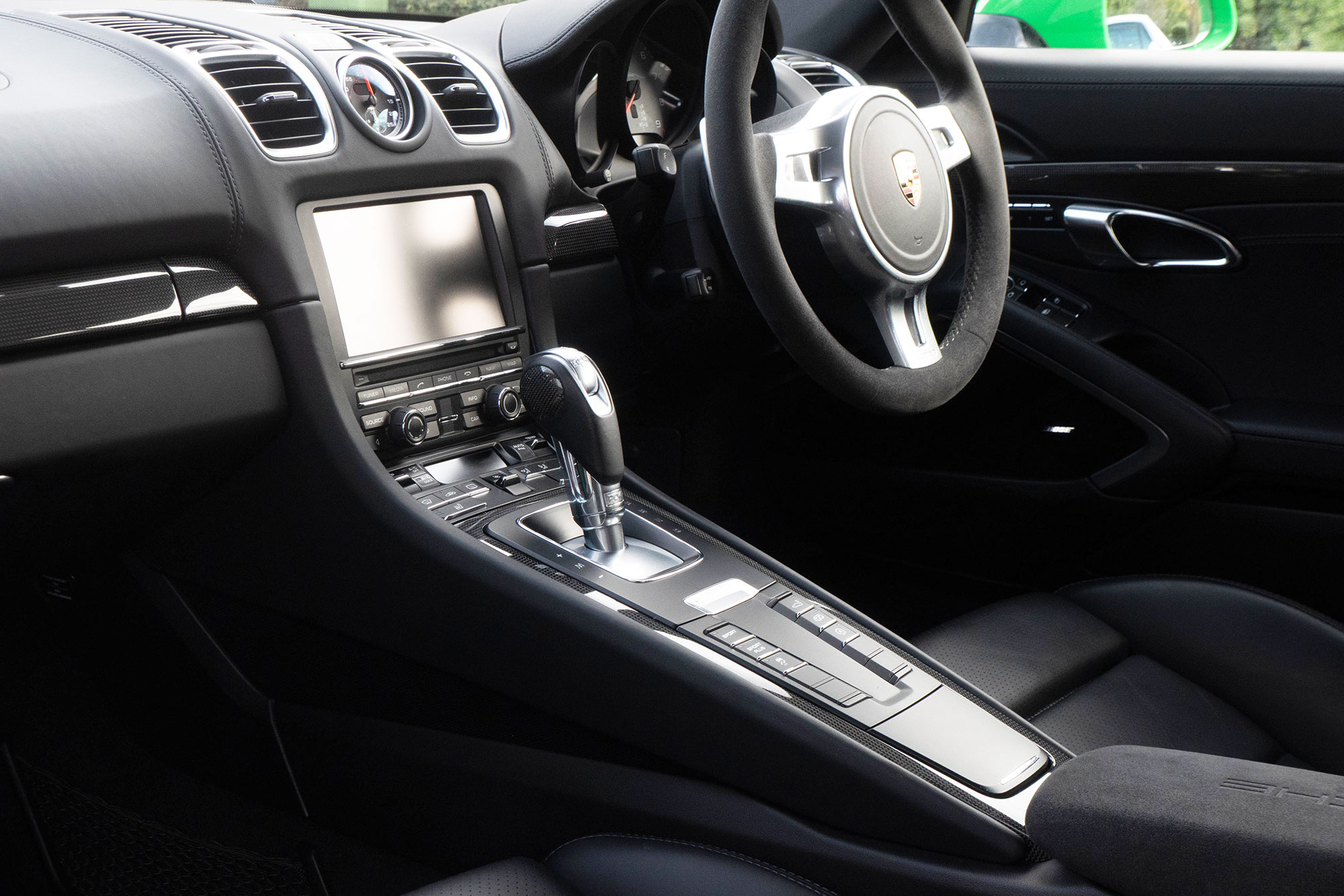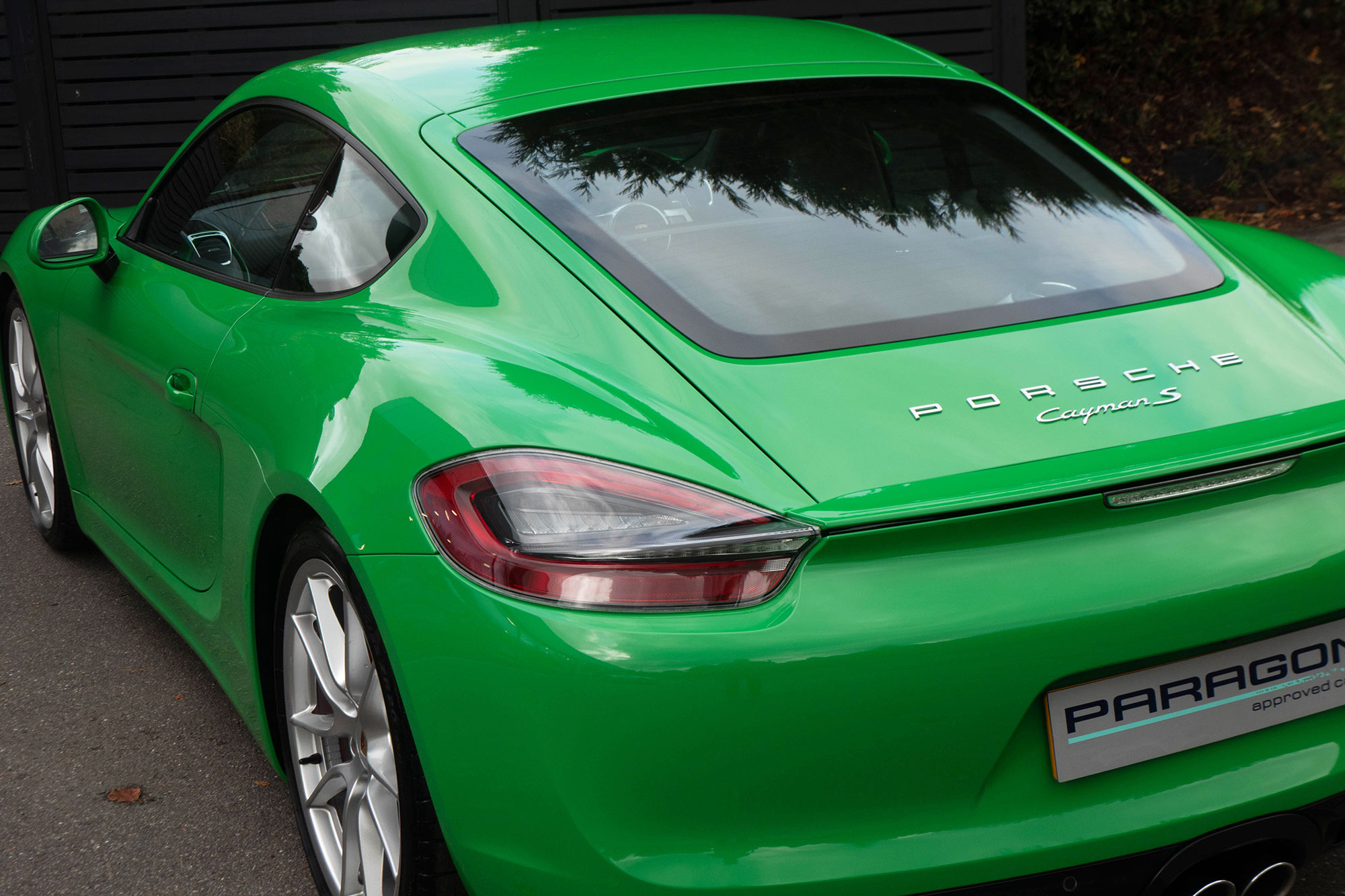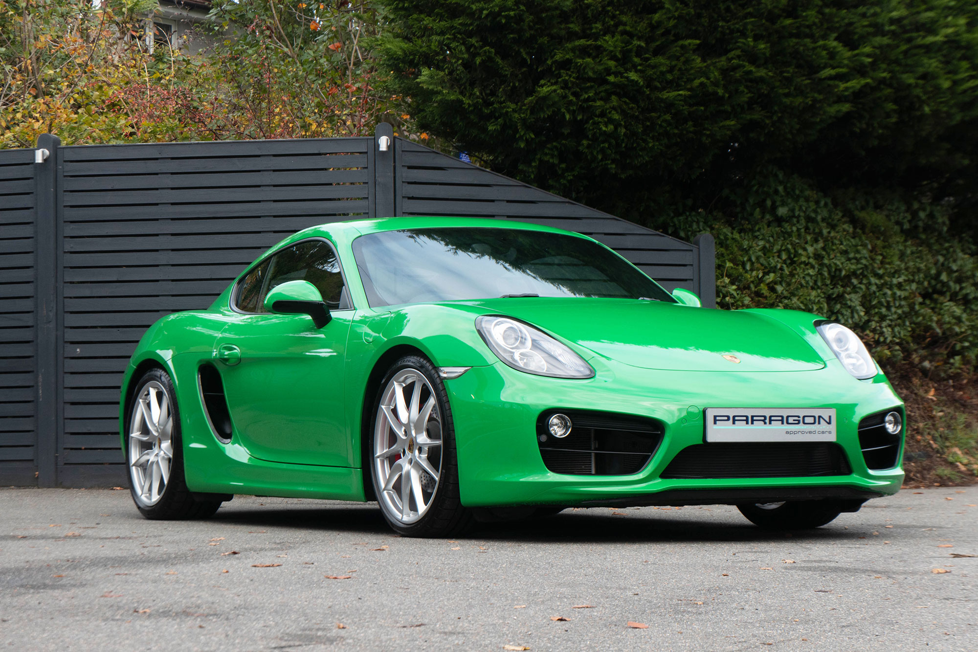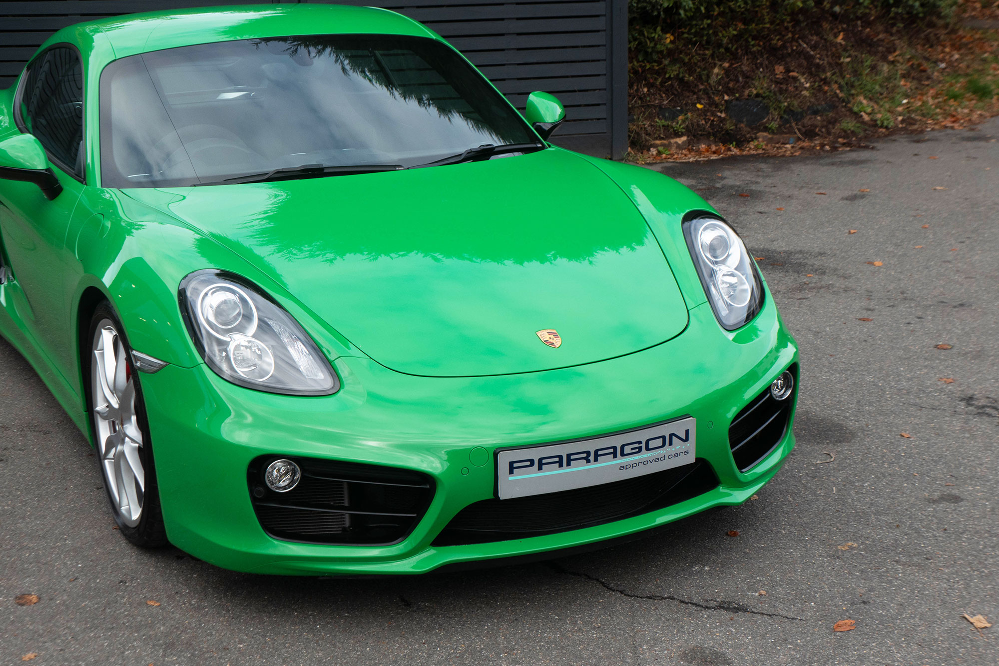 This Cayman S (981) has the 7-speed PDK gearbox and is presented in the special order colour of Viper Green with black leather sports seats.