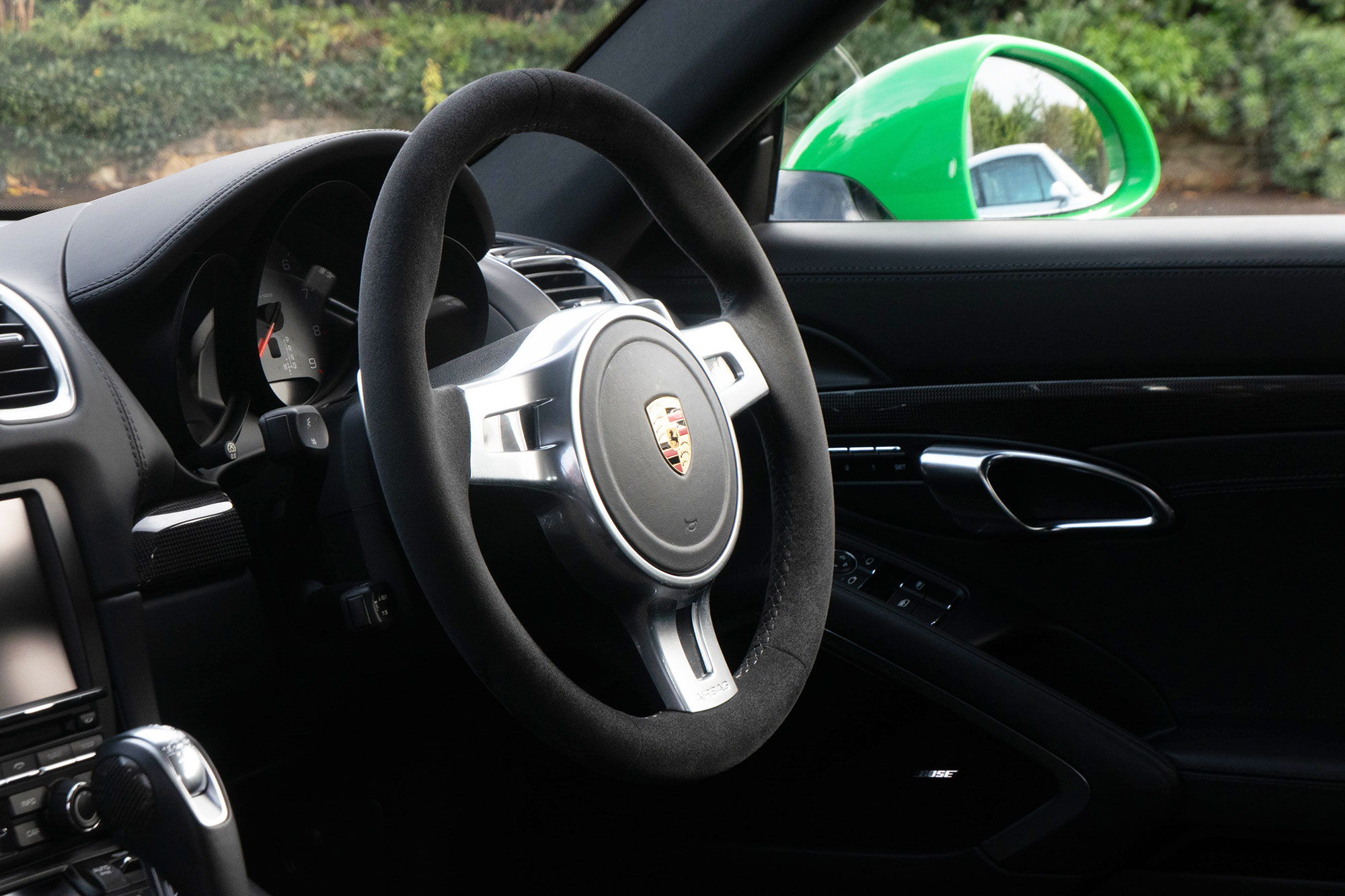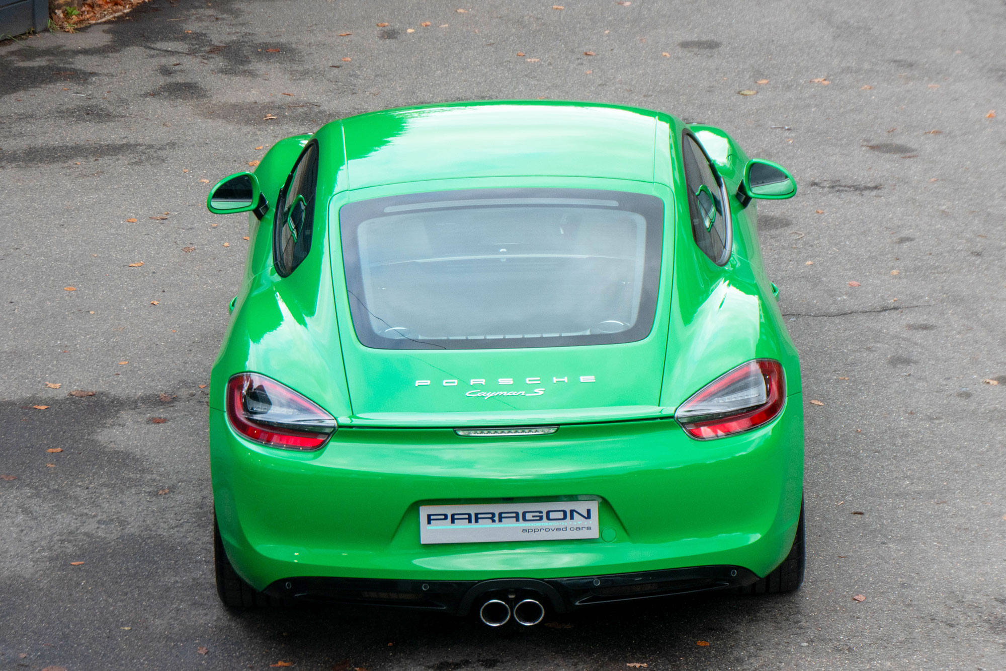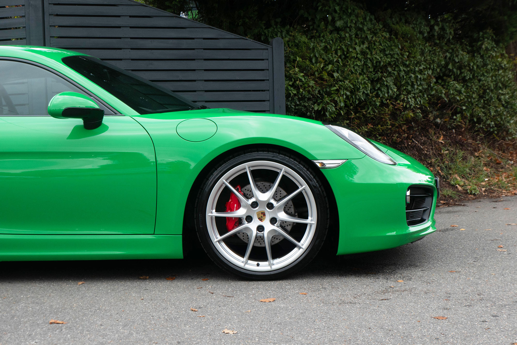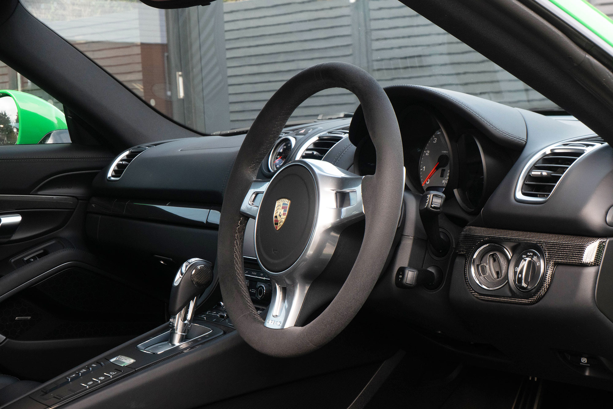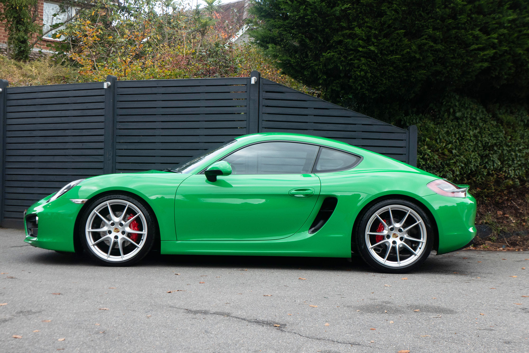 This Cayman S (981) has the 7-speed PDK gearbox and is presented in the special order colour of Viper Green with black leather sports seats.