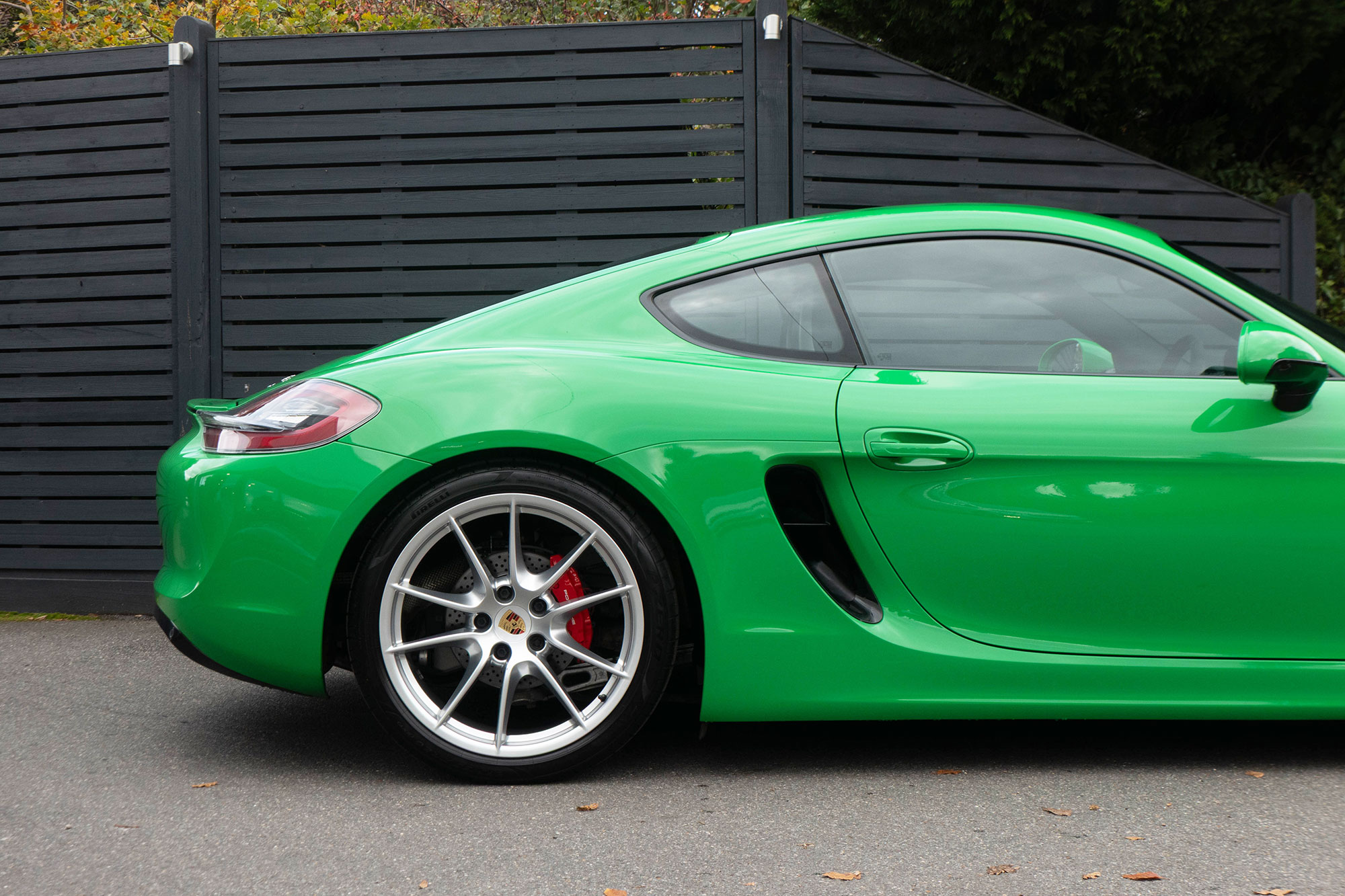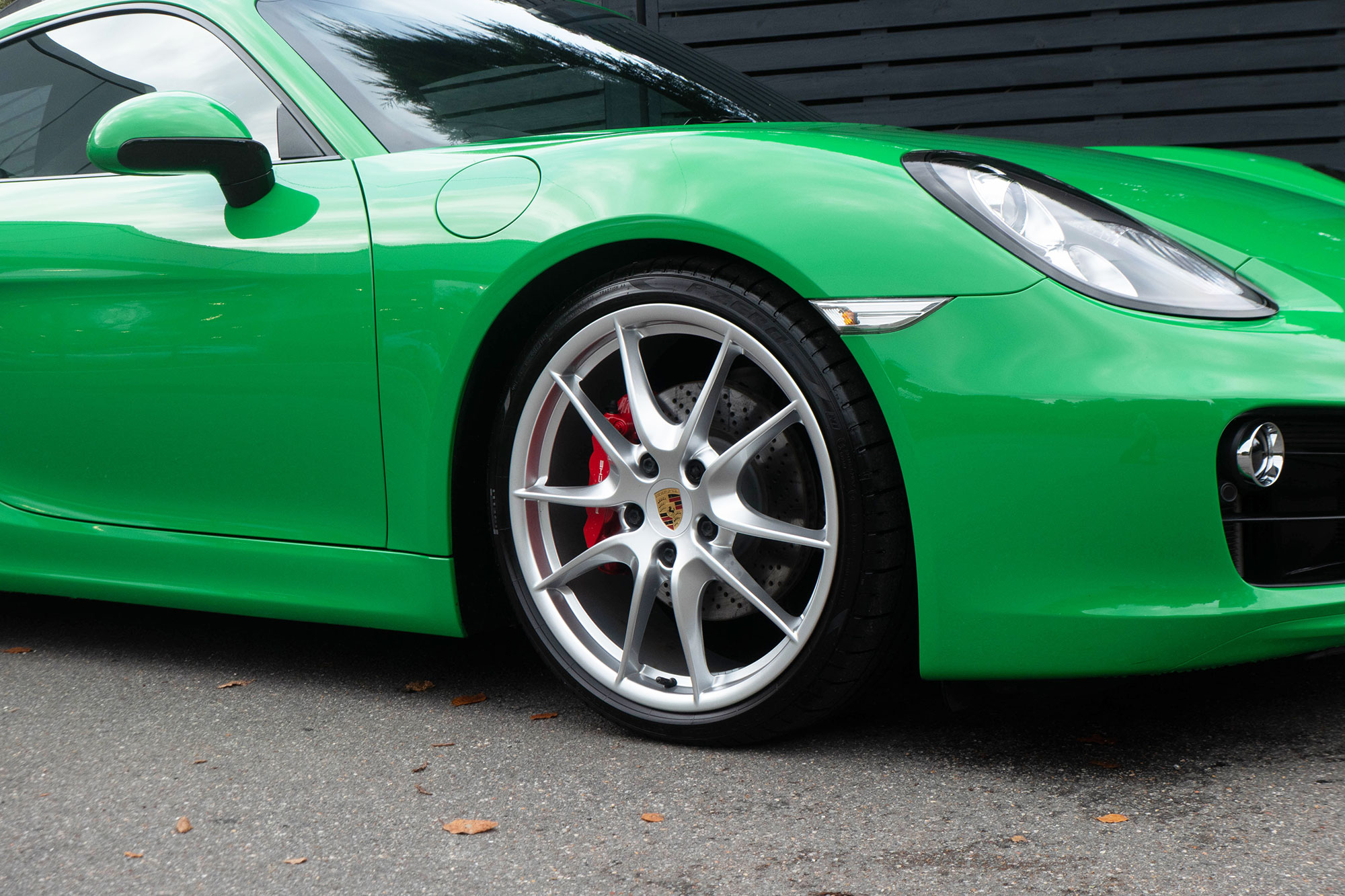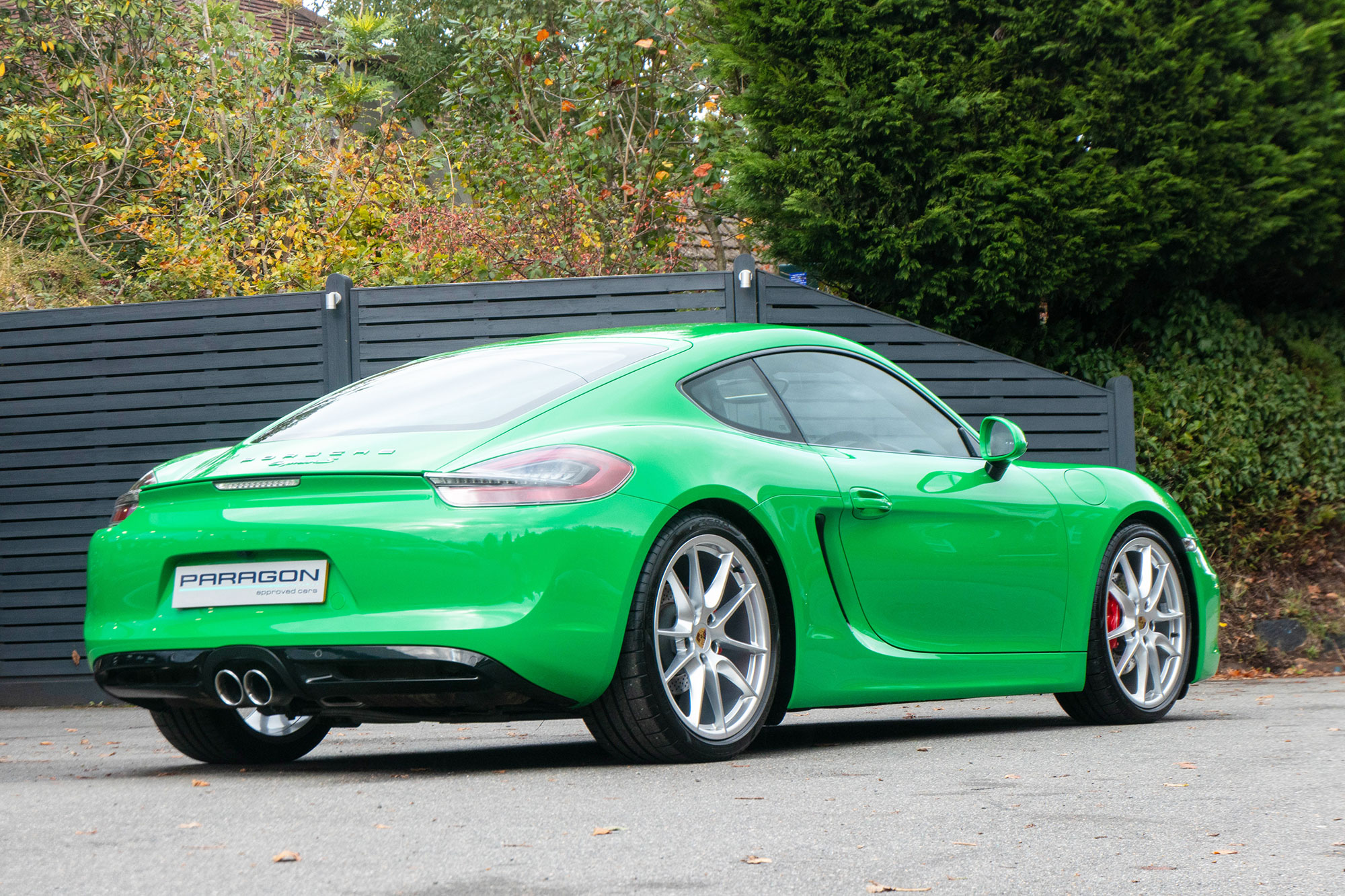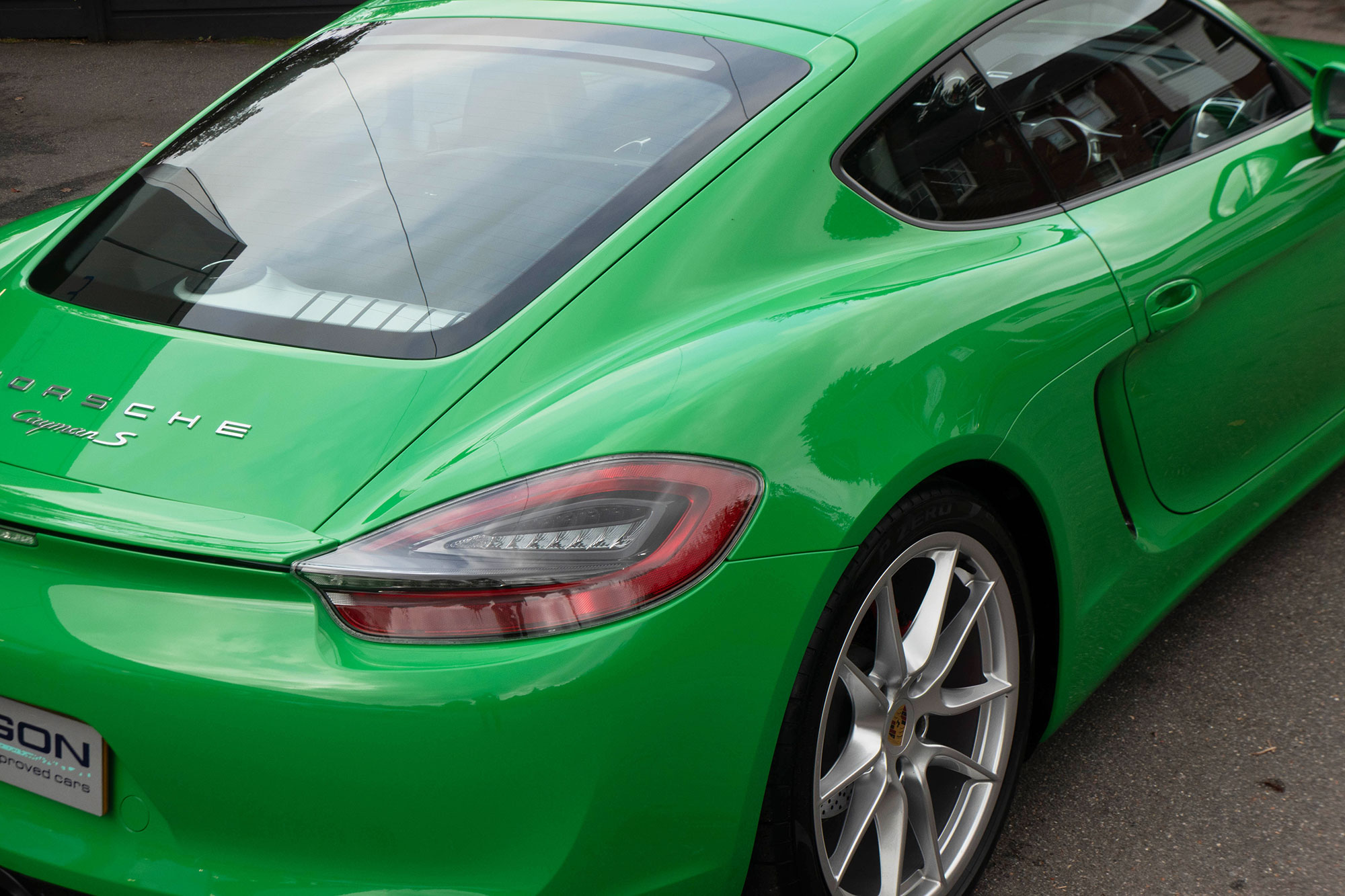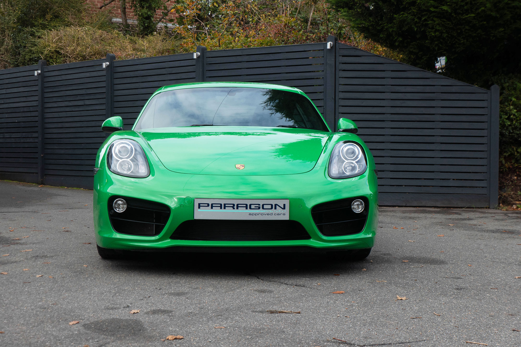 This Cayman S (981) has the 7-speed PDK gearbox and is presented in the special order colour of Viper Green with black leather sports seats.