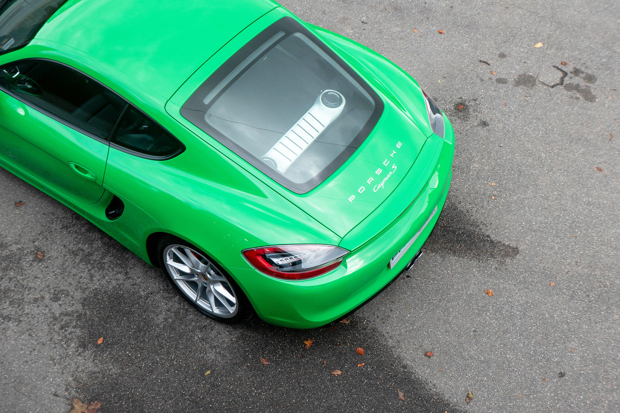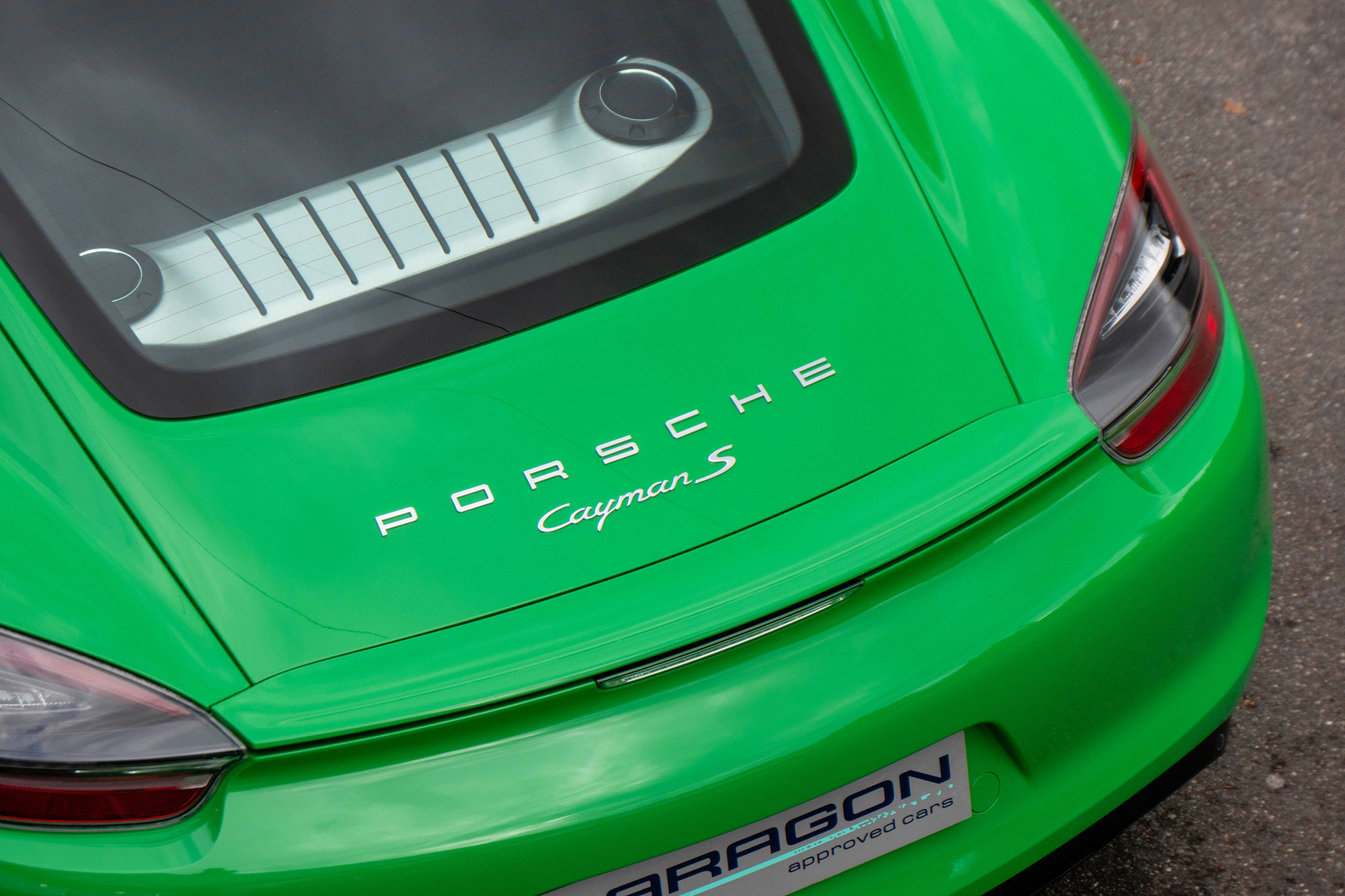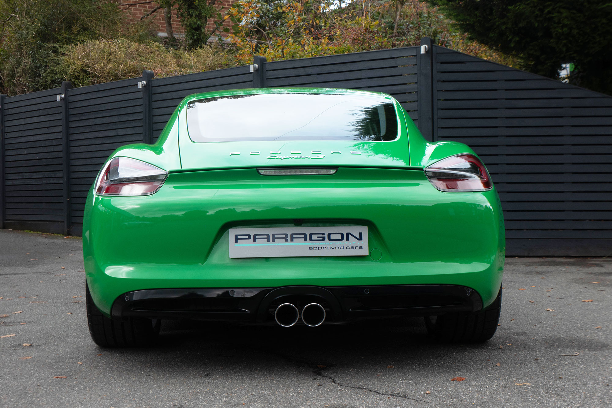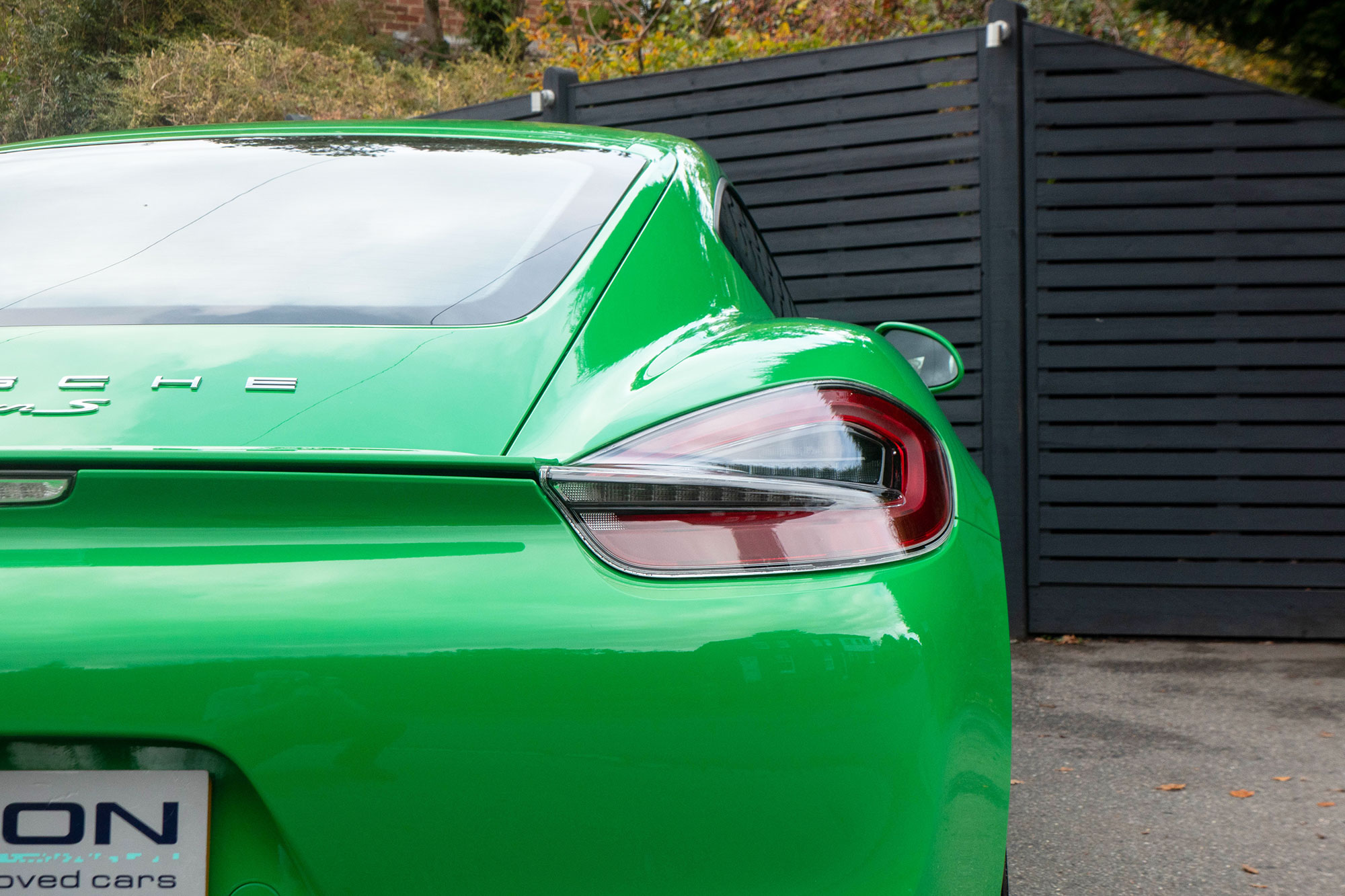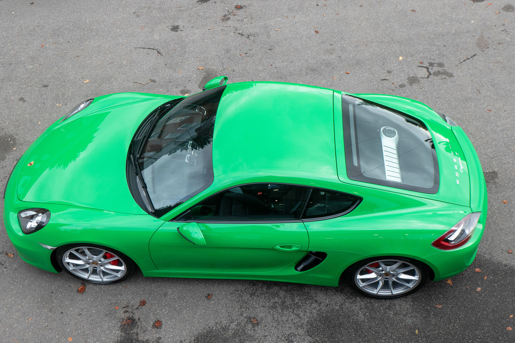 This Cayman S (981) has the 7-speed PDK gearbox and is presented in the special order colour of Viper Green with black leather sports seats.