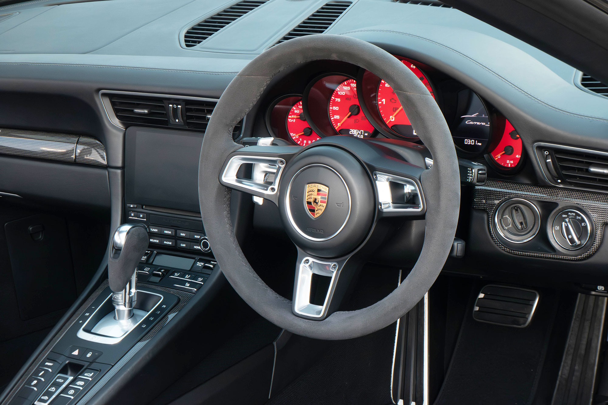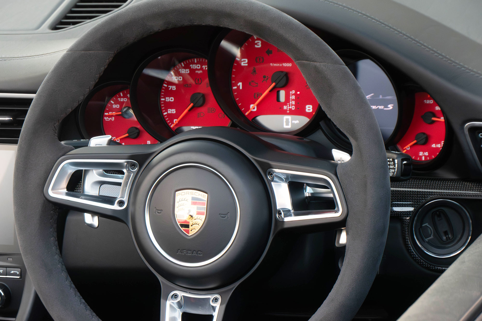 The 3.0 flat six turbocharged engine develops 420 bhp and standard features include touchscreen satellite navigation with Apple CarPlay, DAB digital radio and Bluetooth phone, a black power hood with electric wind deflector, Bi-Xenon headlights, air conditioning, Porsche Active Suspension Management & Porsche Stability Management, a voice activated computer, stop/start function, automatic headlights and LED daytime running lights.