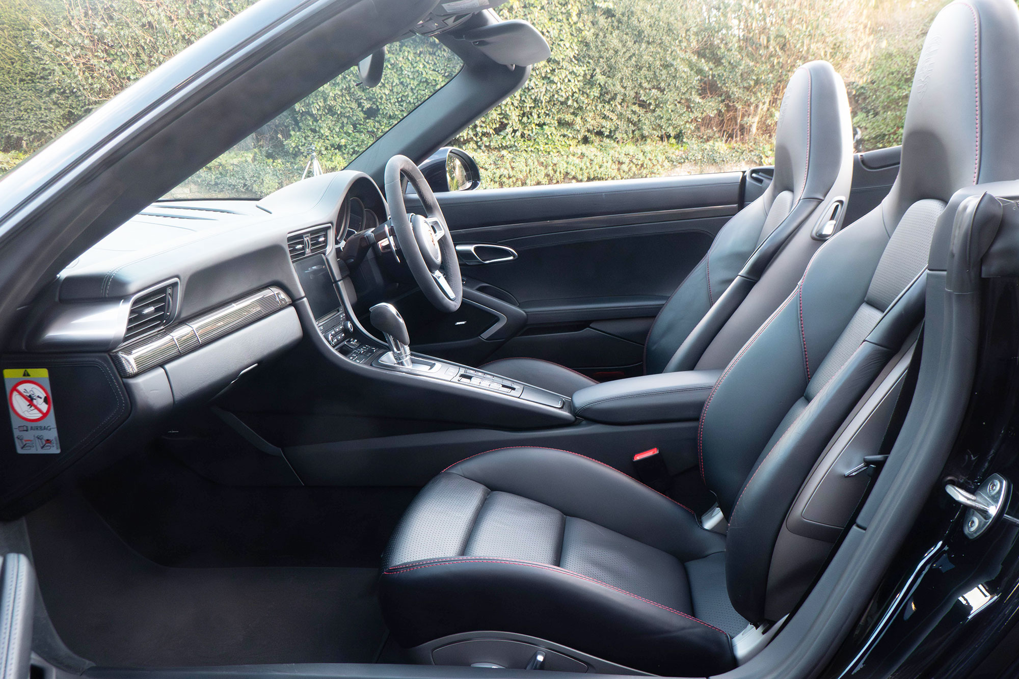 This 911 Carrera 2 S Cabriolet (991.2) has the 7-speed PDK gearbox and is presented in Jet Black Metallic with black leather sports seats and a black power hood.
