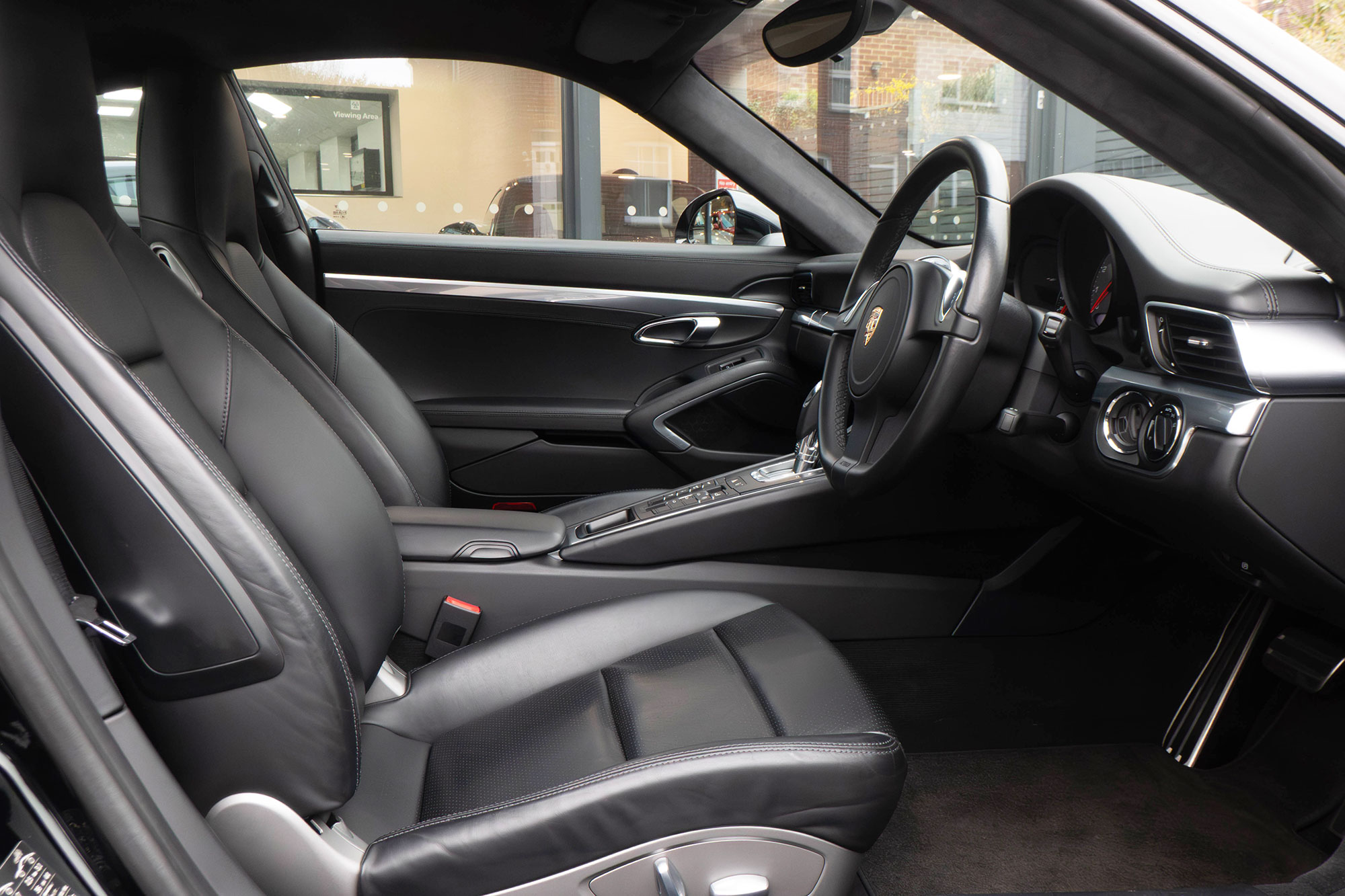 This 911 Carrera 2 S Coupe (991) has the 7-speed PDK gearbox and is presented in Jet Black with black leather sports seats.