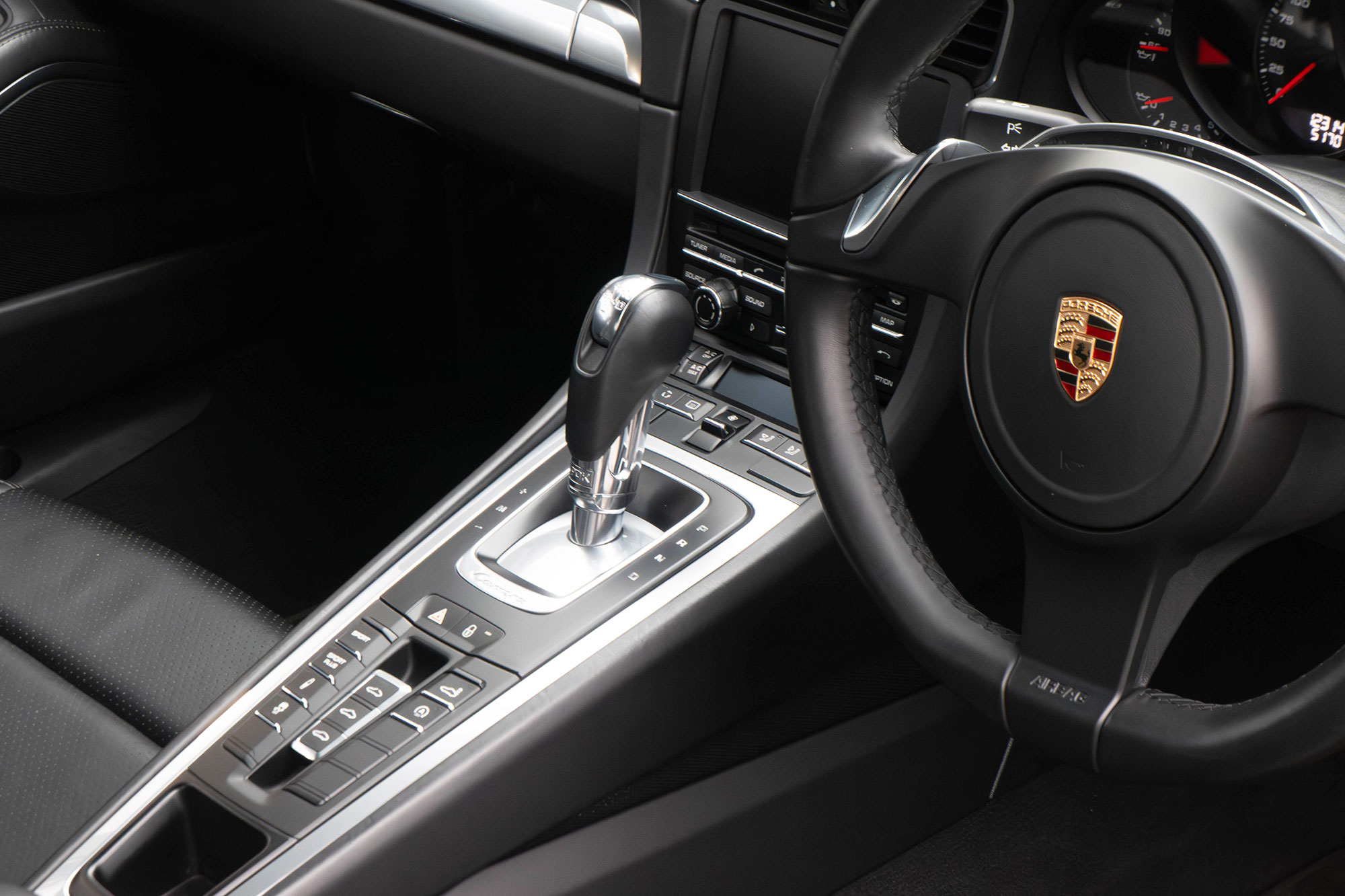 Factory-fitted options include the wheels finished in black, the 7-speed PDK gearbox, Bluetooth phone, the Sport Chrono with Sport Plus, electrically folding door mirrors, front & rear parking sensors and sports seats.