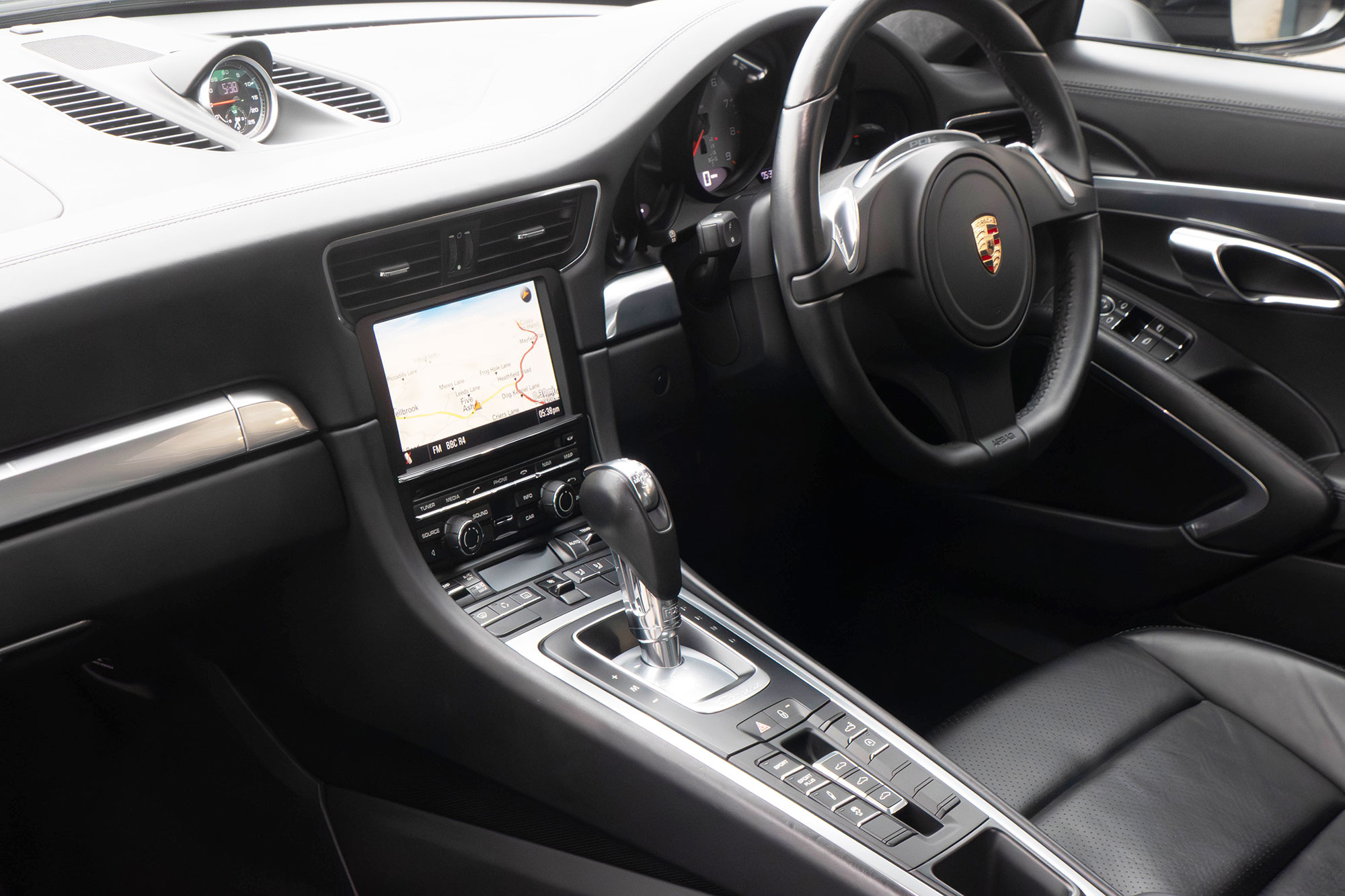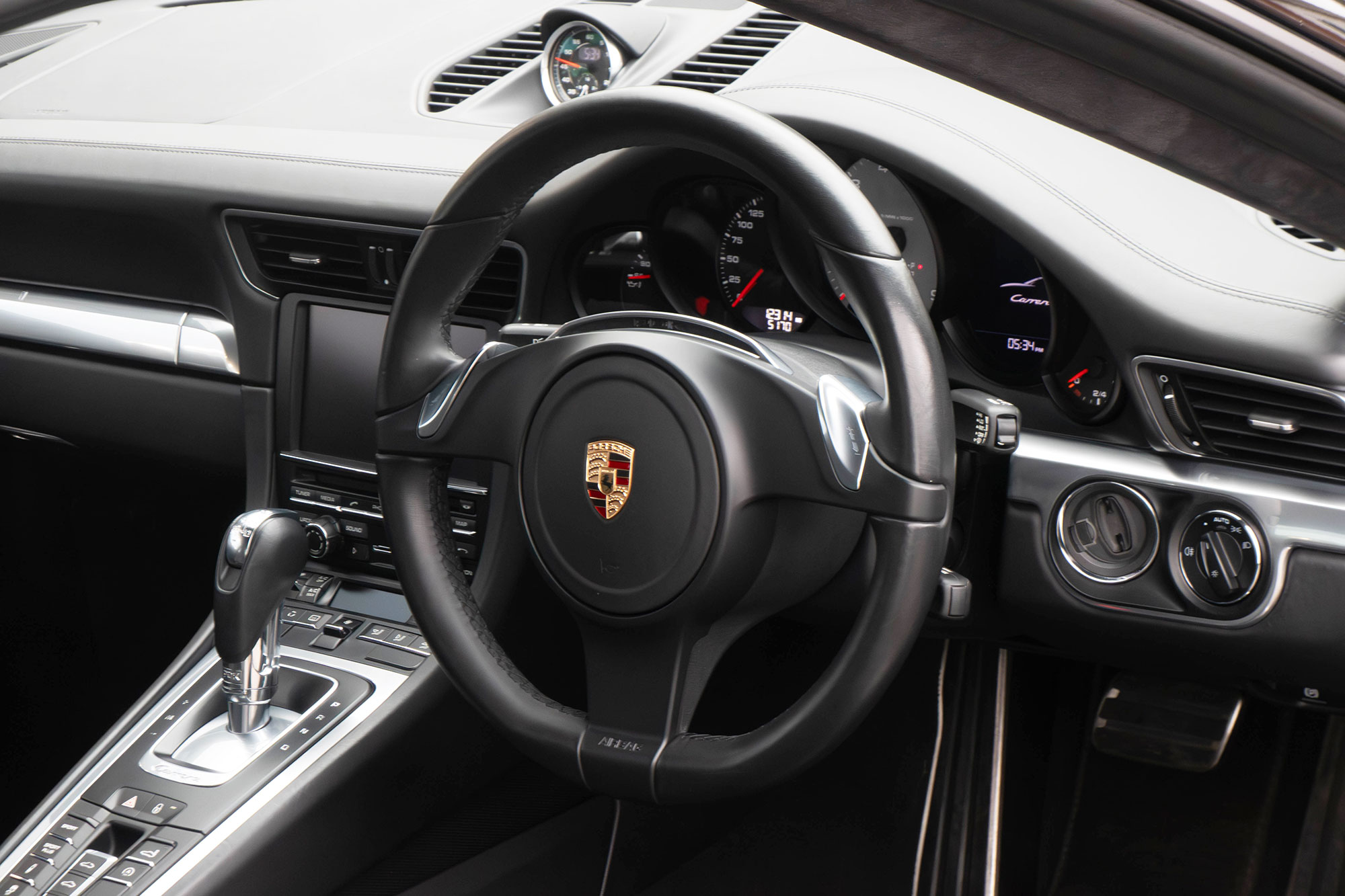 The 3.8 litre flat six direct fuel injection engine develops 400 bhp, and standard features include air conditioning, an onboard computer, a stop/start function, touchscreen satellite navigation, Porsche Active Suspension Management & Porsche Stability Management, LED daytime running lights, 20" Carrera S wheels, an electric sunroof and automatic Bi-Xenon headlights.