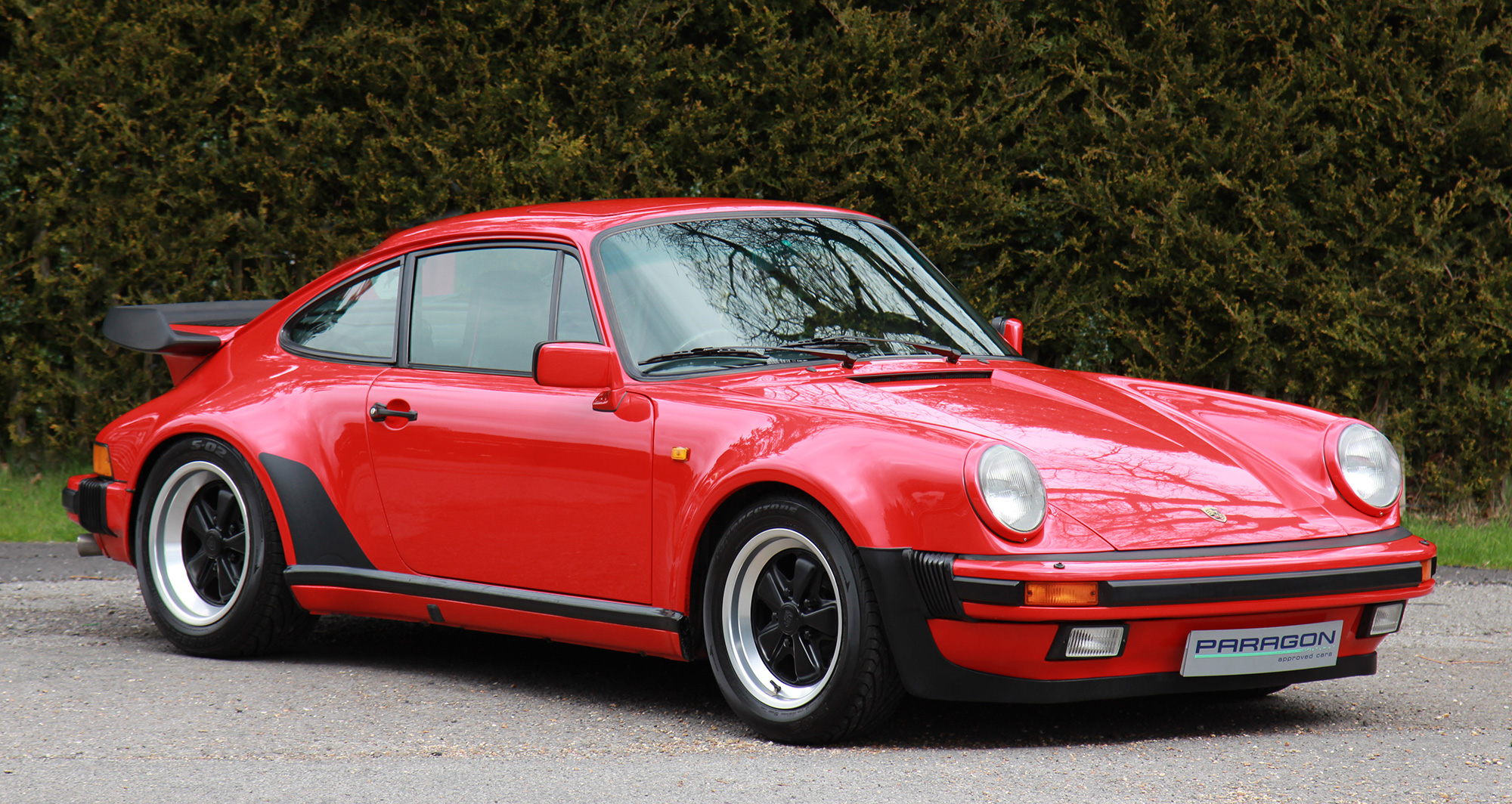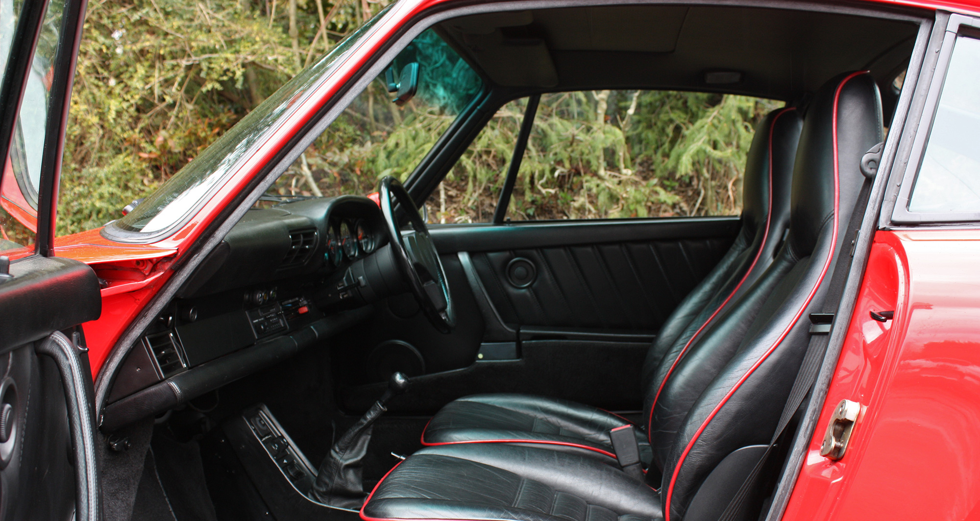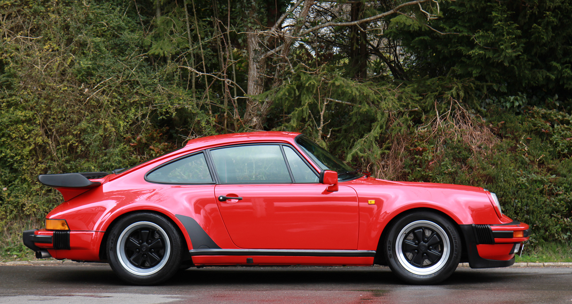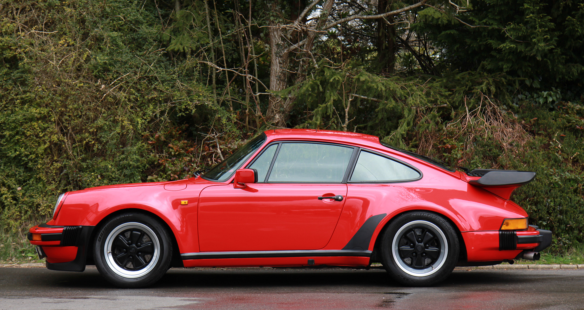 This stunning 911 Turbo (930) is presented in the iconic Porsche colour scheme of Guards Red with black leather seats piped in red.