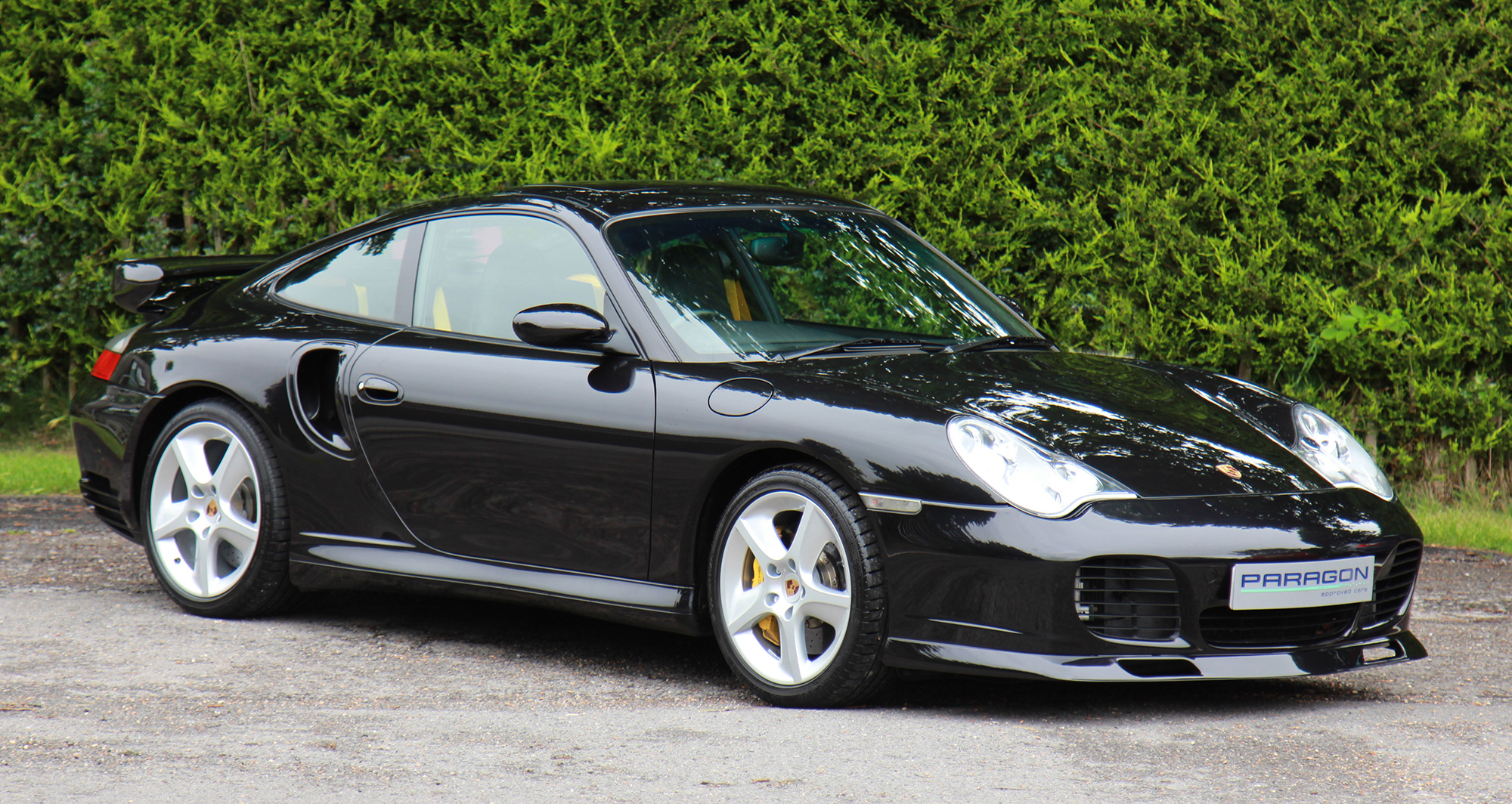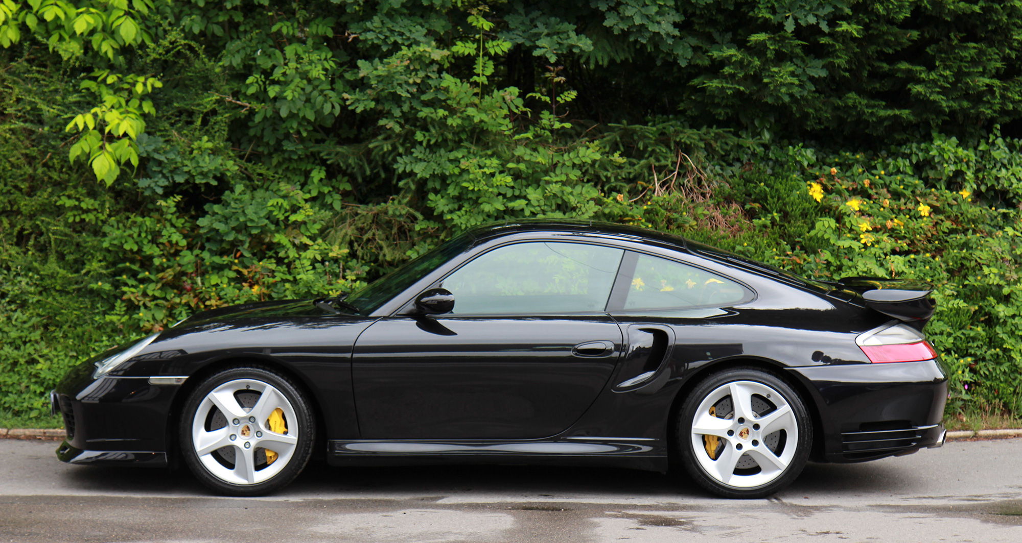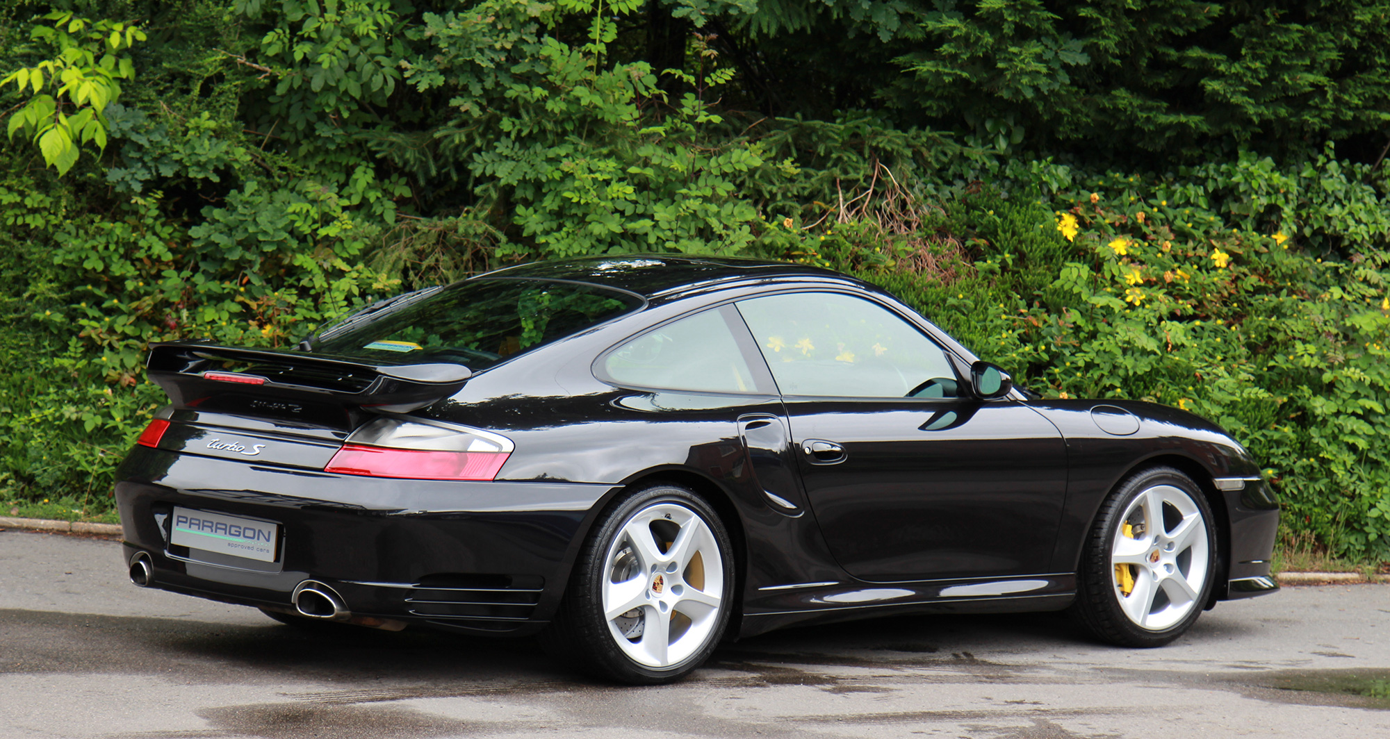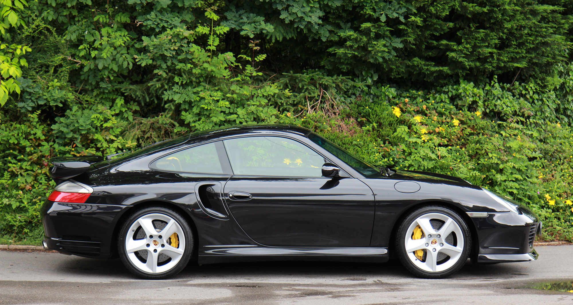This exquisite 911 Turbo S (996) has the 6-speed manual gearbox and is presented in Basalt Black with black leather seats.