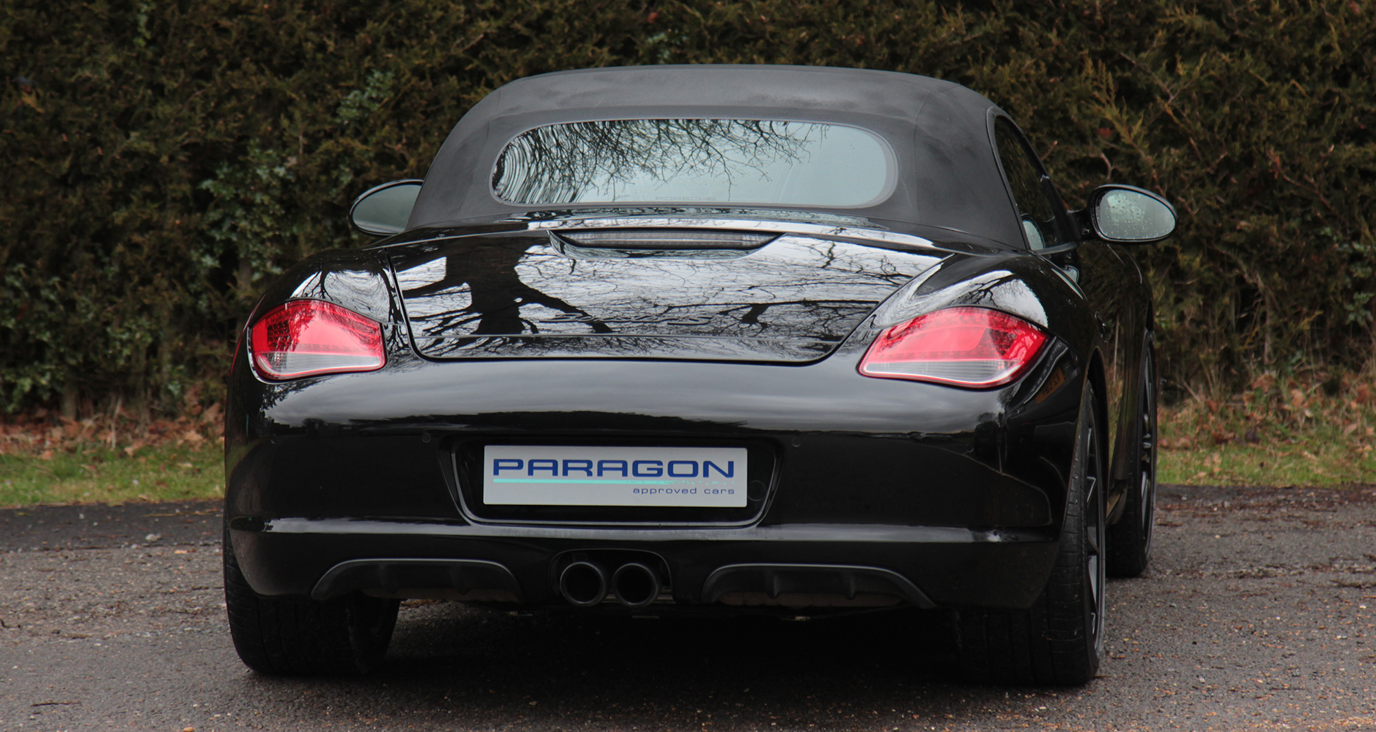 The 3.4 litre direct fuel injection engine develops an uprated 315 bhp and standard features include air conditioning, a BOSE sound system, heated seats, Black Edition stainless steel door entry guards, 'Black Edition' text embossed into the hood material, Porsche Active Suspension Management (PASM) & Porsche Stability Management (PSM), a wind deflector, touchscreen satellite navigation, lightweight 19" Spyder wheels finished in black, sport design steering wheel, embossed crested headrests and Sport Chrono Pack Plus.