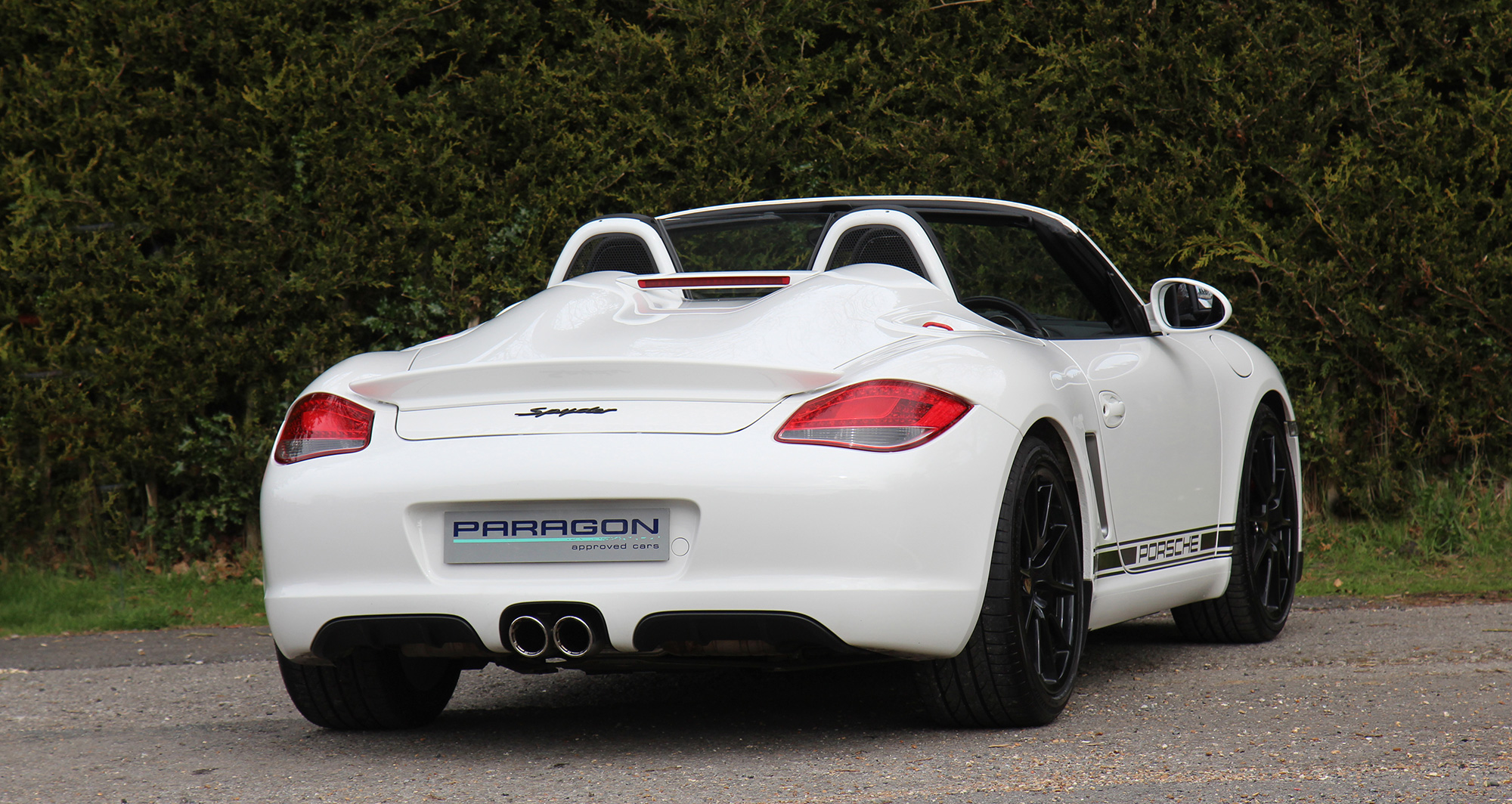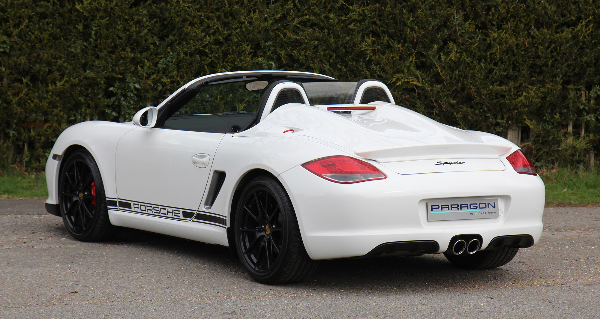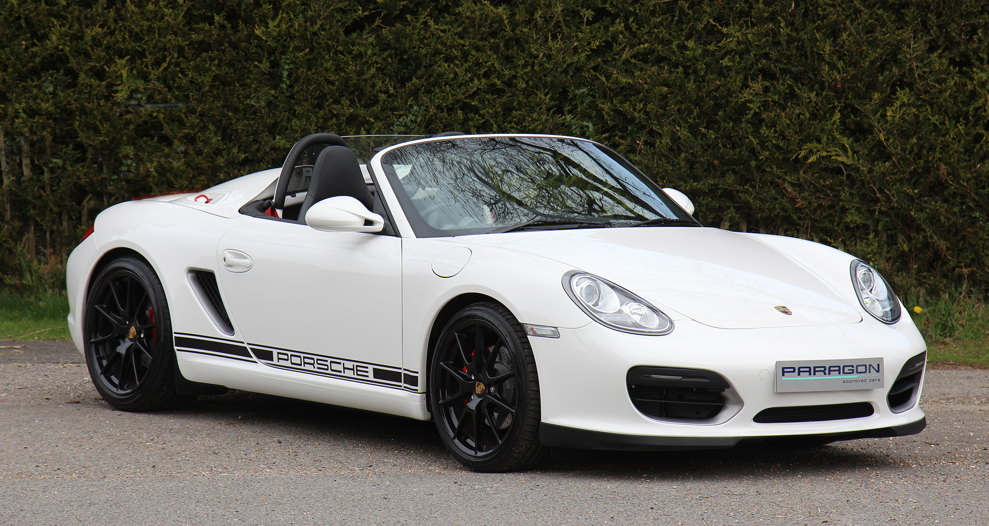This gorgeous Porsche Boxster Spyder (987 GEN ll) has the 6-speed manual gearbox and is presented in Carrara White with black half leather carbon bucket seats with Alcantara inserts.