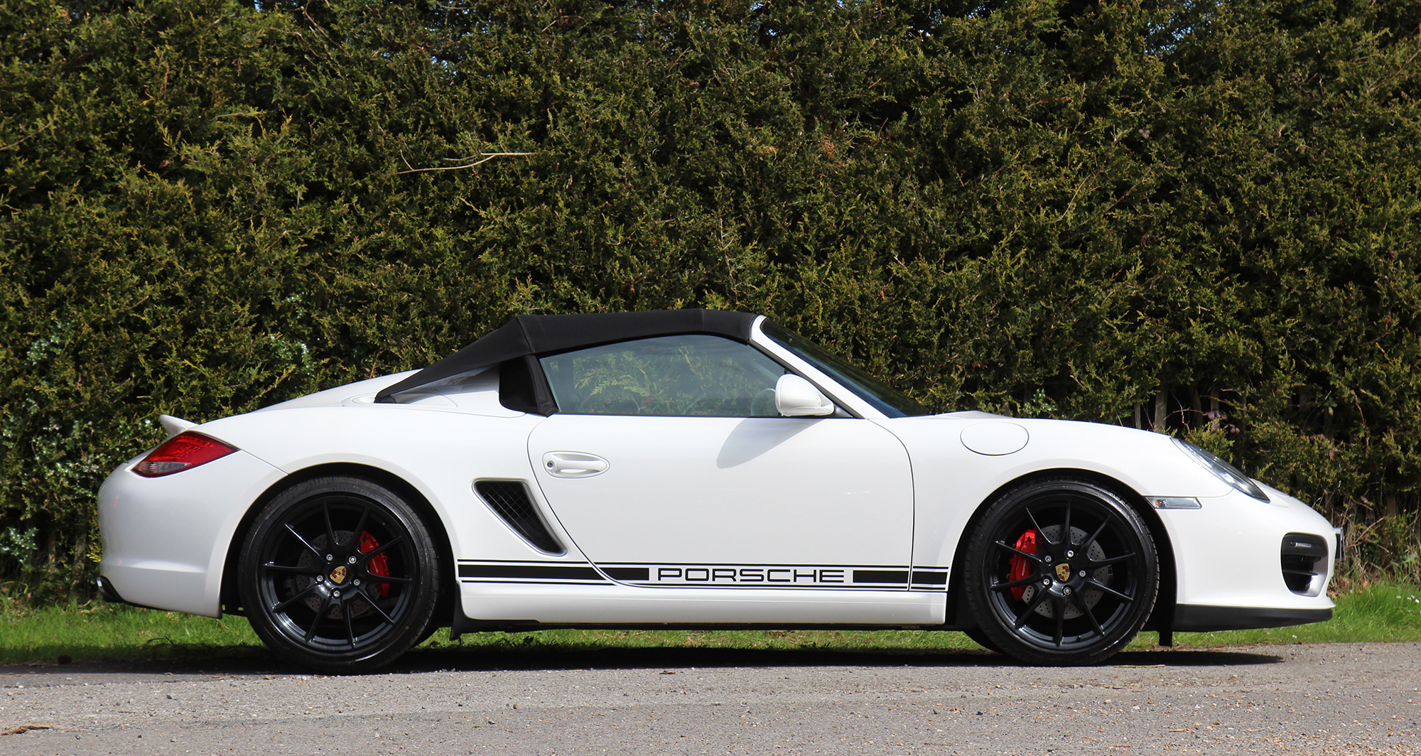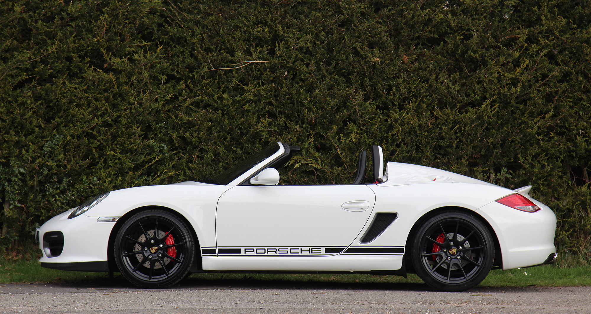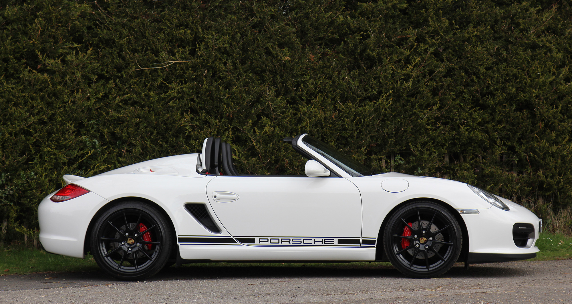 This gorgeous Porsche Boxster Spyder (987 GEN ll) has the 6-speed manual gearbox and is presented in Carrara White with black half leather carbon bucket seats with Alcantara inserts.