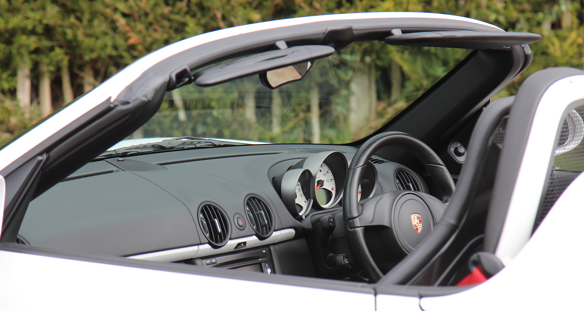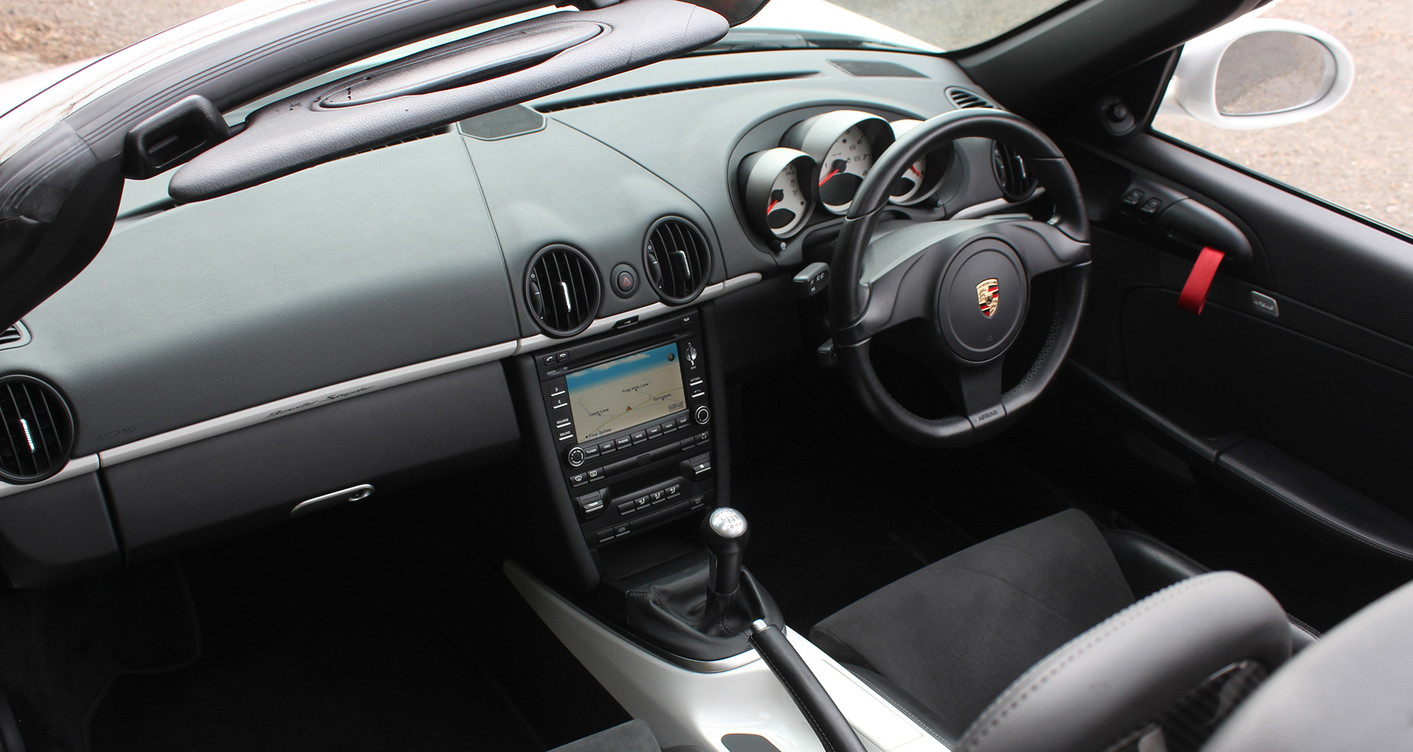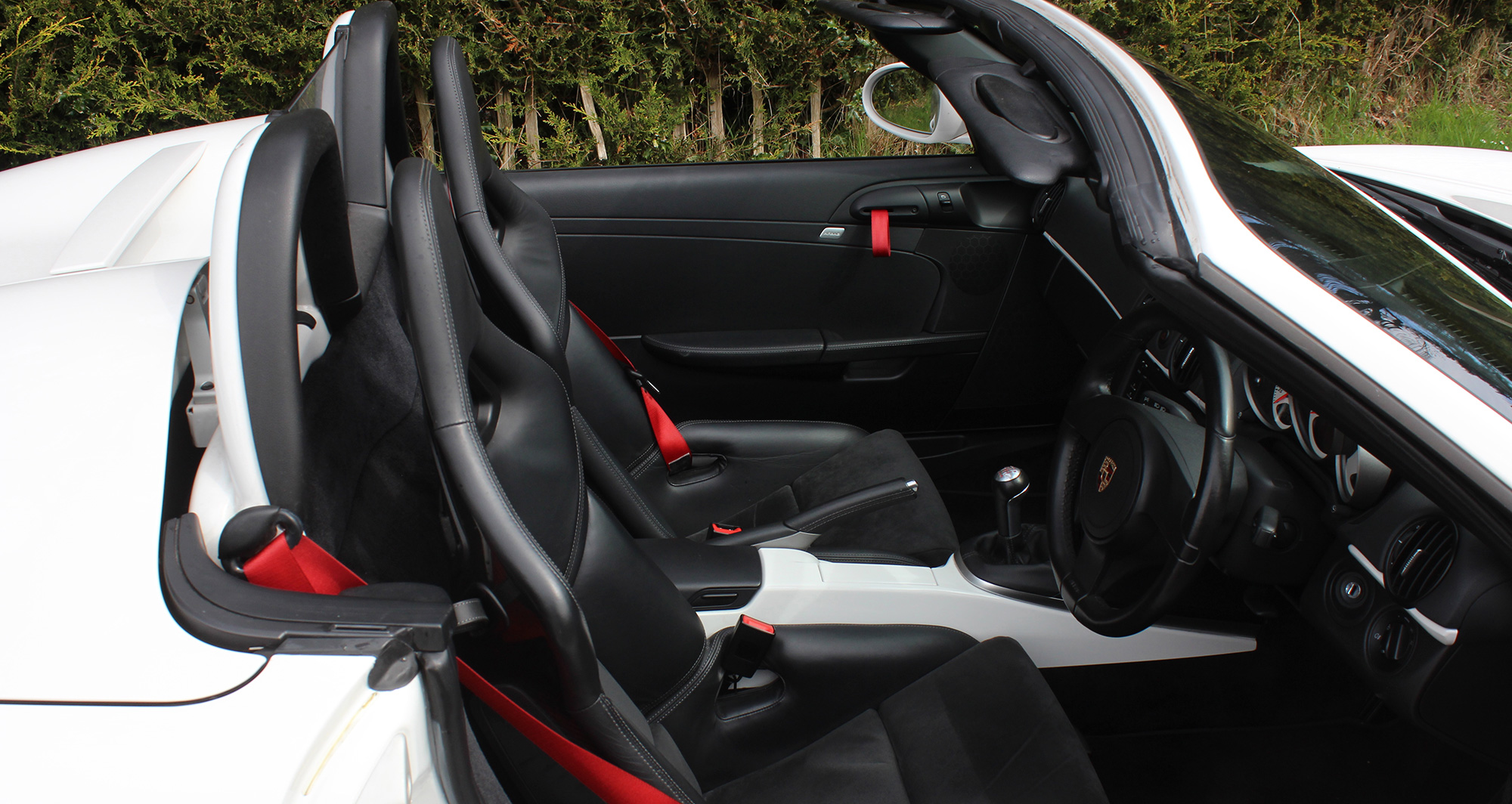 As standard the Spyder is fitted with Guards Red seat belts, a wind deflector, Porsche Stability Management and silver dials.