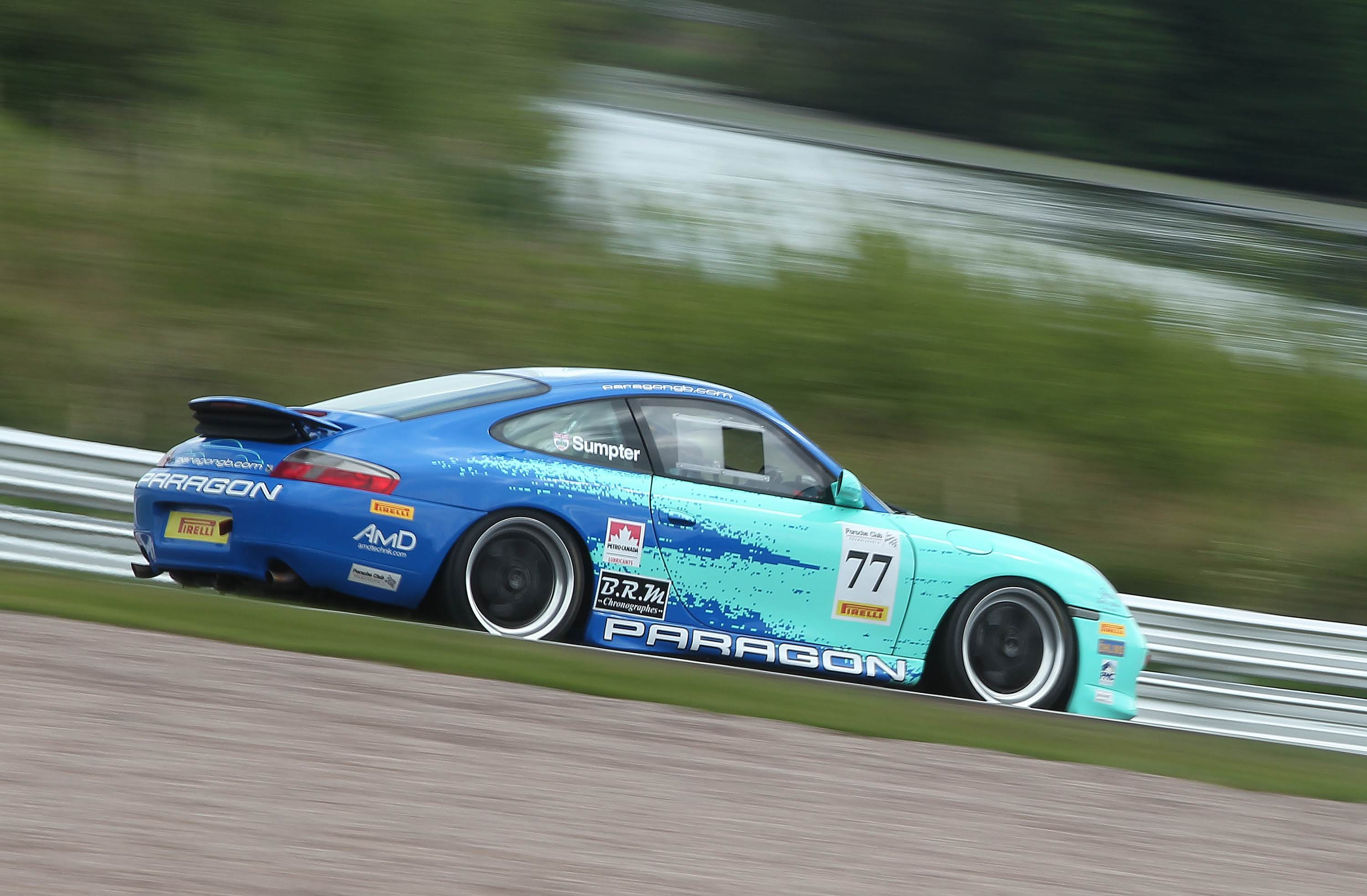 Mark Sumpter and the Paragon Porsche 996 C2 were the combination to beat when the Porsche Club Championship made its second visit of the season to Donington Park with Mark taking two pole positions, two race wins, and fastest lap in race two for a vital extra point. With the weather wet for qualifying and race two it was a day of widely varying track conditions, but Mark and the team rose to the occasion and his Baylis & Harding-backed Porsche was never headed in either race.
