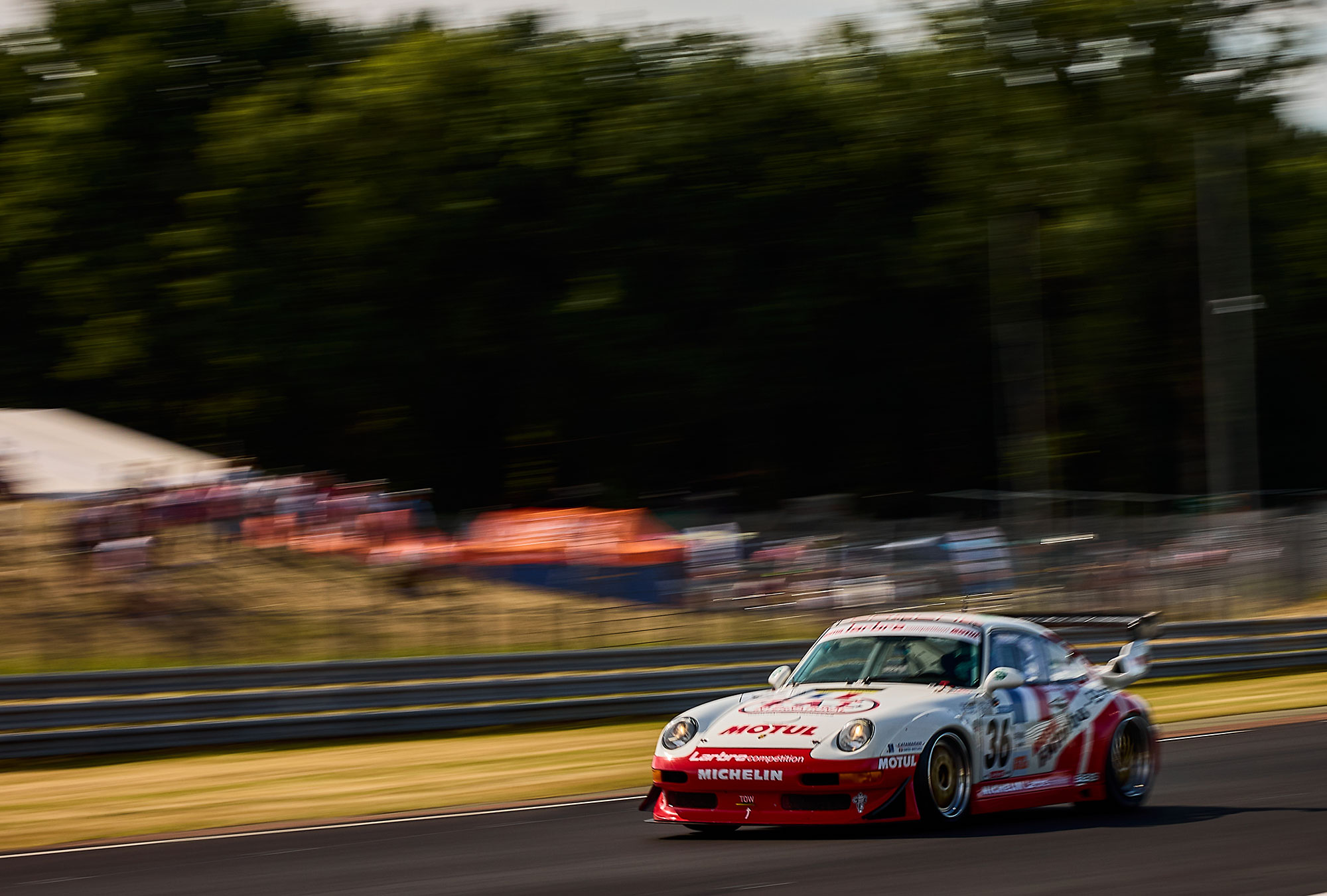 Headlining the Spa Classic were the pair of Group C races run on Sunday. The star cars in the field were the Jaguar XJR-14 of Christophe d'Ansembourg, the Peugeot 905 of Dominique Guenat and the Porsche 962 of Mark Sumpter. It was most likely the first time these were pitched against each other since the 1991 World Championship and it was certainly the first time a Peugeot 905 was ever run at Spa. Unfortunately an incident in the second qualifying prevent the Peugeot from starting in the races. The XJR-14 did survive qualifying with d'Ansembourg setting the fastest time ahead of Mark Sumpter in the ultimate development of the works Porsche 962Cs.