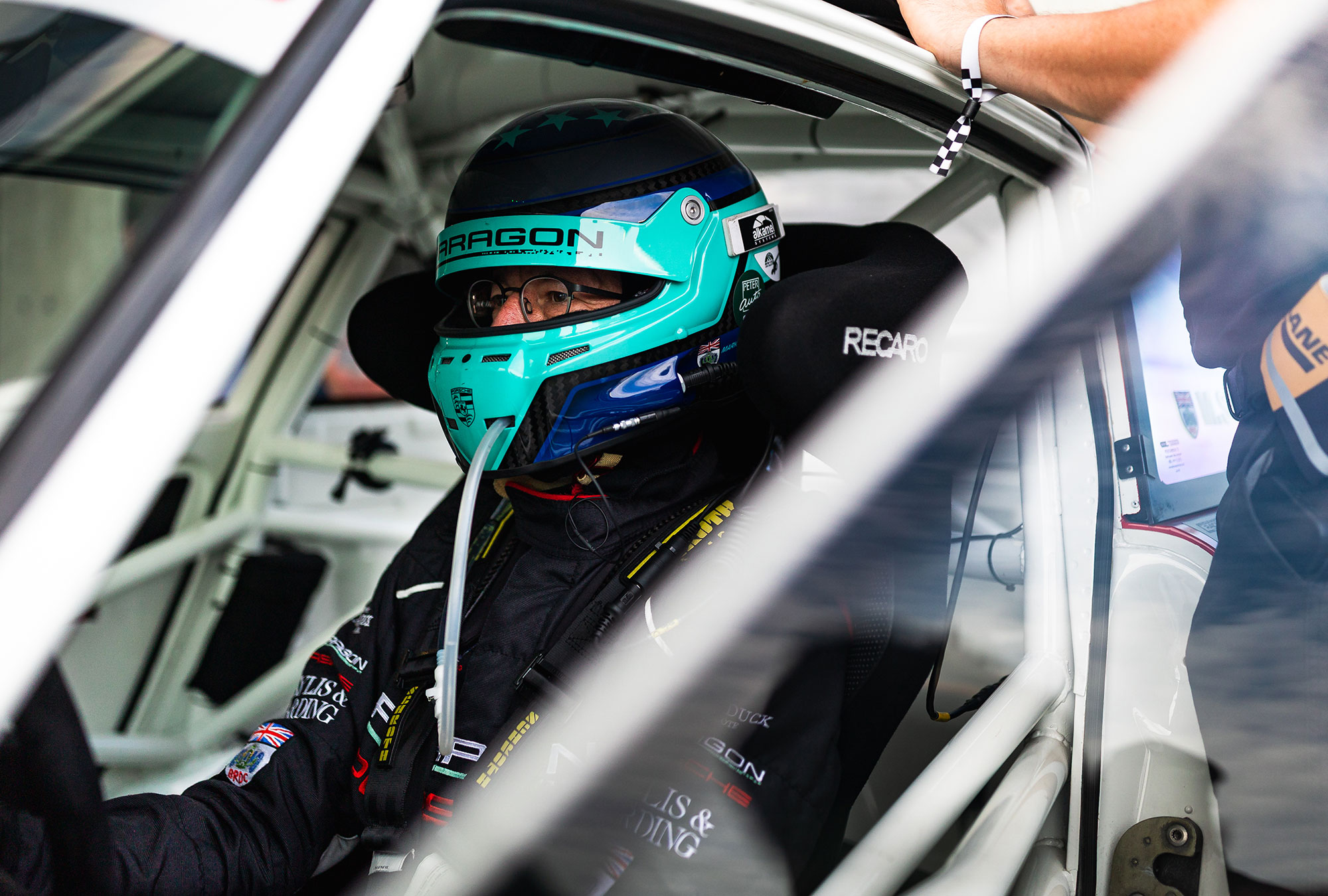 Qualifying went well, with Mark’s Baylis & Harding-backed car second of the Porsche Club Championship runners on the grid despite briefly leaving the circuit at the end of the session.