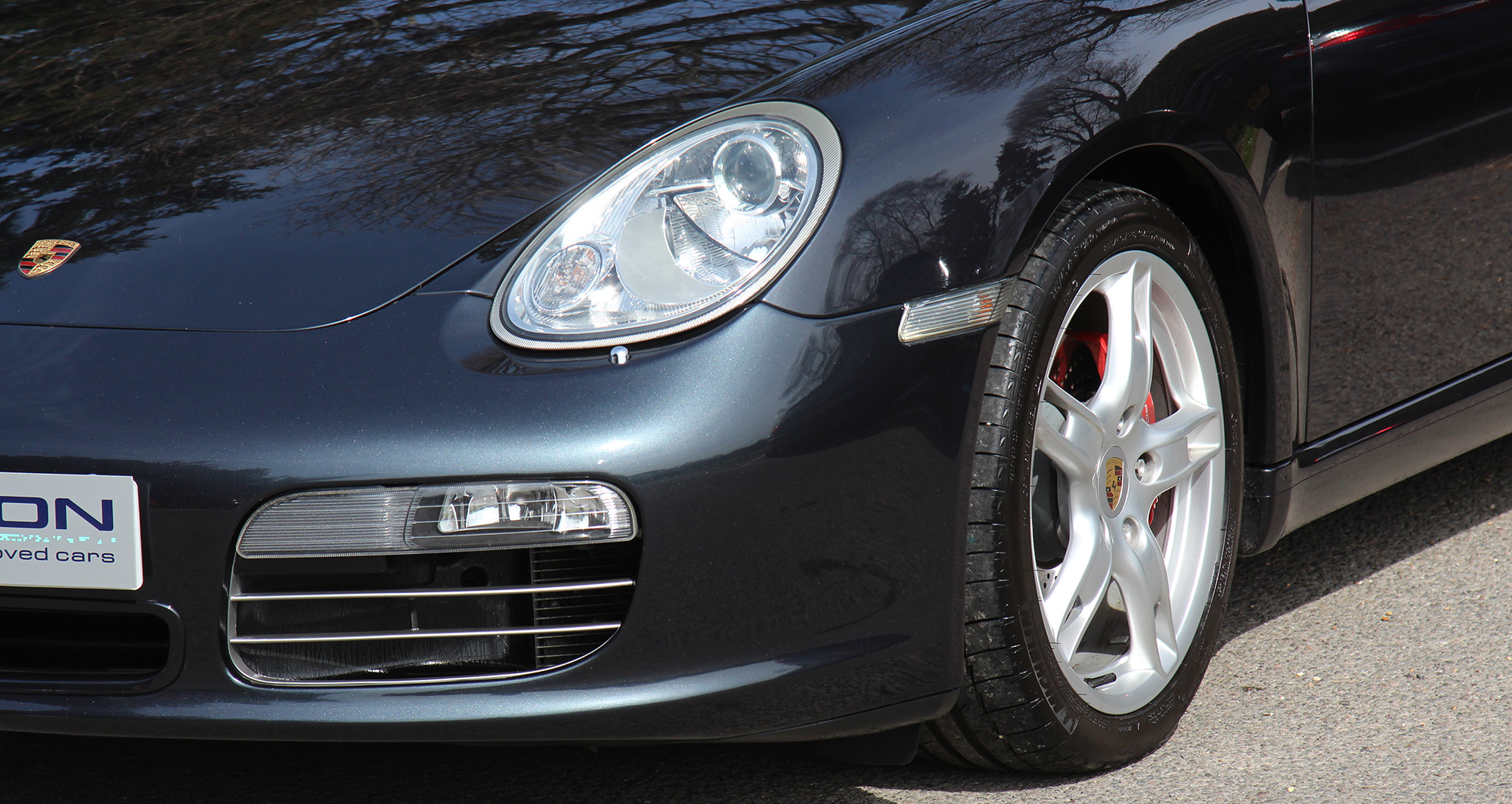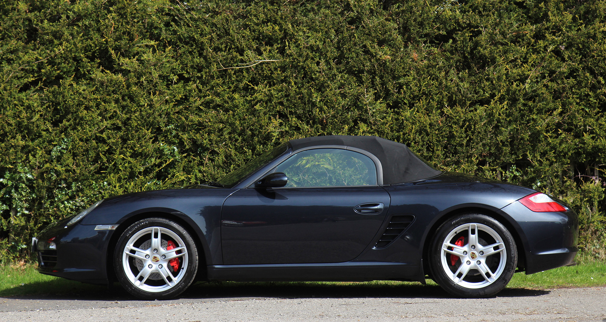 The 3.2 litre flat six engine develops 280 bhp and standard features include air conditioning, Porsche Stability Management, a wind deflector, an onboard computer, silver dials and 18" Boxster S II wheels.