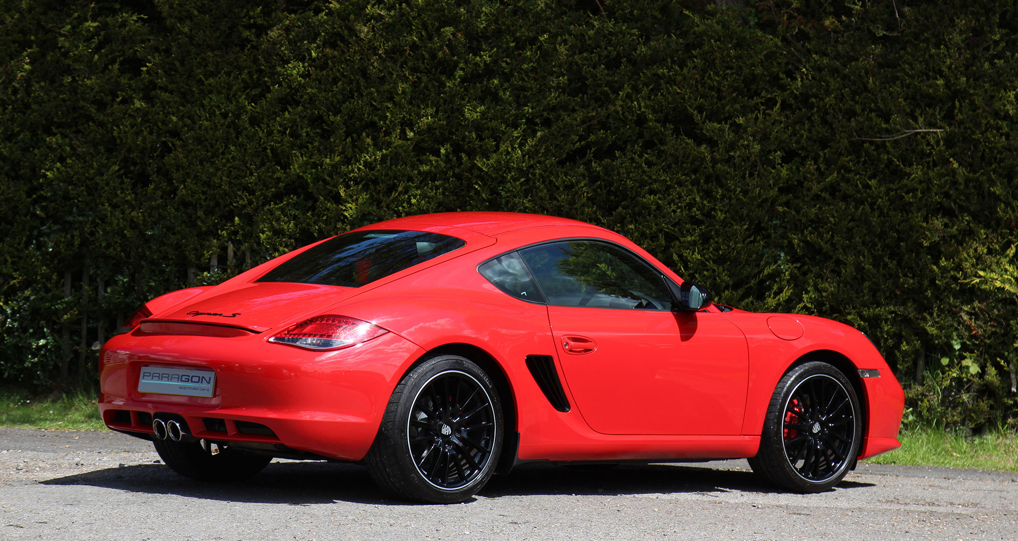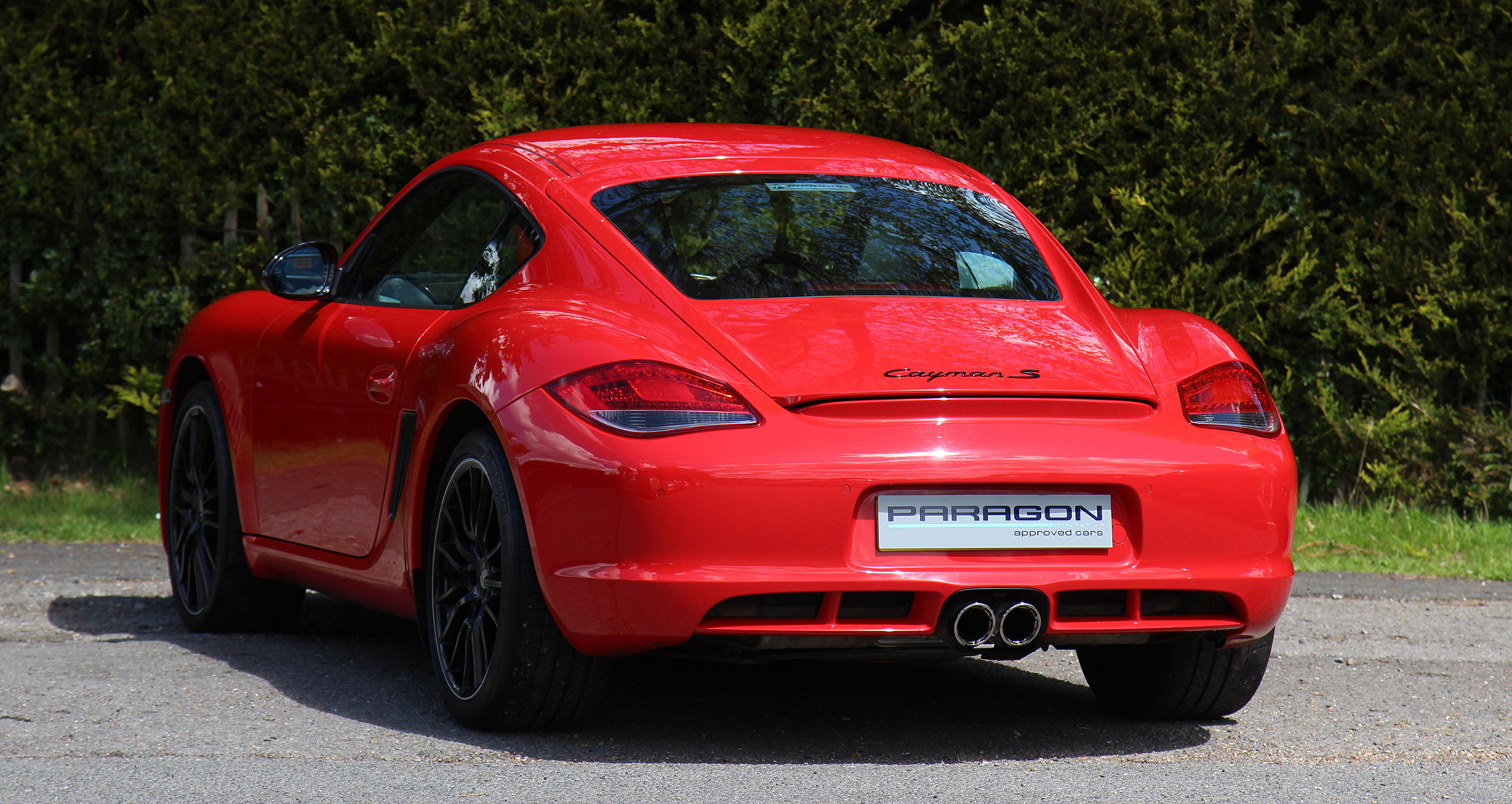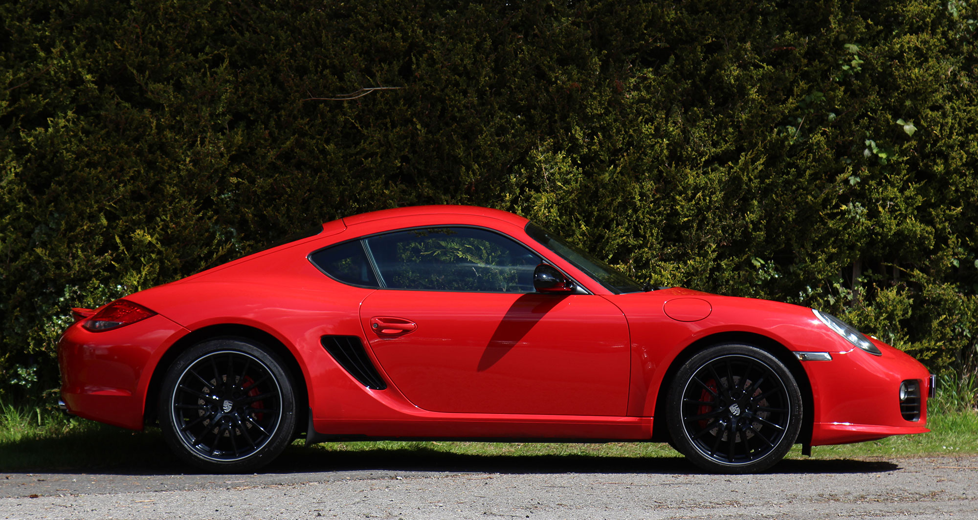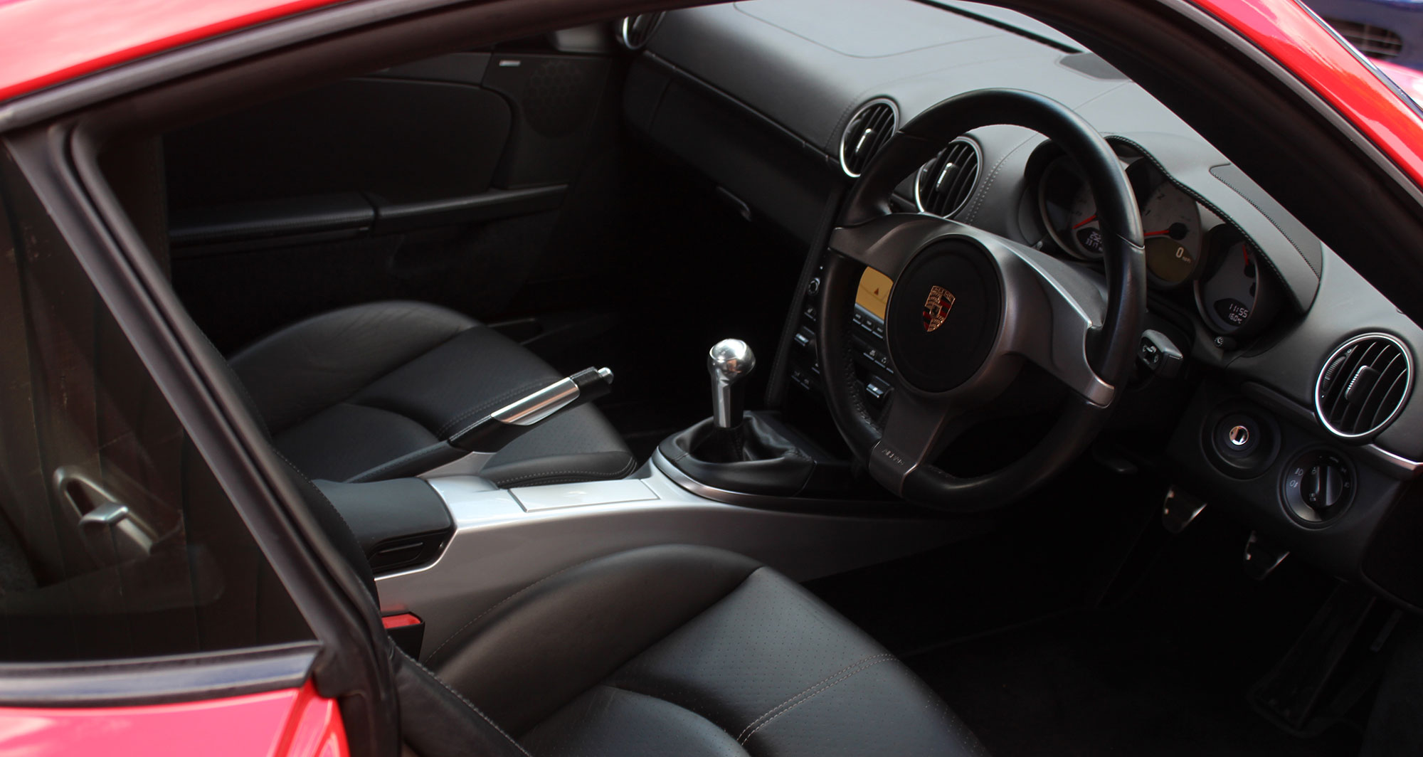 This Cayman S (987) GEN II has the 6-speed manual gearbox and is presented in the traditional Porsche colour scheme of Guards Red with black leather seats.