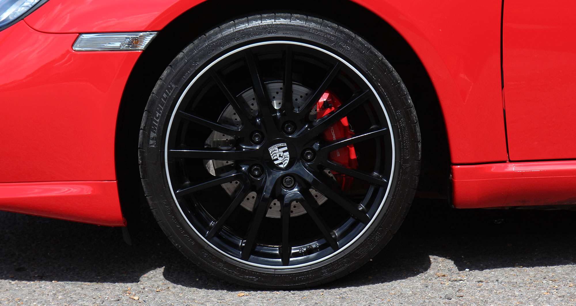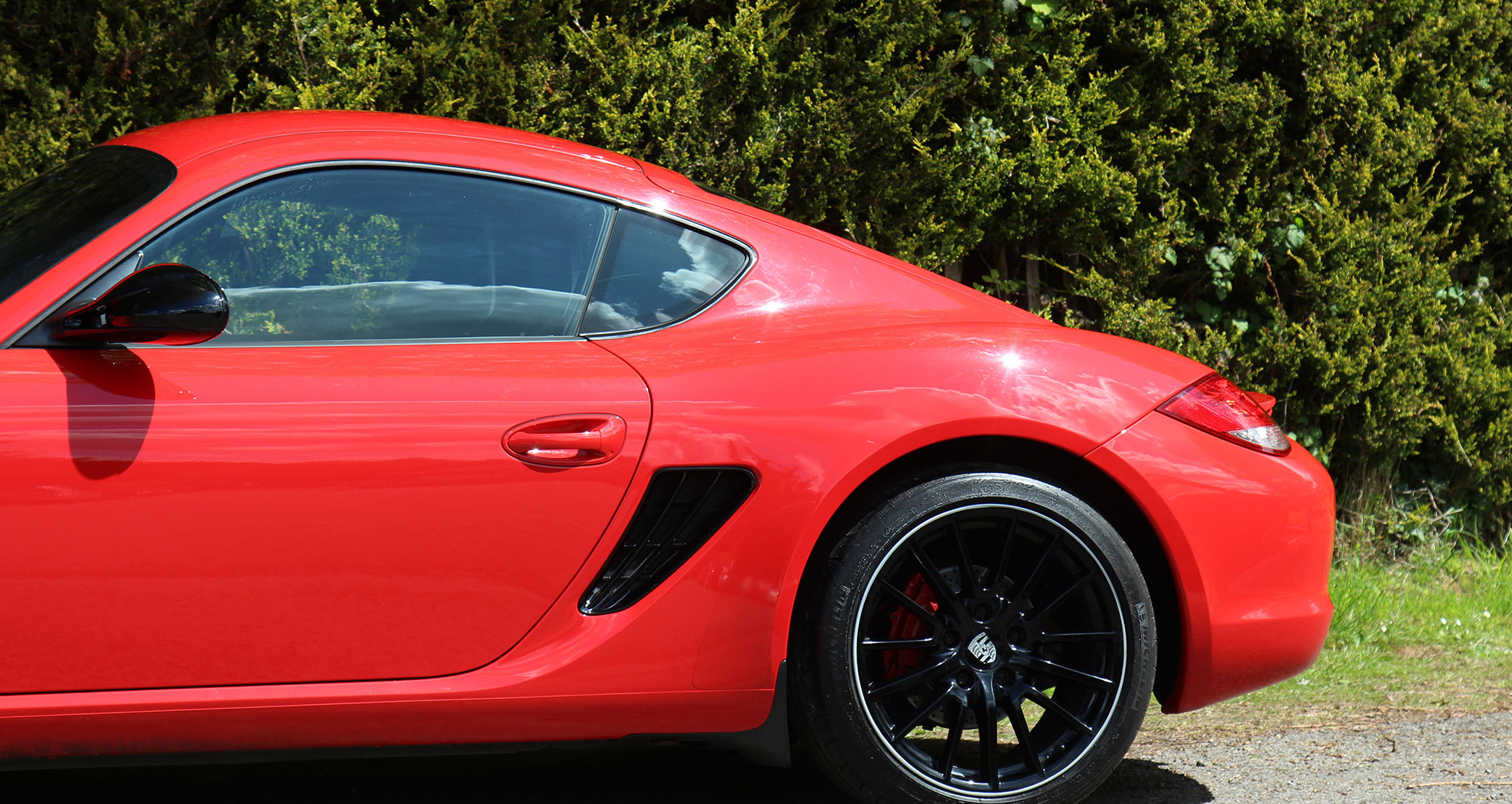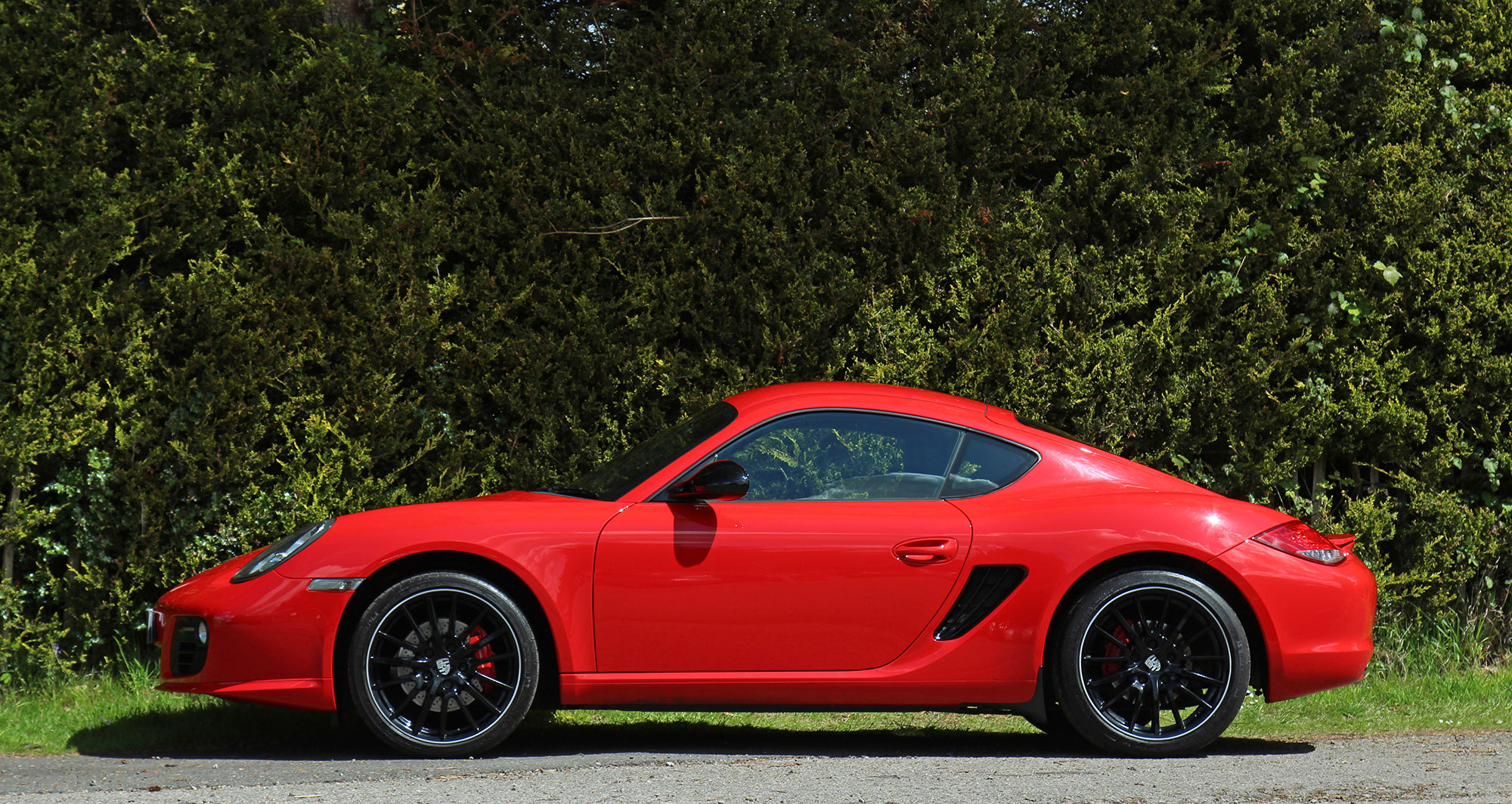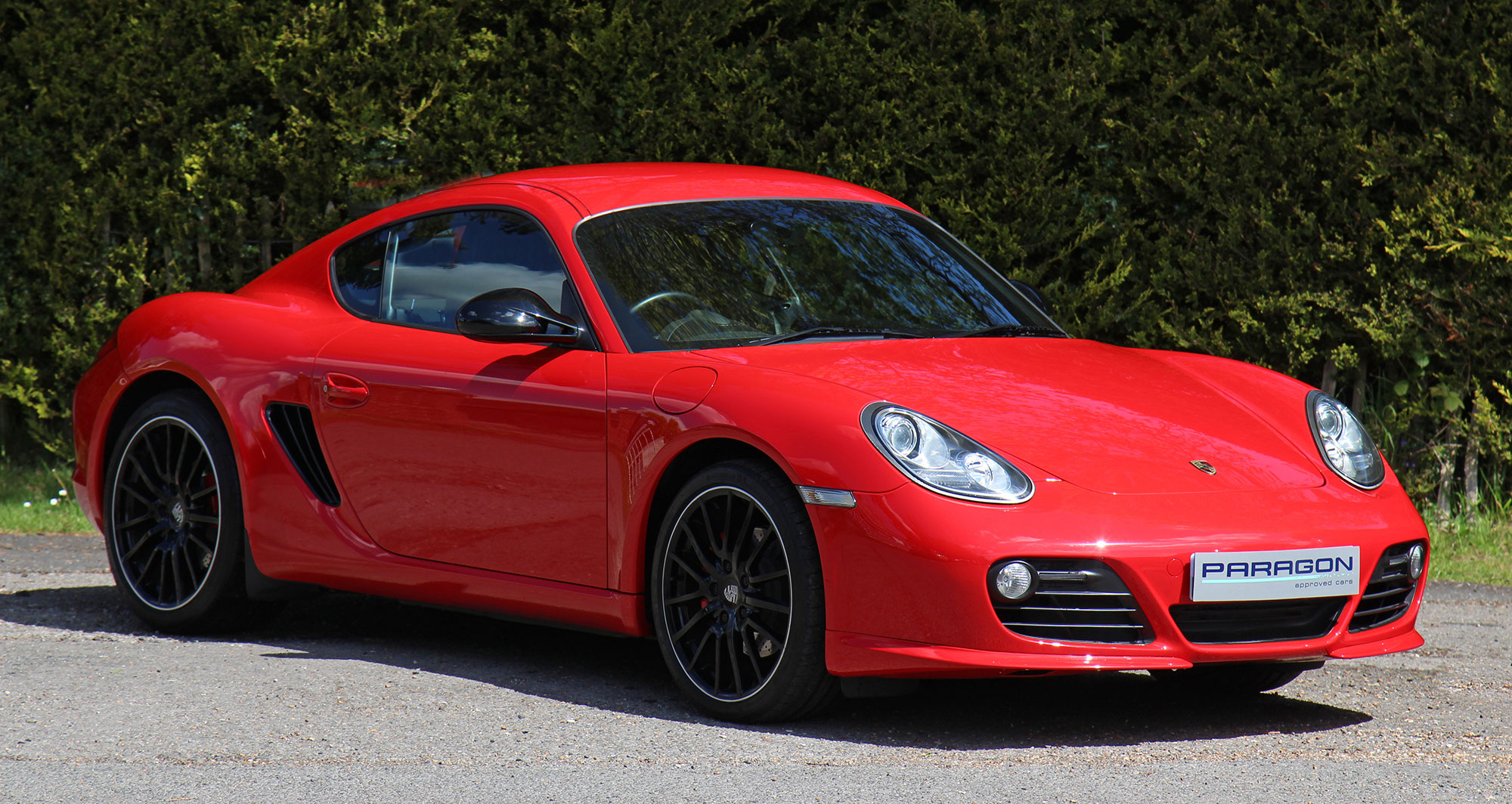 This Cayman S (987) GEN II has the 6-speed manual gearbox and is presented in the traditional Porsche colour scheme of Guards Red with black leather seats.