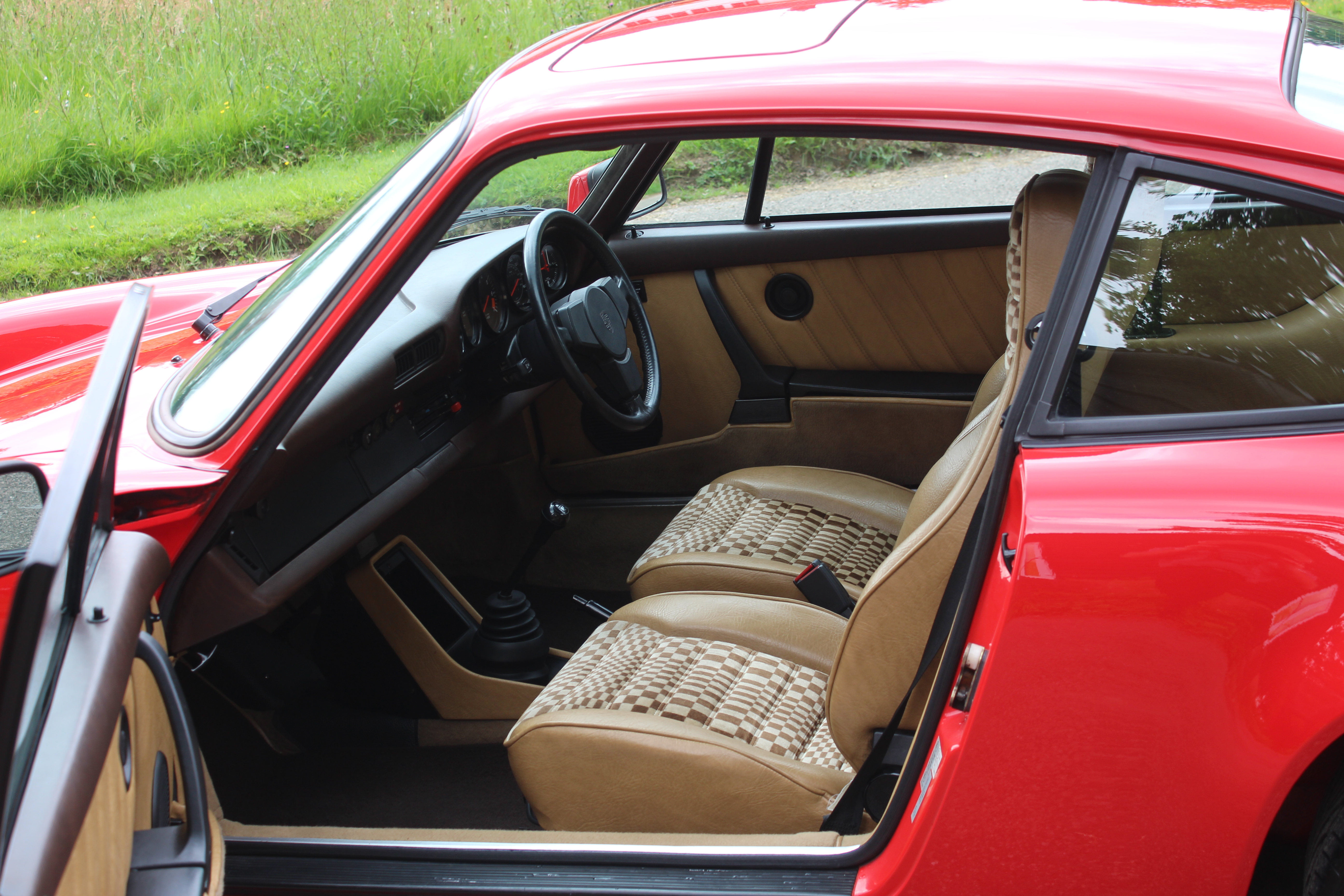 This beautiful 911 SC ('Super Carrera') Coupe has the 5-speed 915 manual gearbox and is presented in Guards Red with Tan Pasha seats.