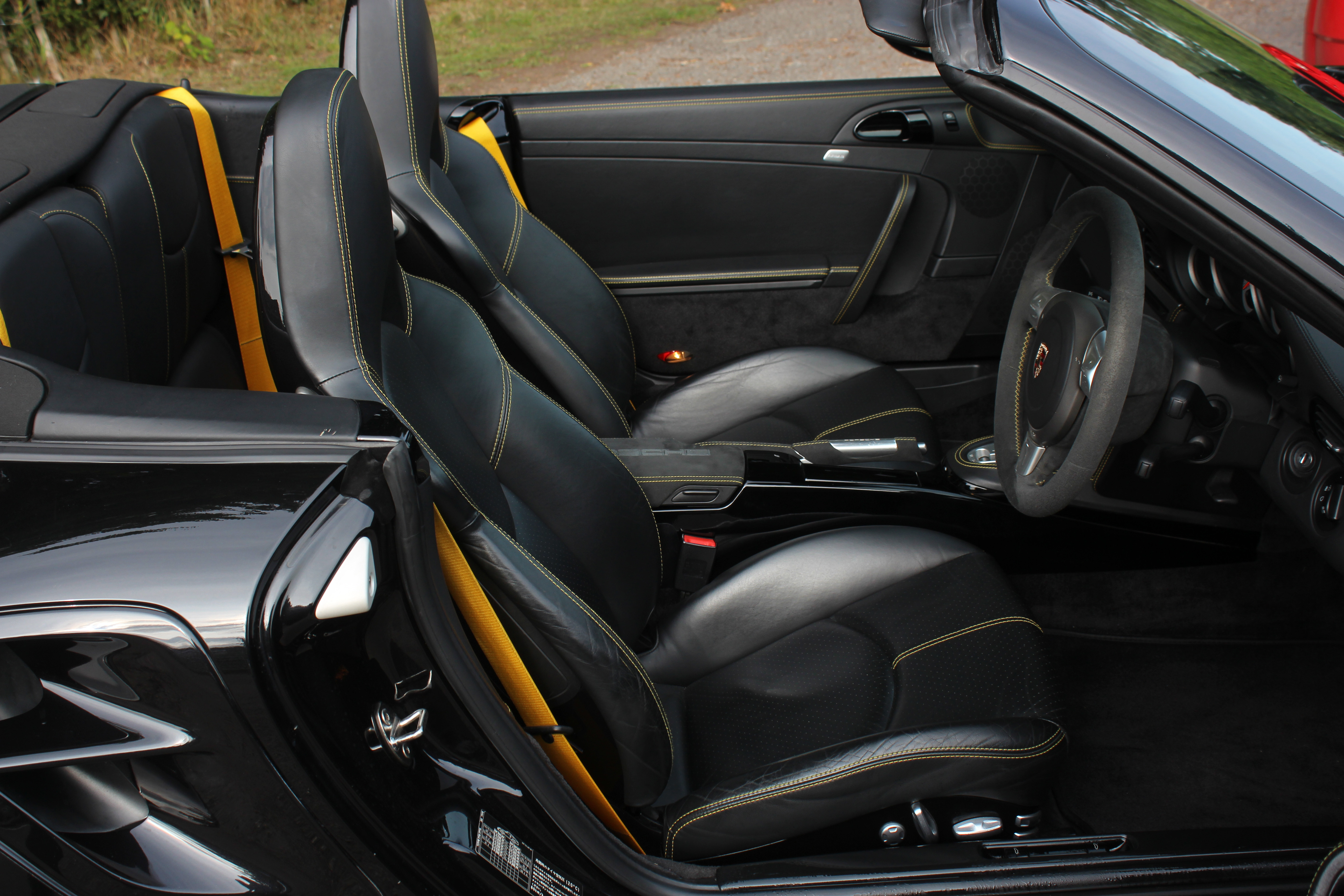 Factory-fitted options include adaptive sport seats with drivers memory, a factory hardtop, the Sport Chrono Pack Plus, heated seats, colour coded seat backs, the Extended Leather Package, a Gloss Black centre console, yellow seat belts, the leather stitched in yellow, Porsche Ceramic Composite Brakes, cruise control, red tail lights and the Tiptronic S gearbox with fingertip gear change.