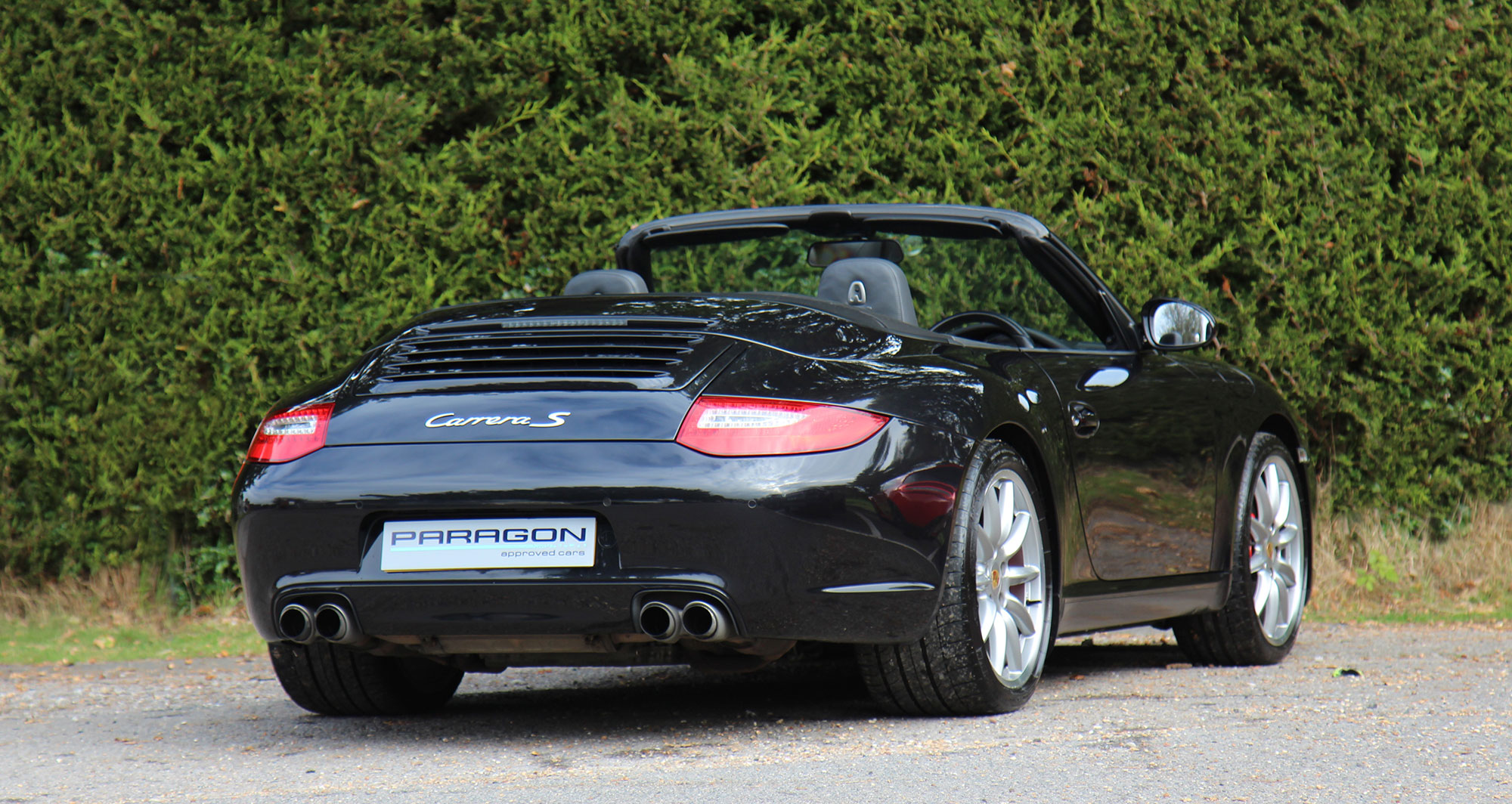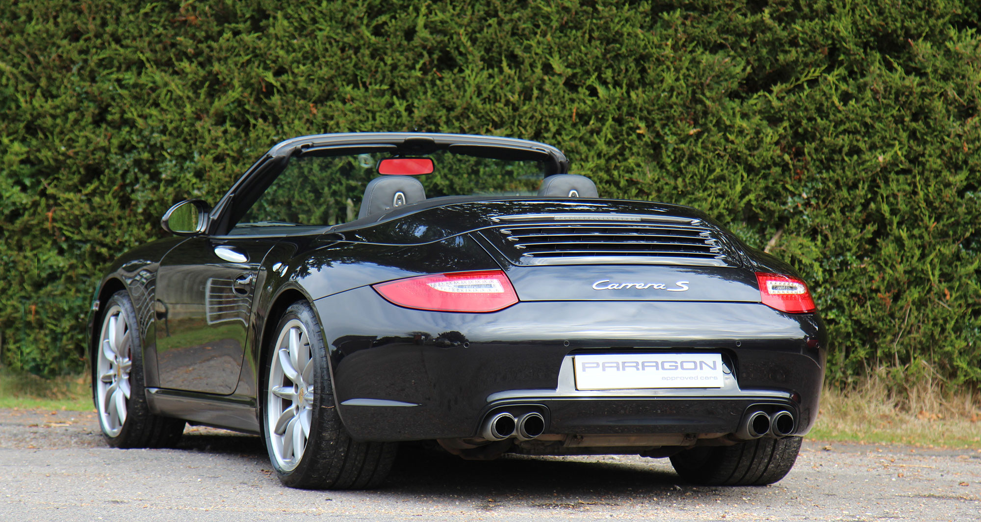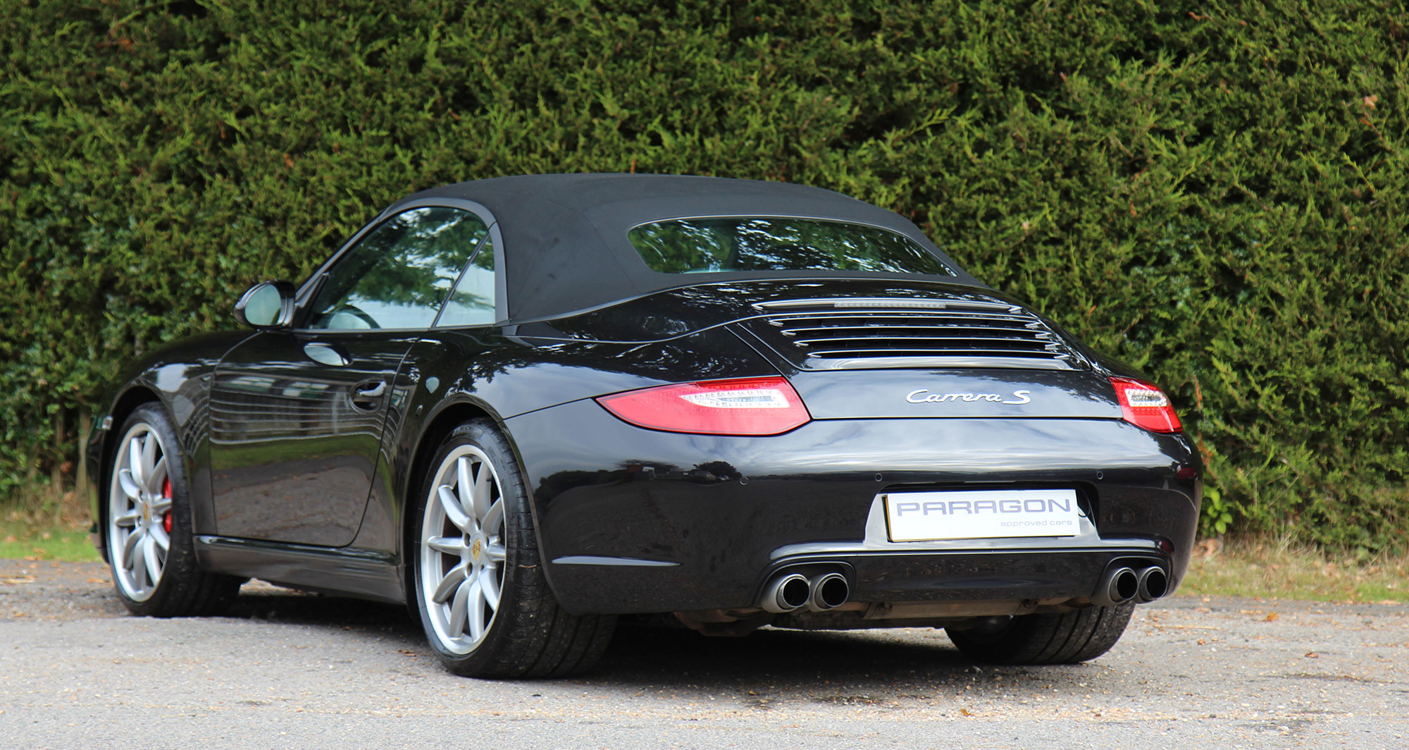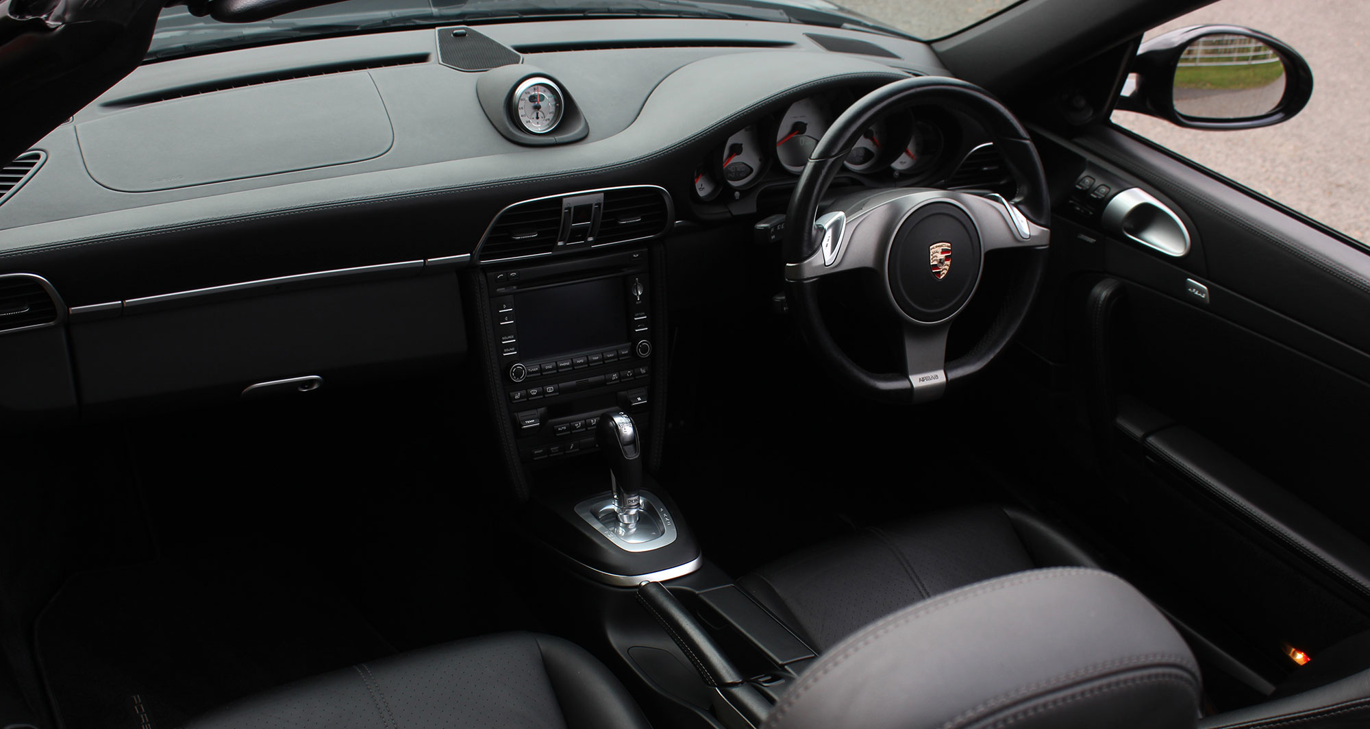 This 911 Carrera 2 S Cabriolet (997 GEN II) has the 7-speed PDK gearbox and is presented in Basalt Black with black leather seats and black power hood.