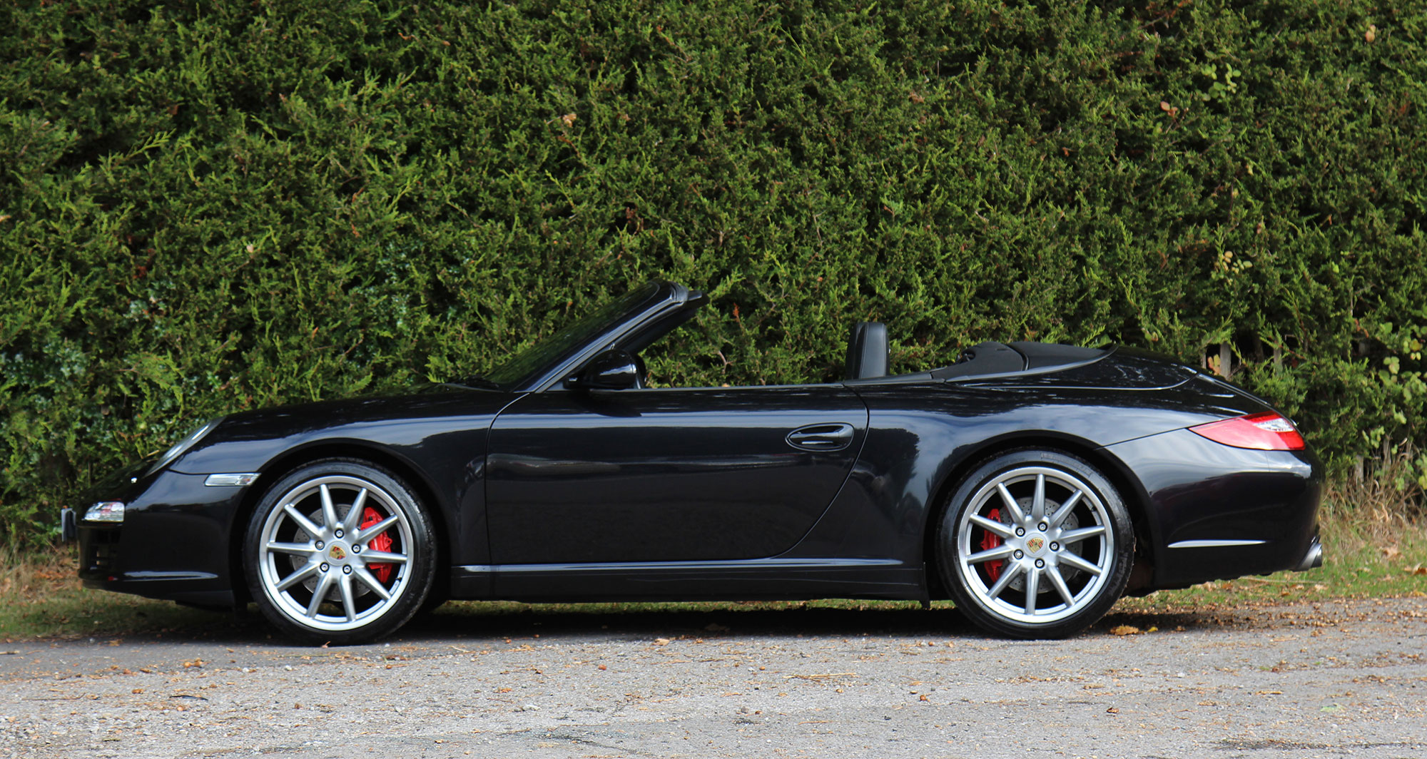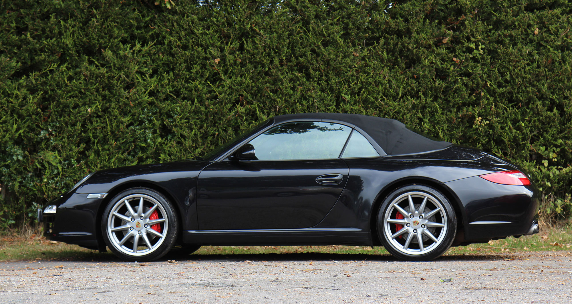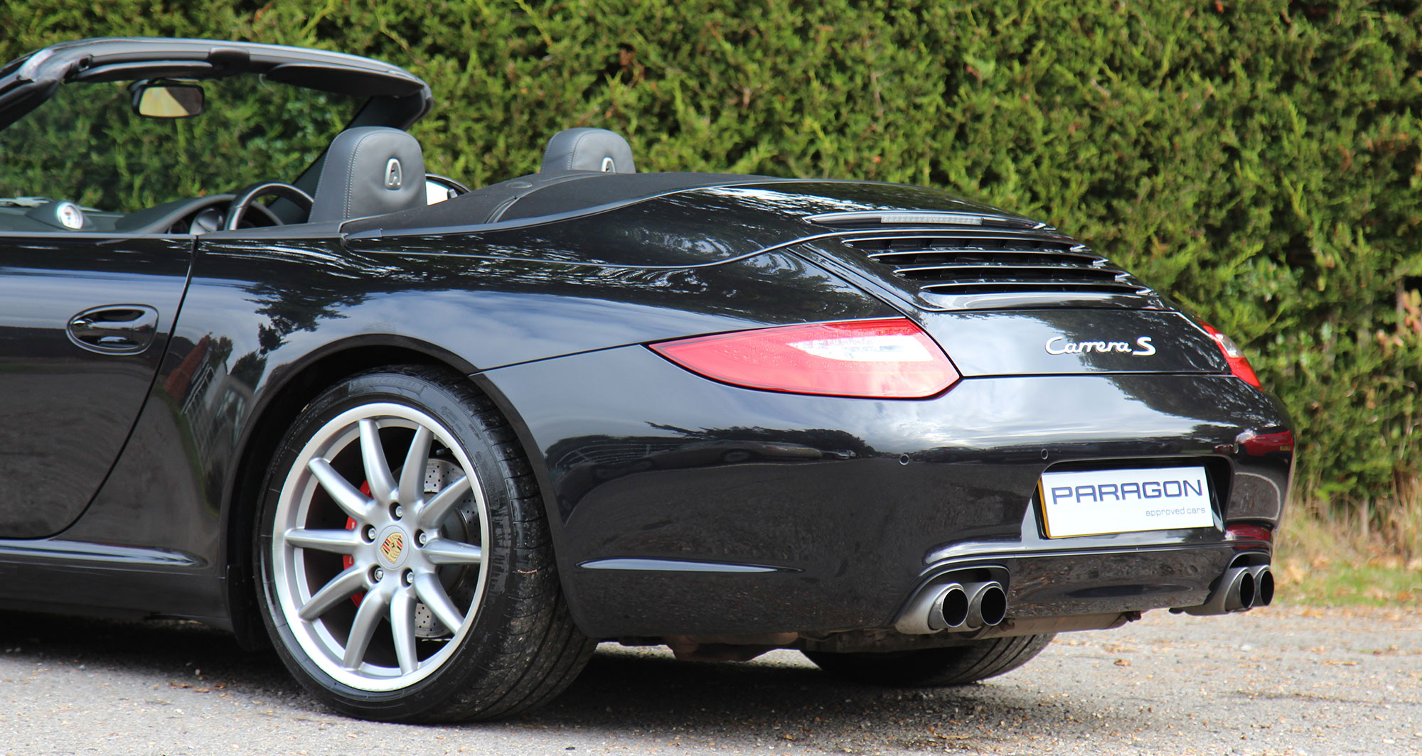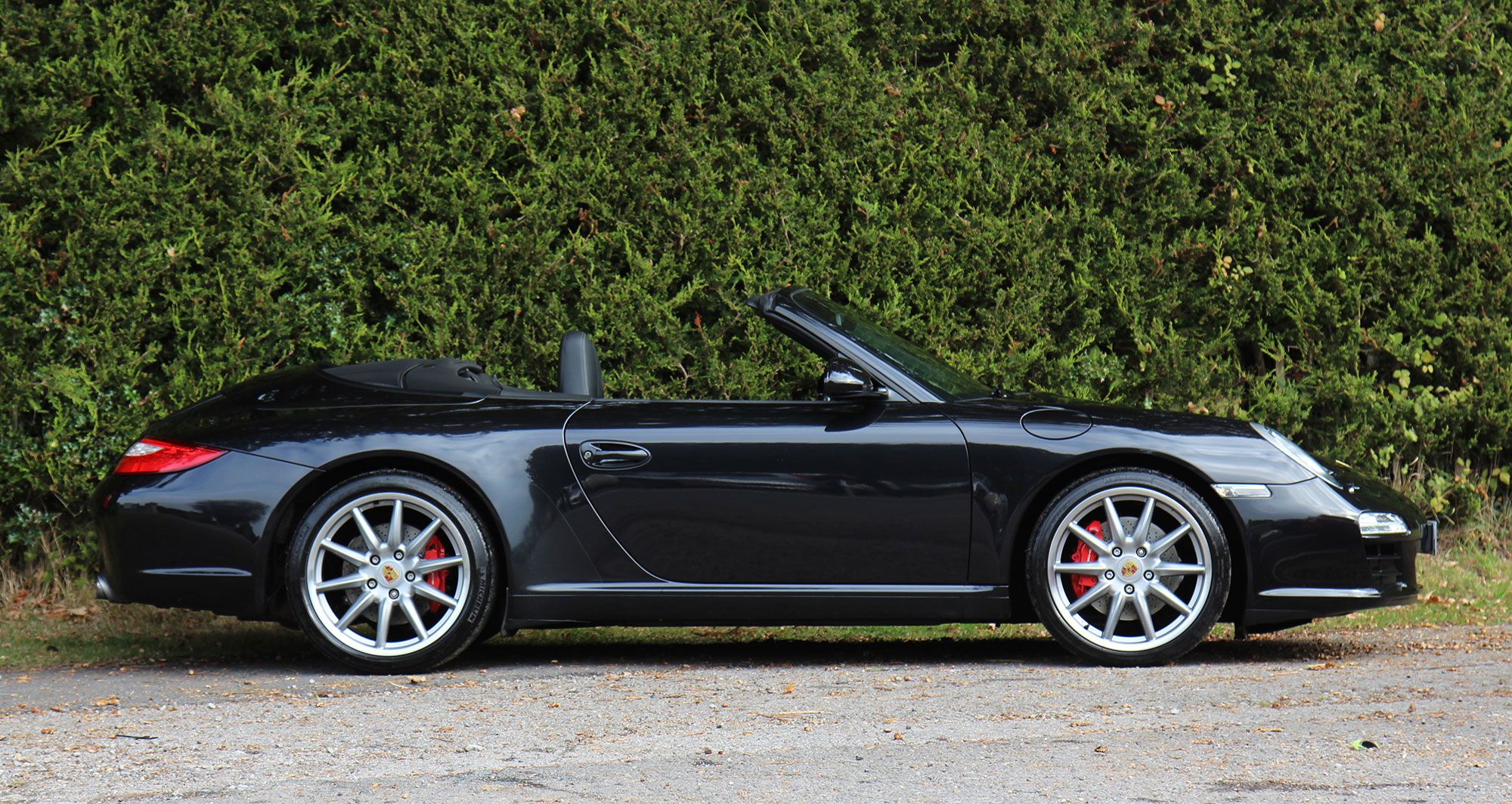 This 911 Carrera 2 S Cabriolet (997 GEN II) has the 7-speed PDK gearbox and is presented in Basalt Black with black leather seats and black power hood.