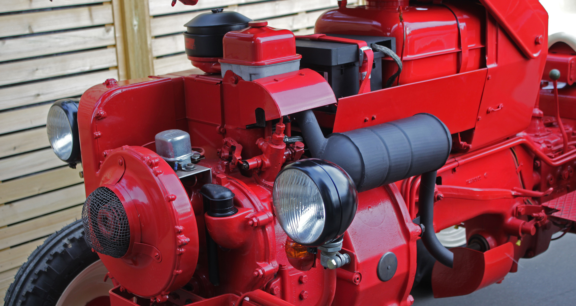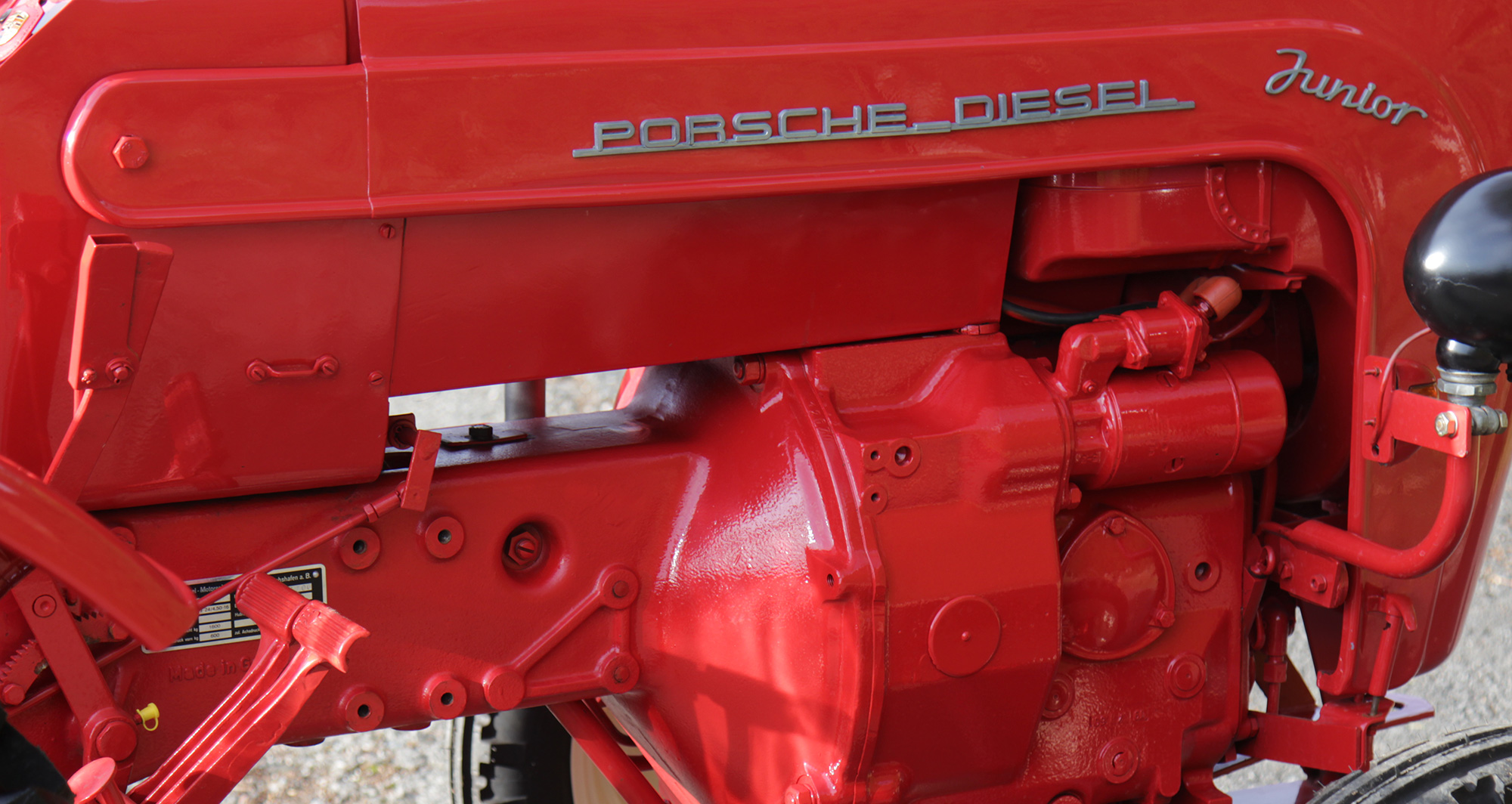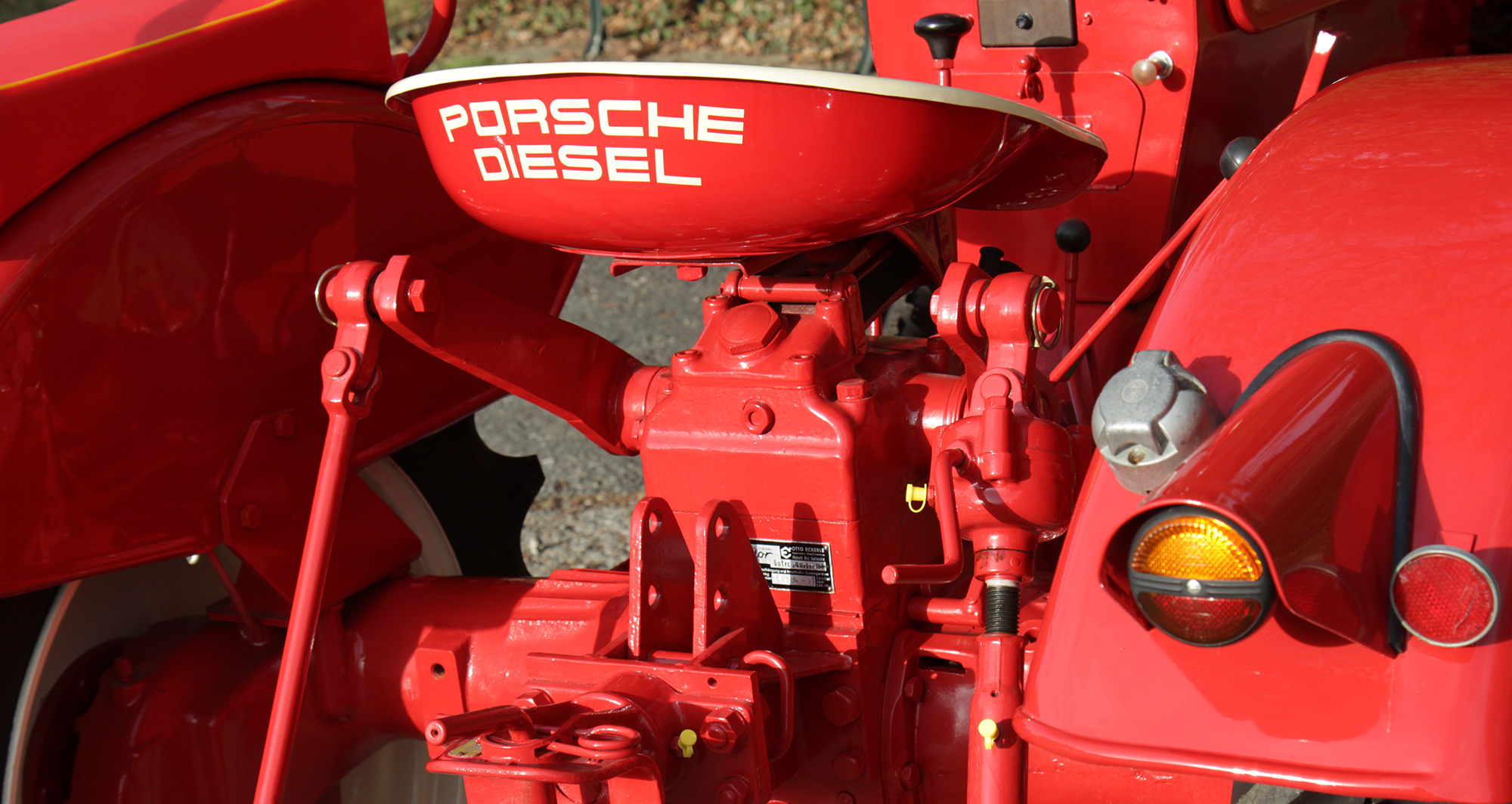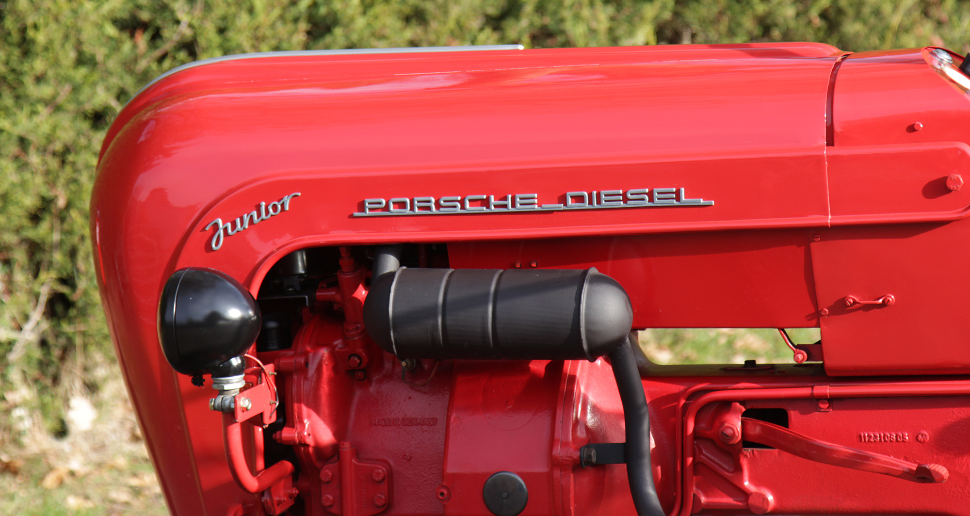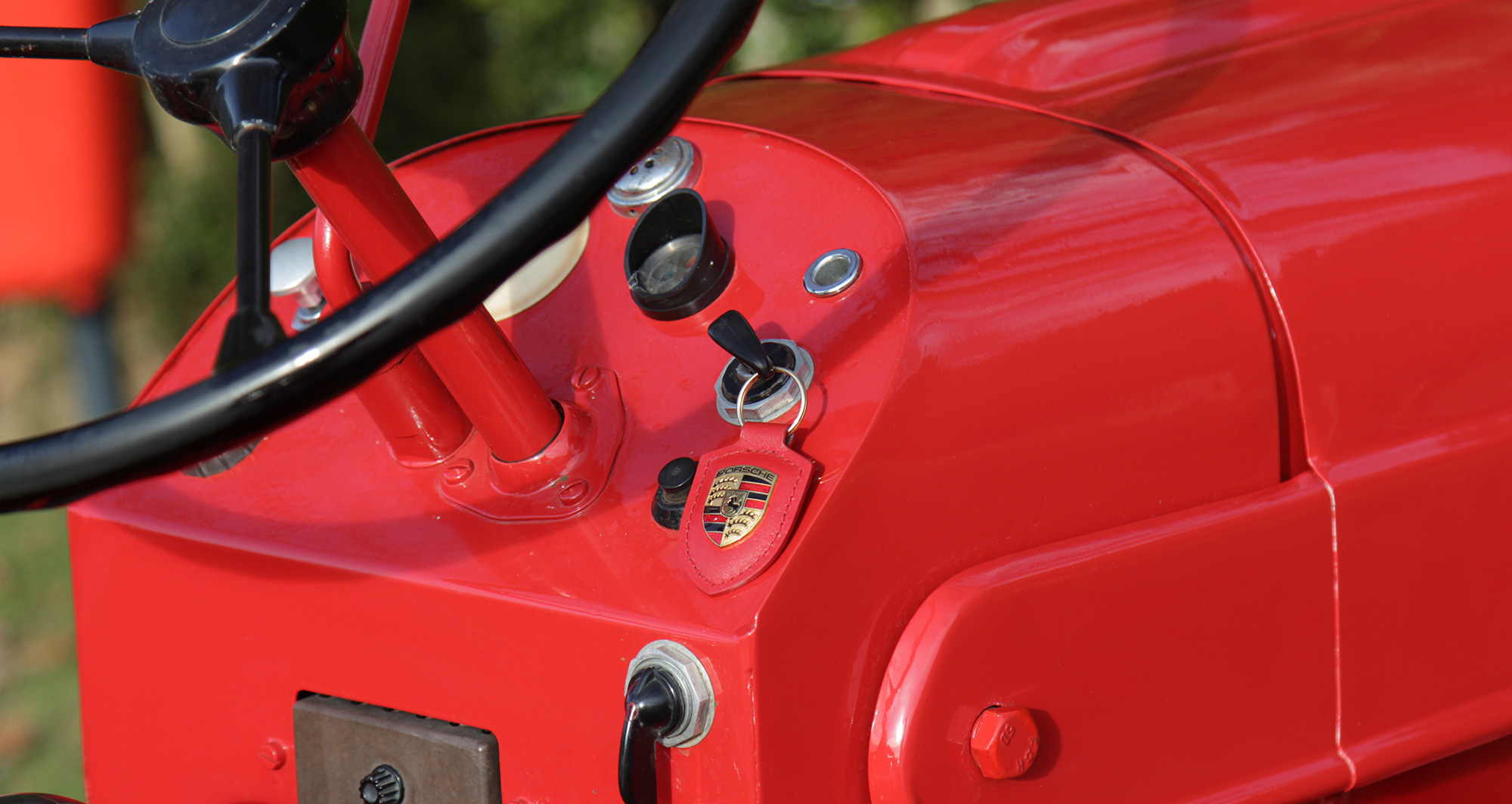 This wonderful Porsche Junior Tractor (Chassis no. K12670G) is red with a cream suspended sprung seat and has a 822cc single-cylinder air cooled diesel engine developing 14 bhp.