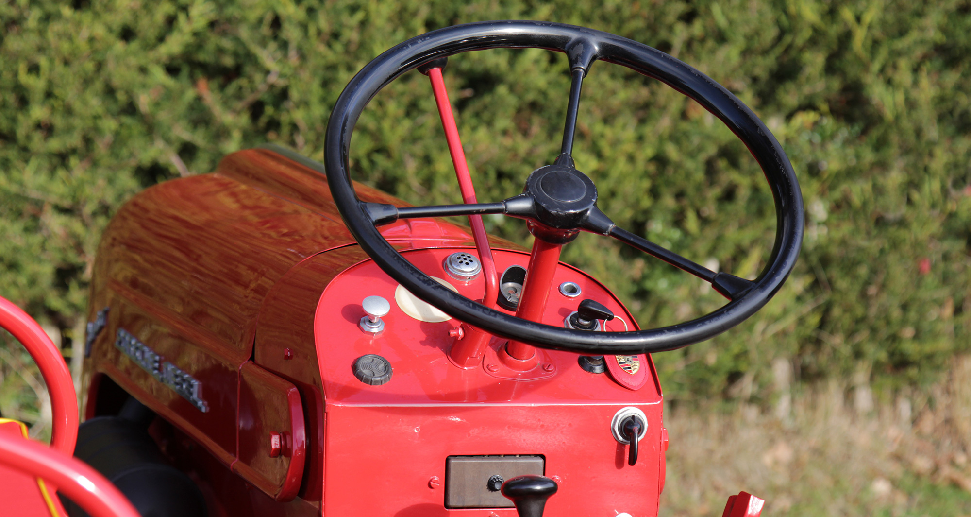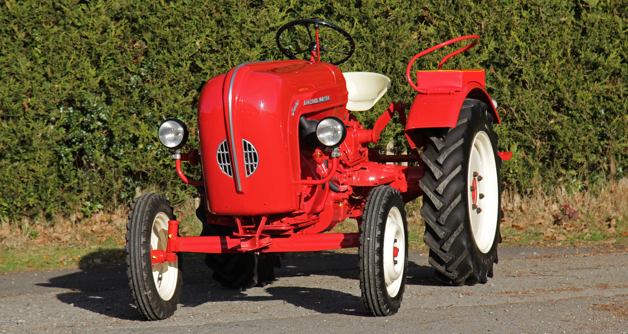 This example features hand and foot throttles, independent rear brakes, passenger seat, electric start, 3- point hydraulic linkage, rear draw bar, front and rear tow hitch, road legal lights, horn and front & rear power take off units. It has been fully restored and serviced with parts sourced from Germany and surely must be the perfect mode of transport for those important jobs around the garden - whatever the size. It's also a fabulous piece of Porsche history.