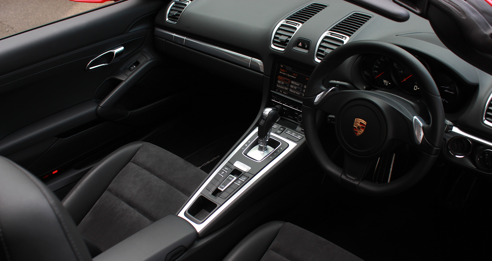 This gorgeous Boxster 2.7 (981) has the 7-speed PDK gearbox and is presented in the traditional Porsche colour of Guards Red with black sports seats with Alcantara inserts.