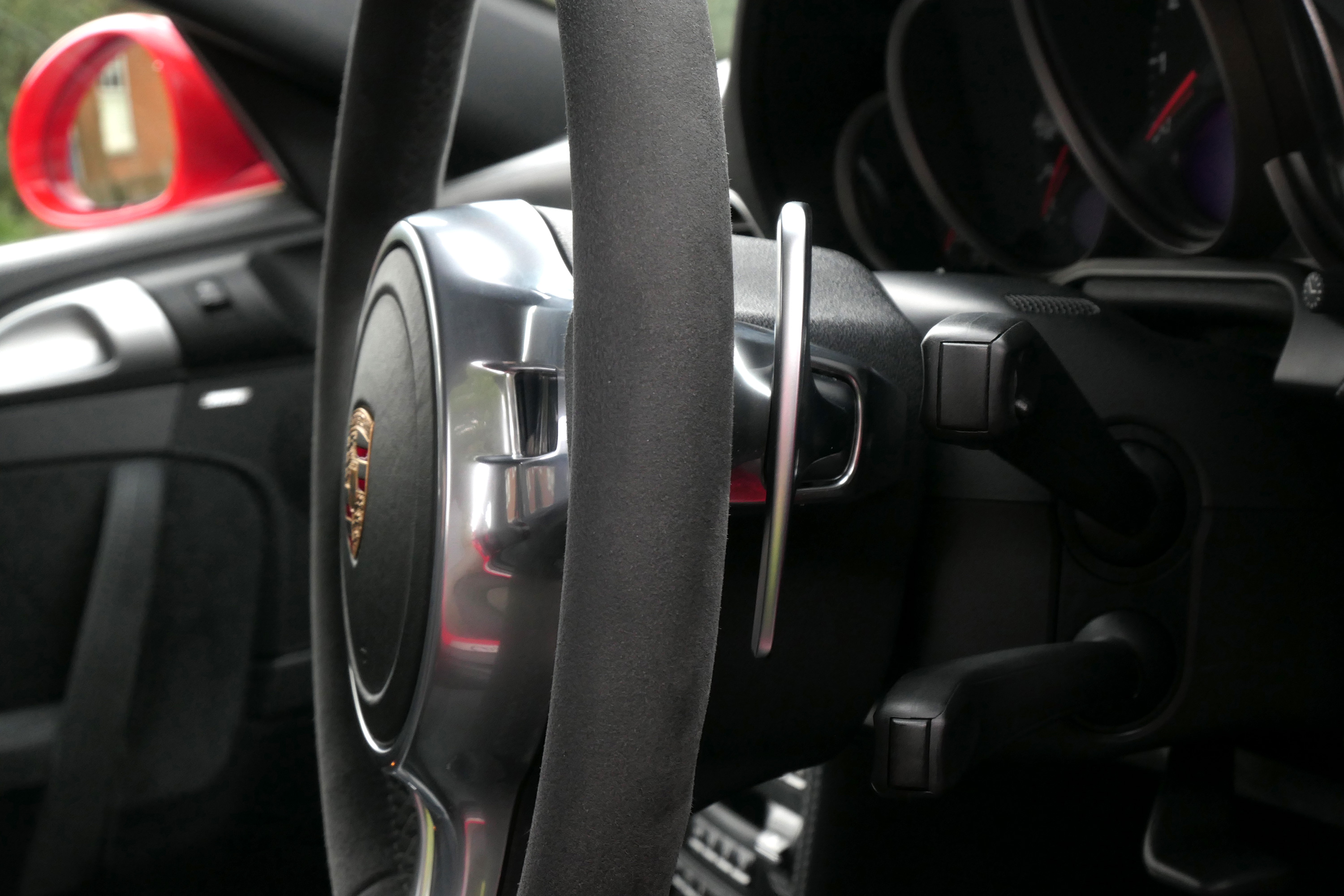 Factory-fitted options include the 7-speed PDK gearbox, cruise control, heated seats, the Sport Chrono Pack with Sport Plus, Guards Red seat belts, embossed crested headrests, body coloured seat backs, rear park assist, a BOSE sound system, an iPod/USB interface for PCM and colour coded side skirts. We know this 911 really well as it was previously sold and serviced by Paragon.