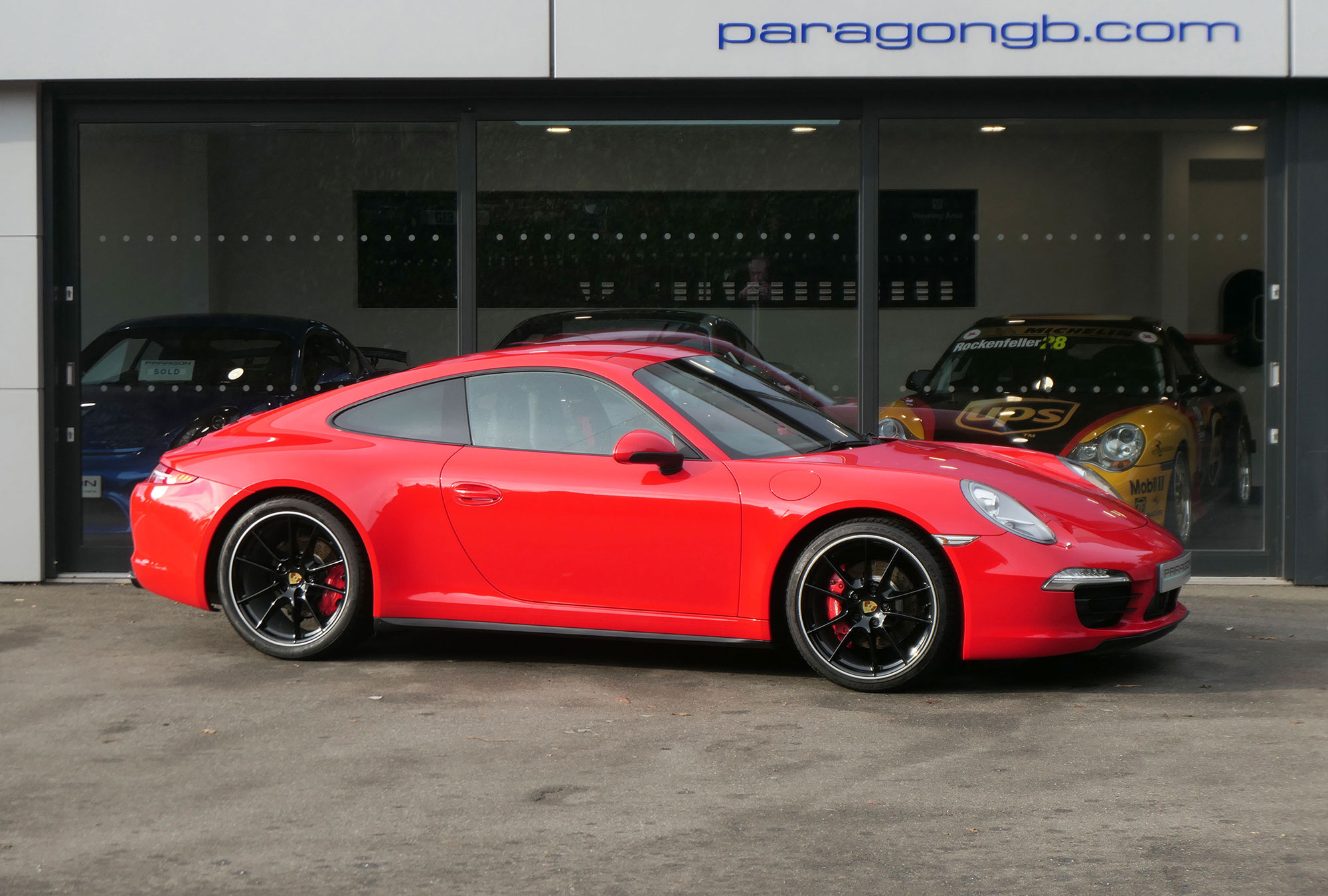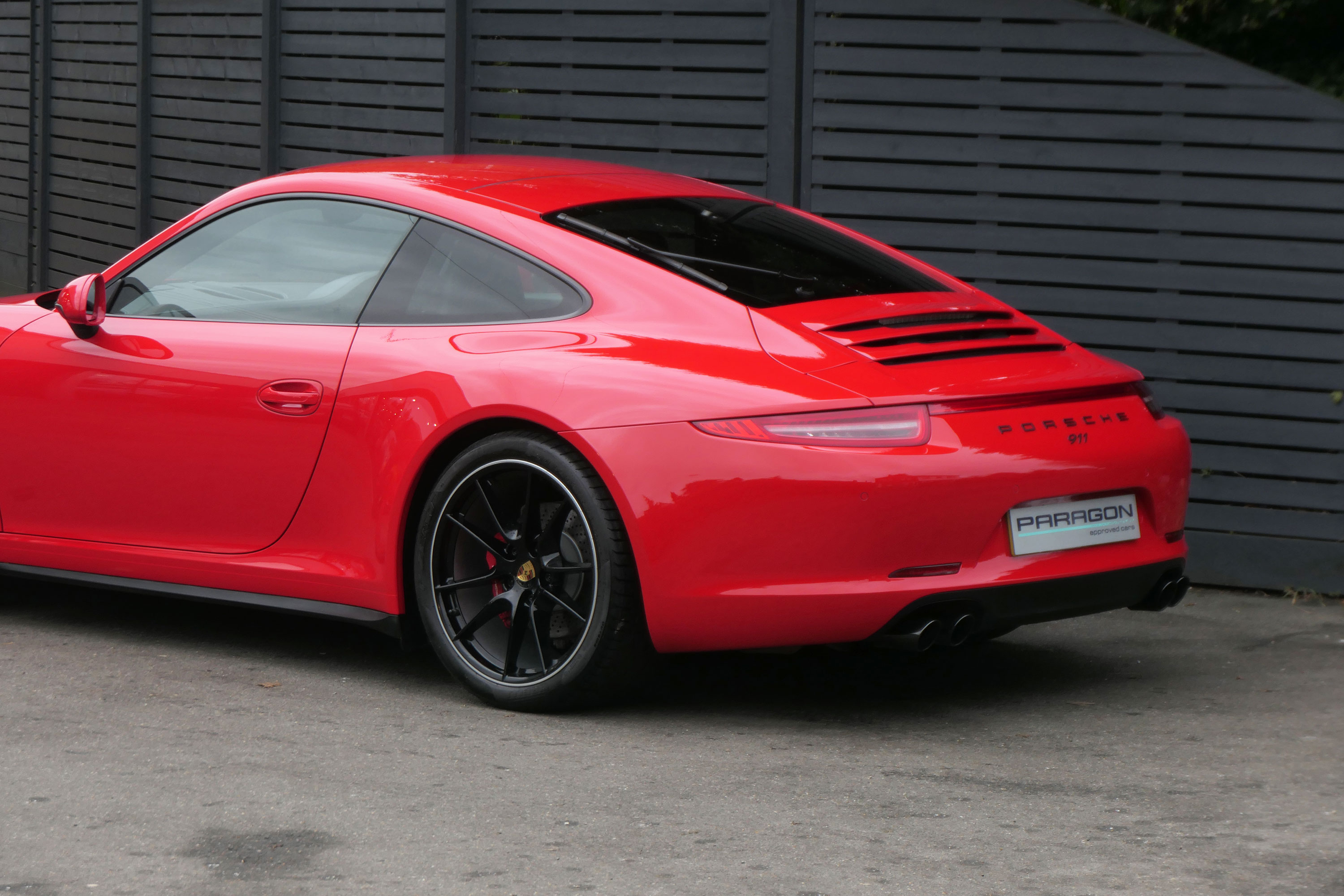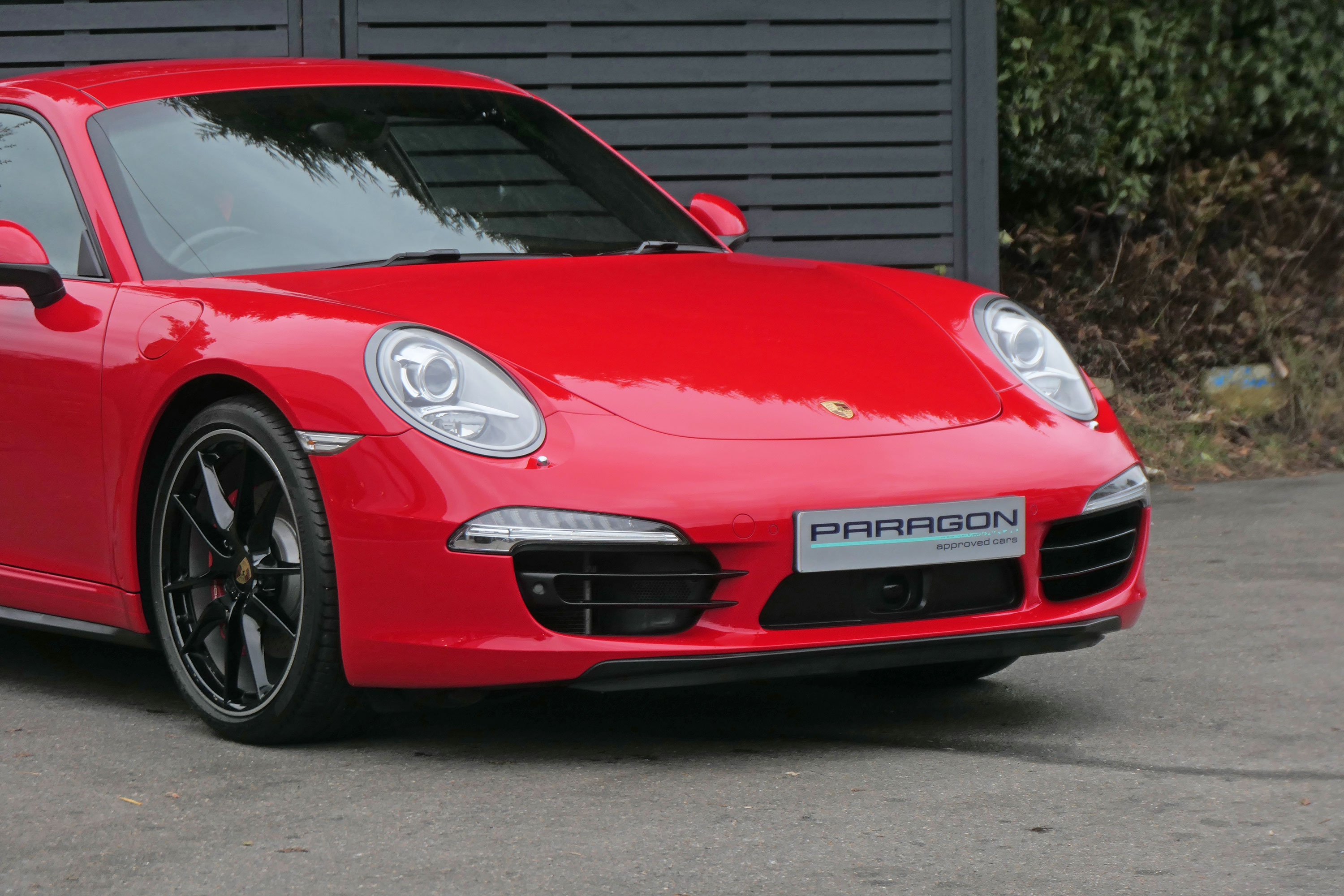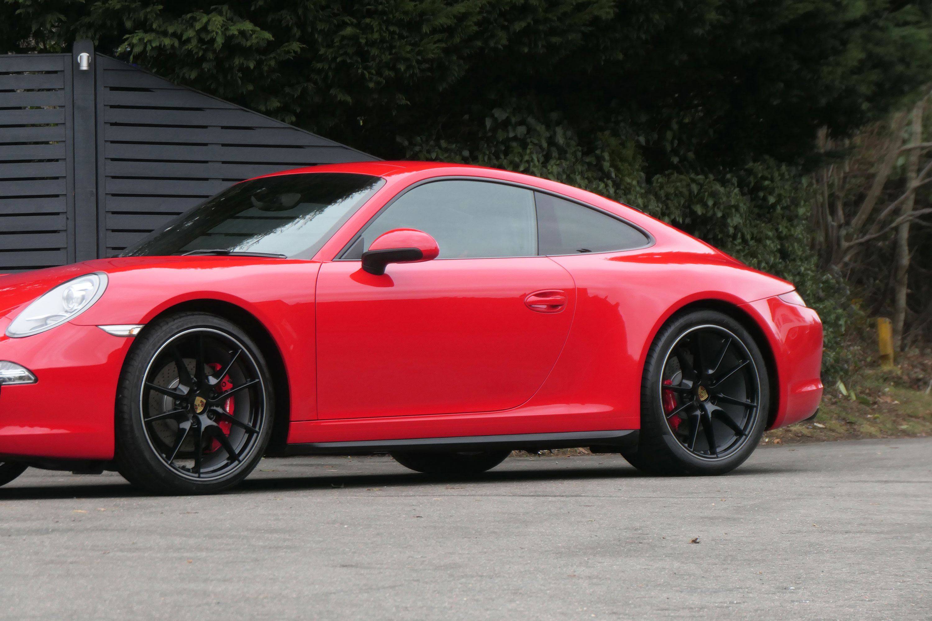 This 911 Carrera 4 S Coupe (991) has the 7-speed PDK gearbox and is presented in Guards Red with black leather sports seats.