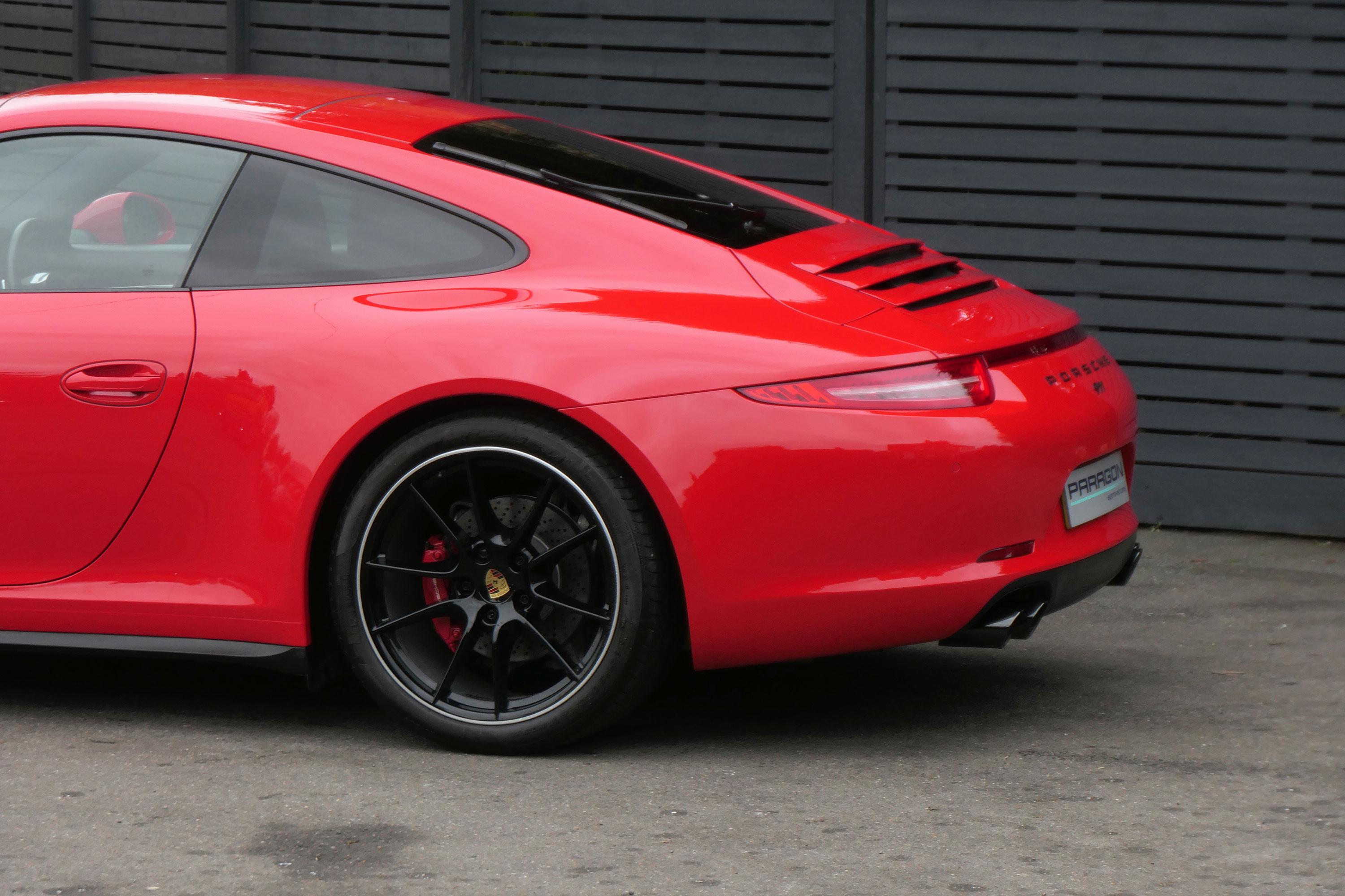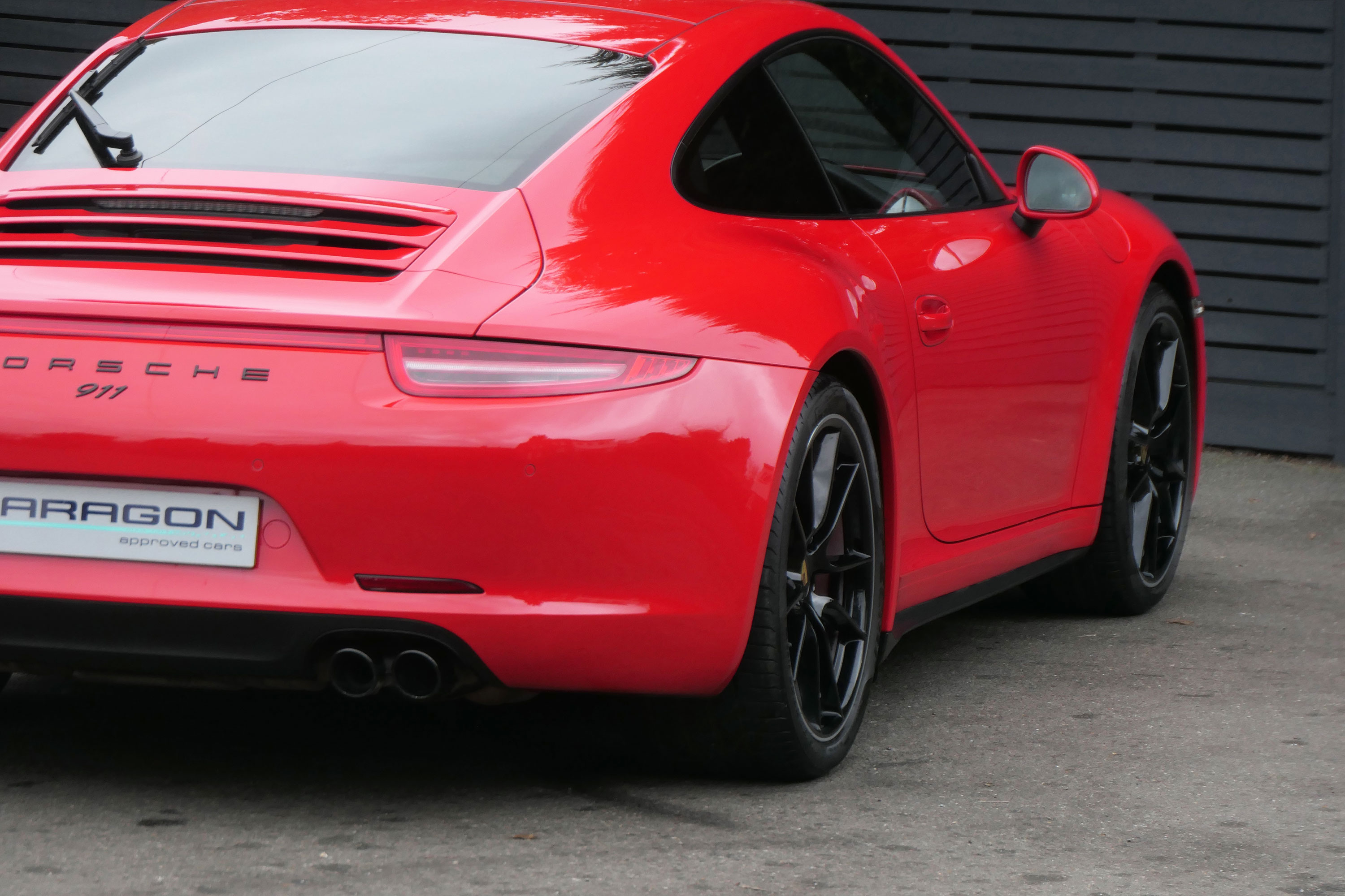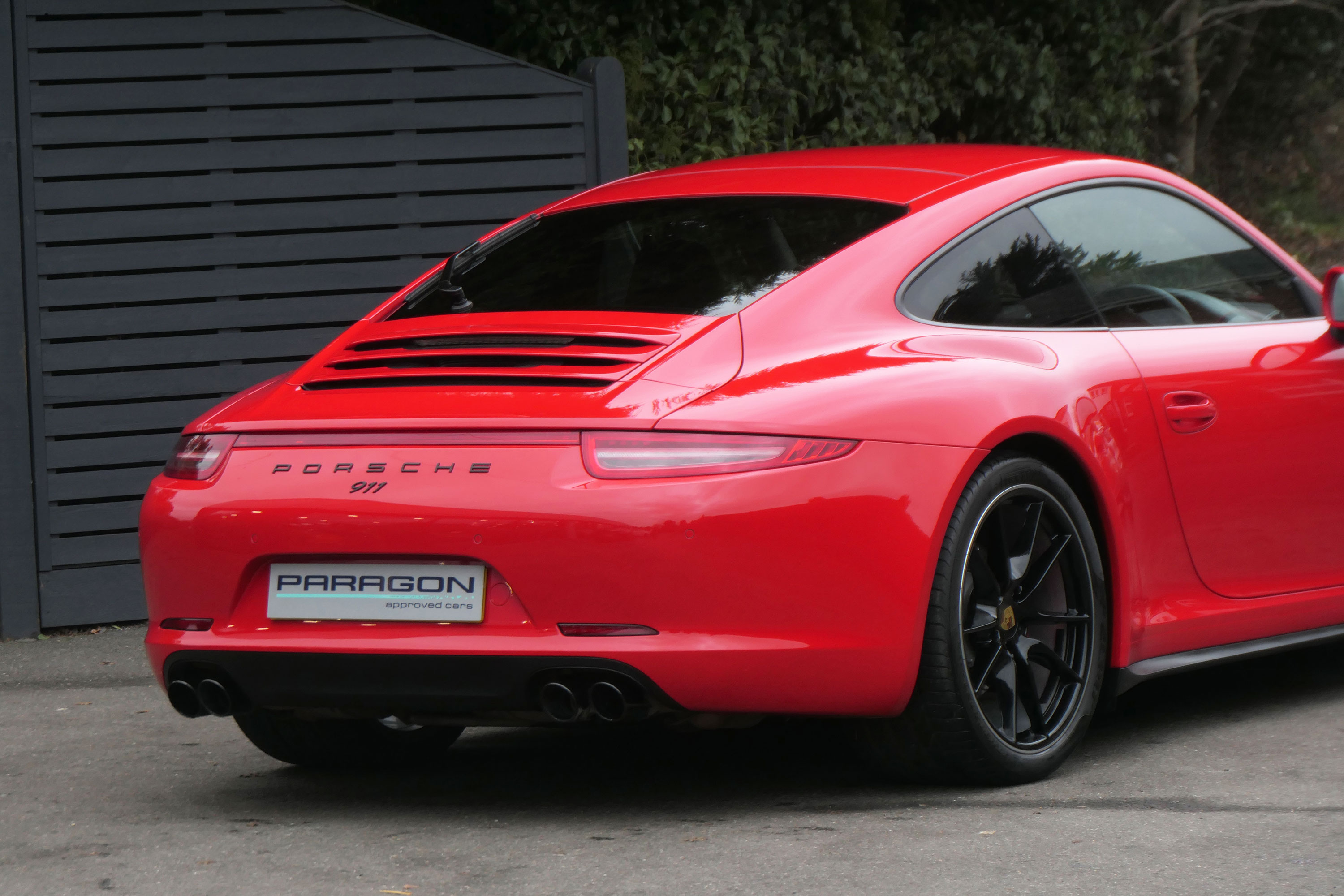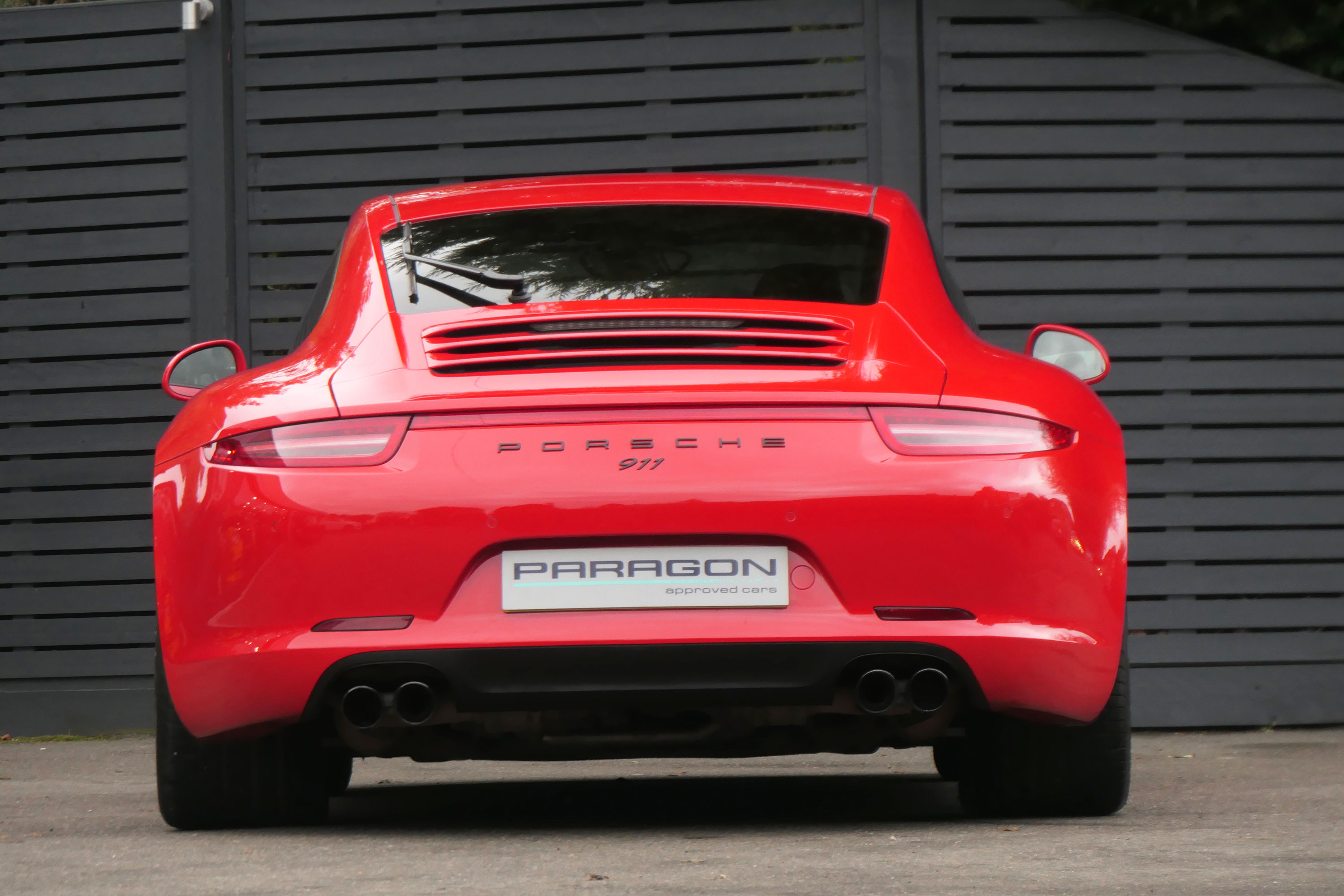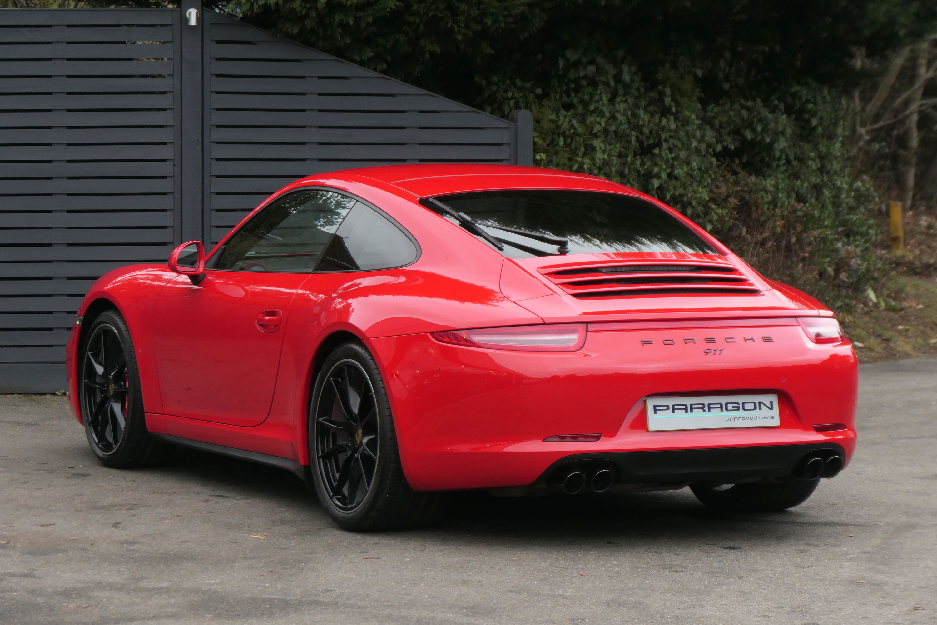 This 911 Carrera 4 S Coupe (991) has the 7-speed PDK gearbox and is presented in Guards Red with black leather sports seats.