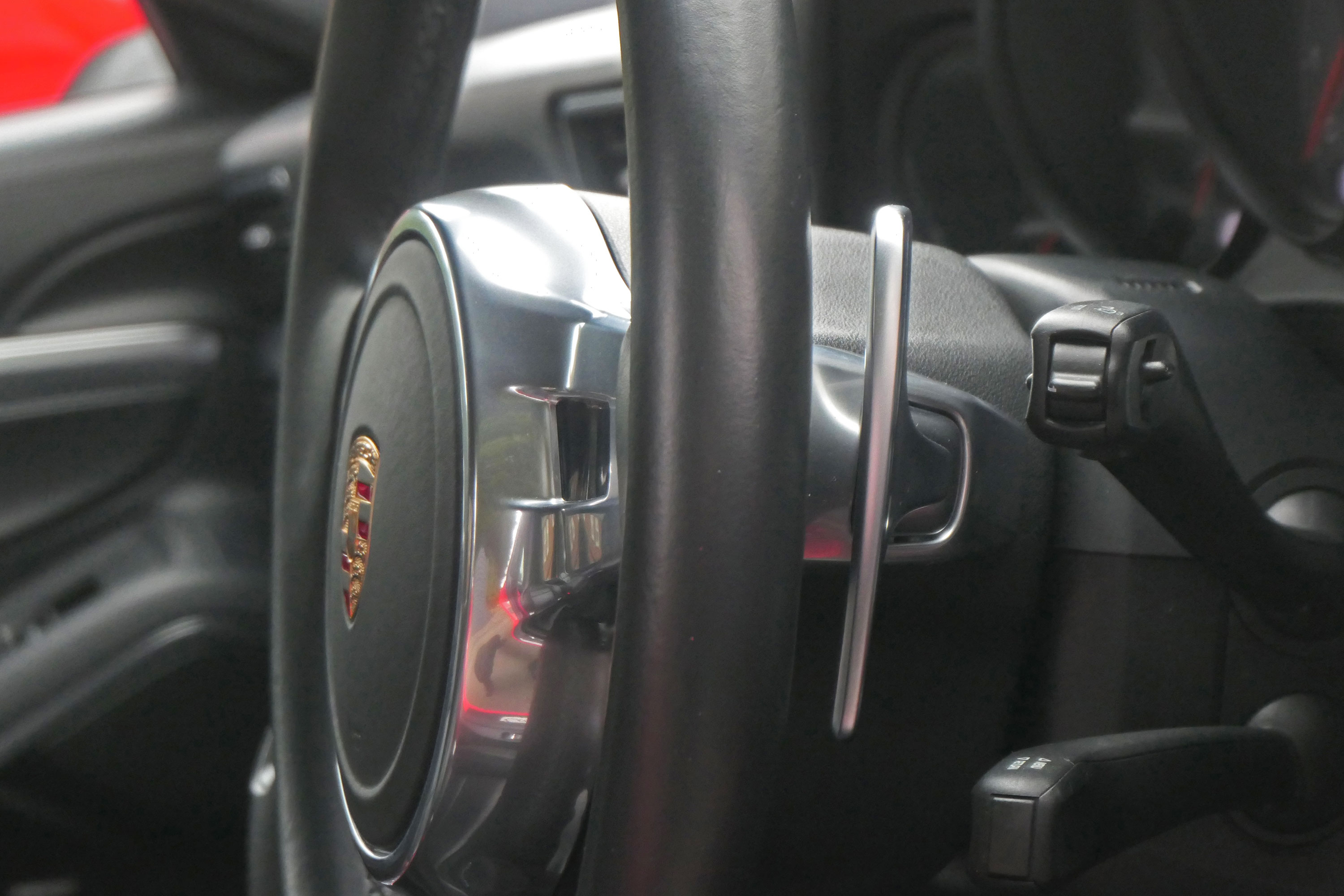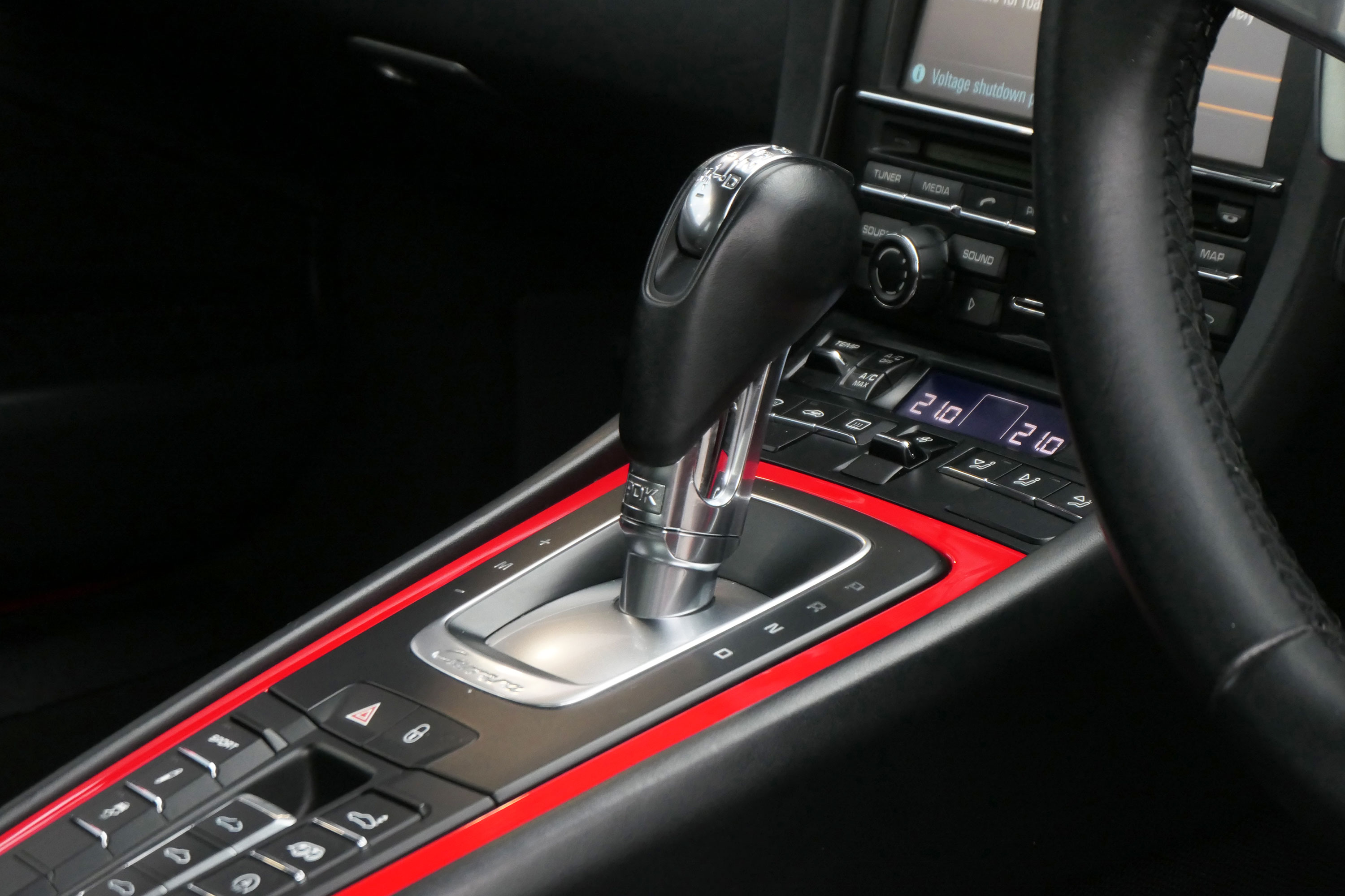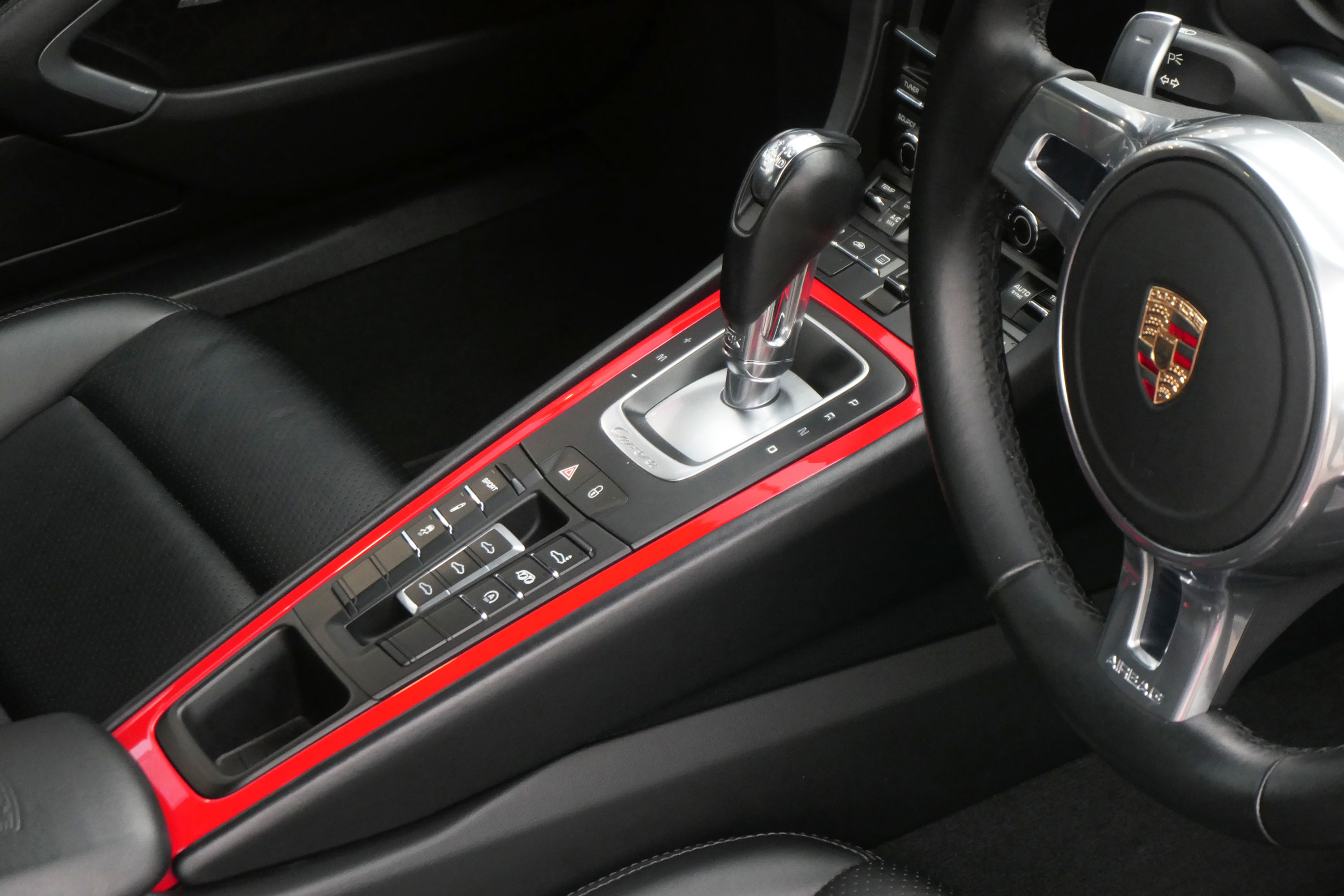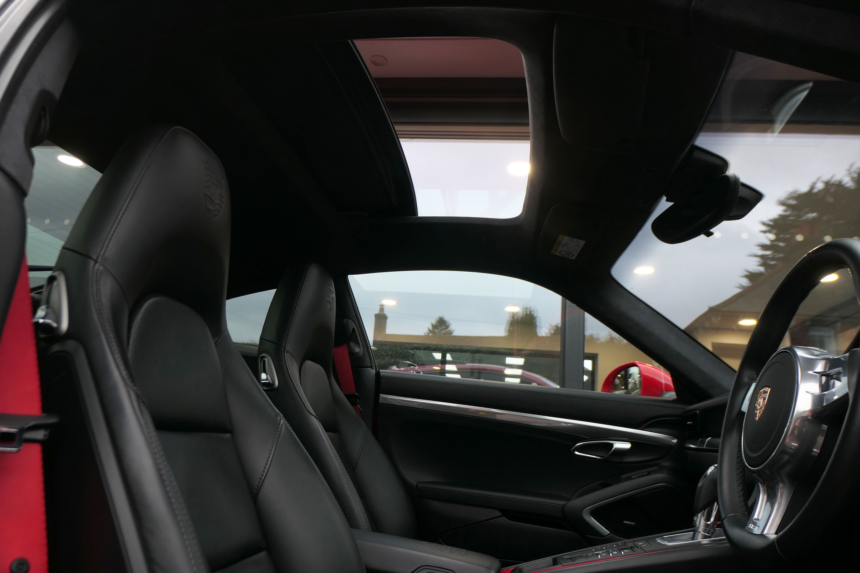 Factory-fitted options include the 7-speed PDK gearbox with Sport Design steering wheel, adaptive cruise control, electrically folding door mirrors, the wheels finished in black, a BOSE sound system, rear wiper, Guards Red seat belts, Guards Red centre console inserts, a DAB digital radio, Porsche embossed crested headrests, the Porsche logo embossed into the centre armrest, front & rear parking sensors, a switchable sports exhaust and sports seats.