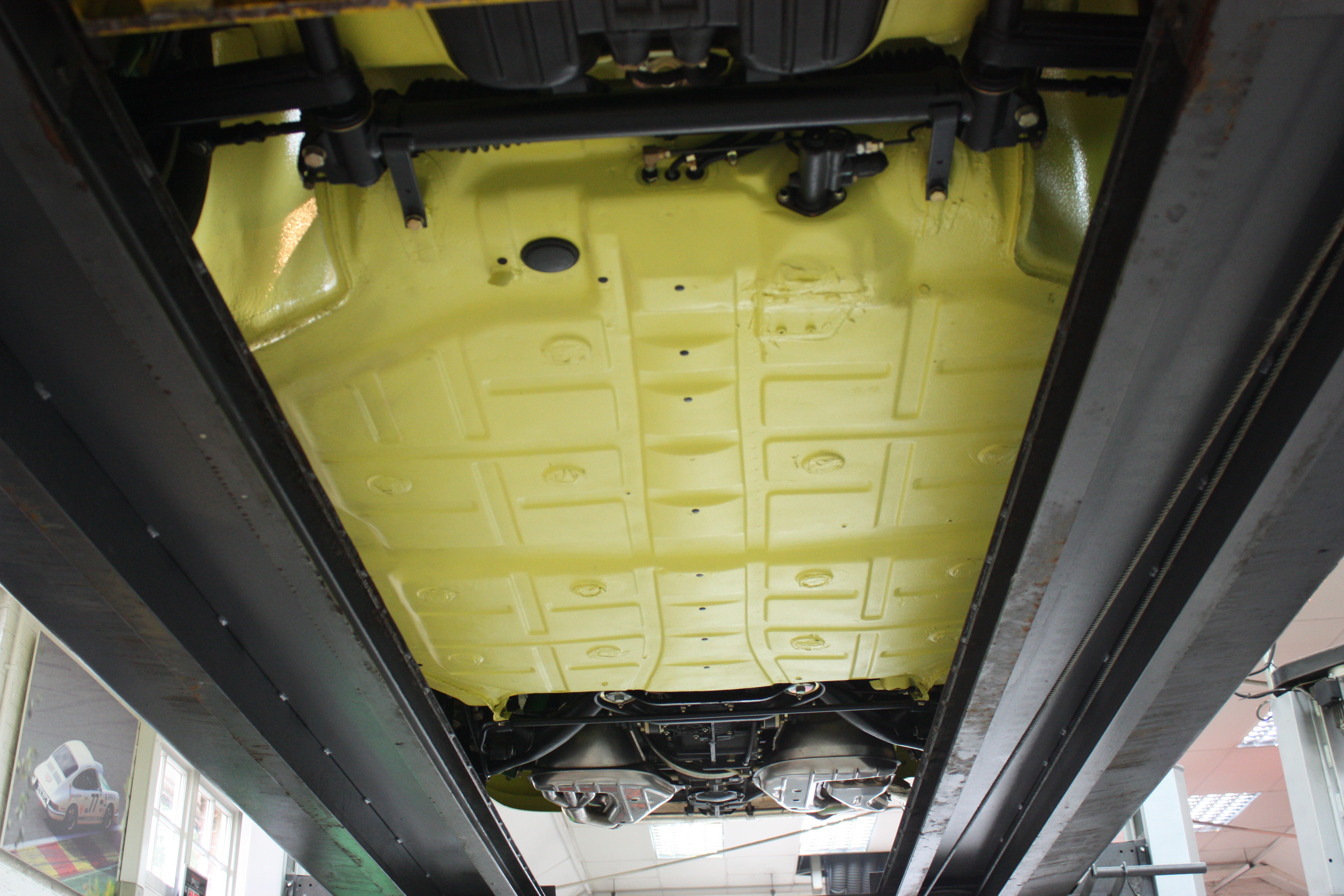 This Light Yellow (6262) example has been subject to a just completed Concours restoration and has the original extremely desirable Black leatherette/corduroy sport seats with headrests.