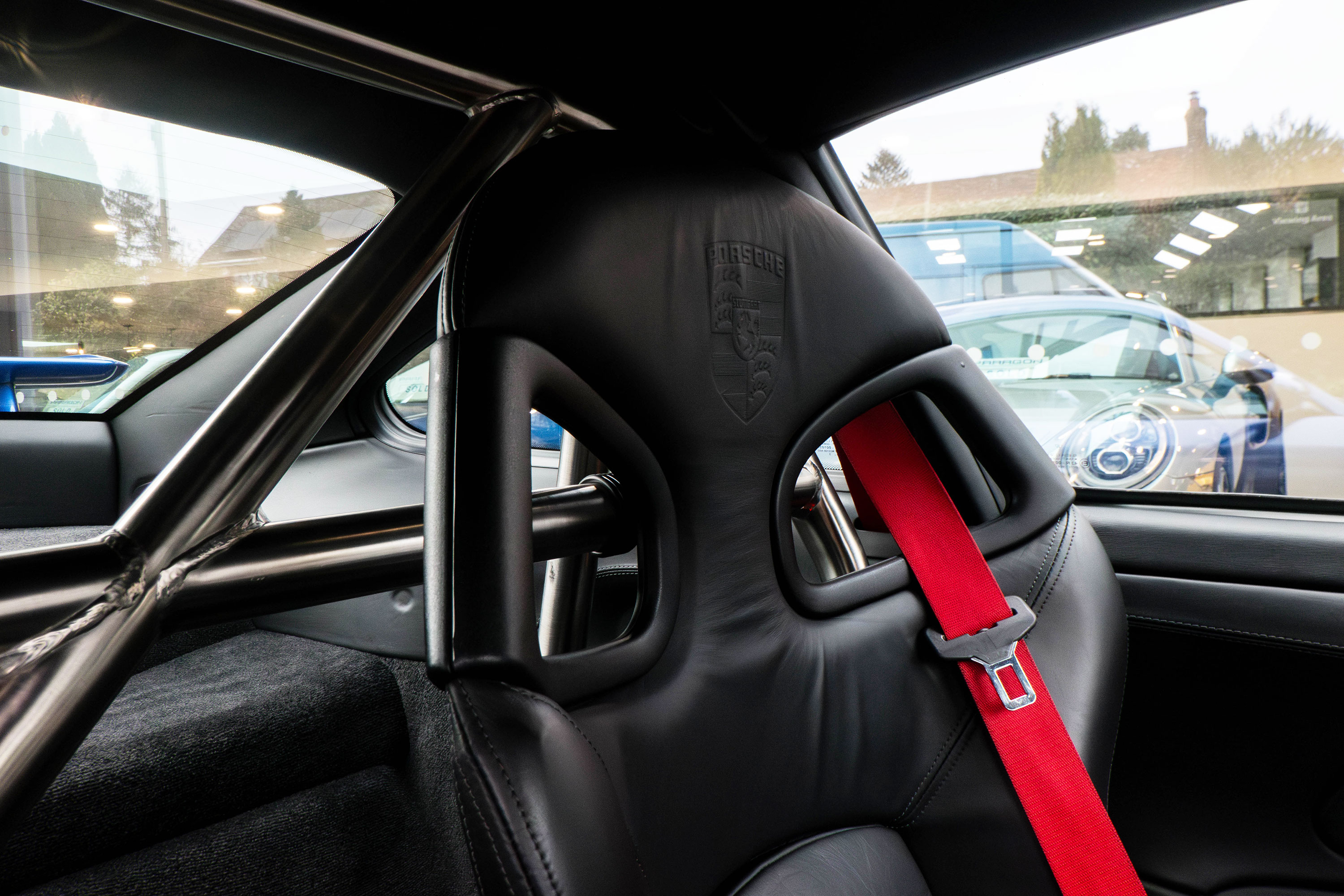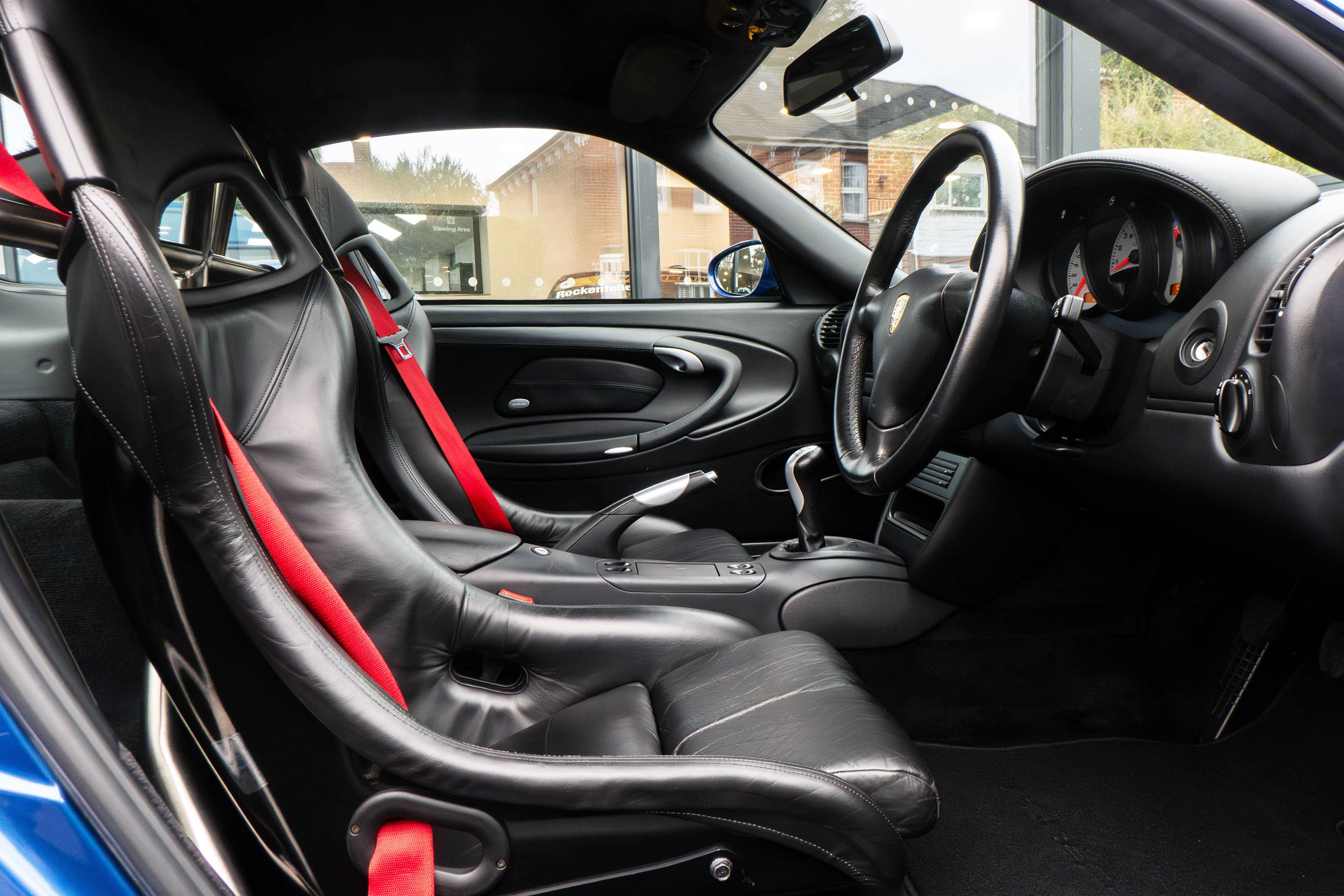 Factory-fitted options include air conditioning, black leather bucket seats with Porsche embossed headrests, silver dials, Guards Red seat belts, Bi-Xenon headlights and a Tequipment stainless steel rear roll cage.