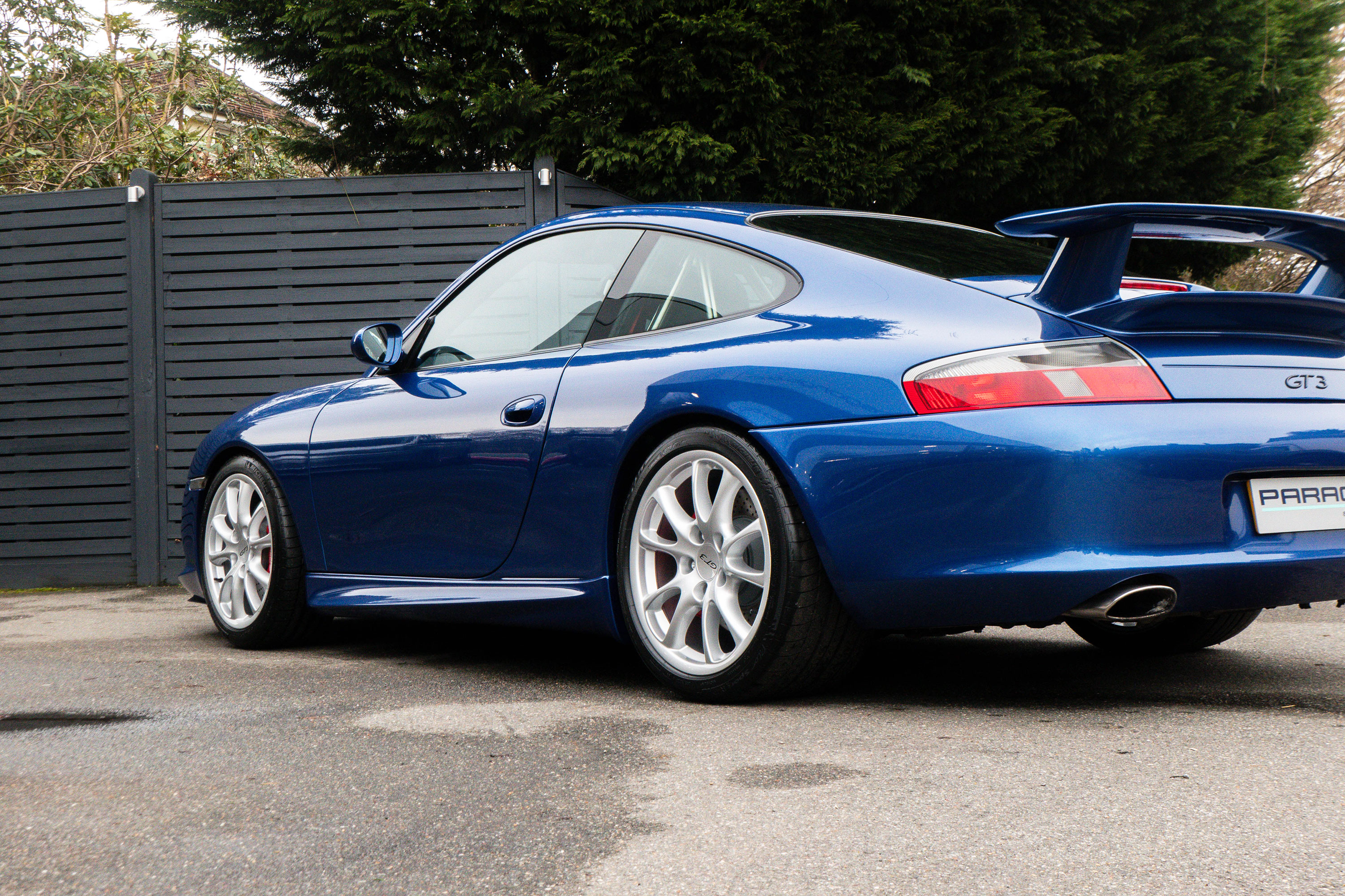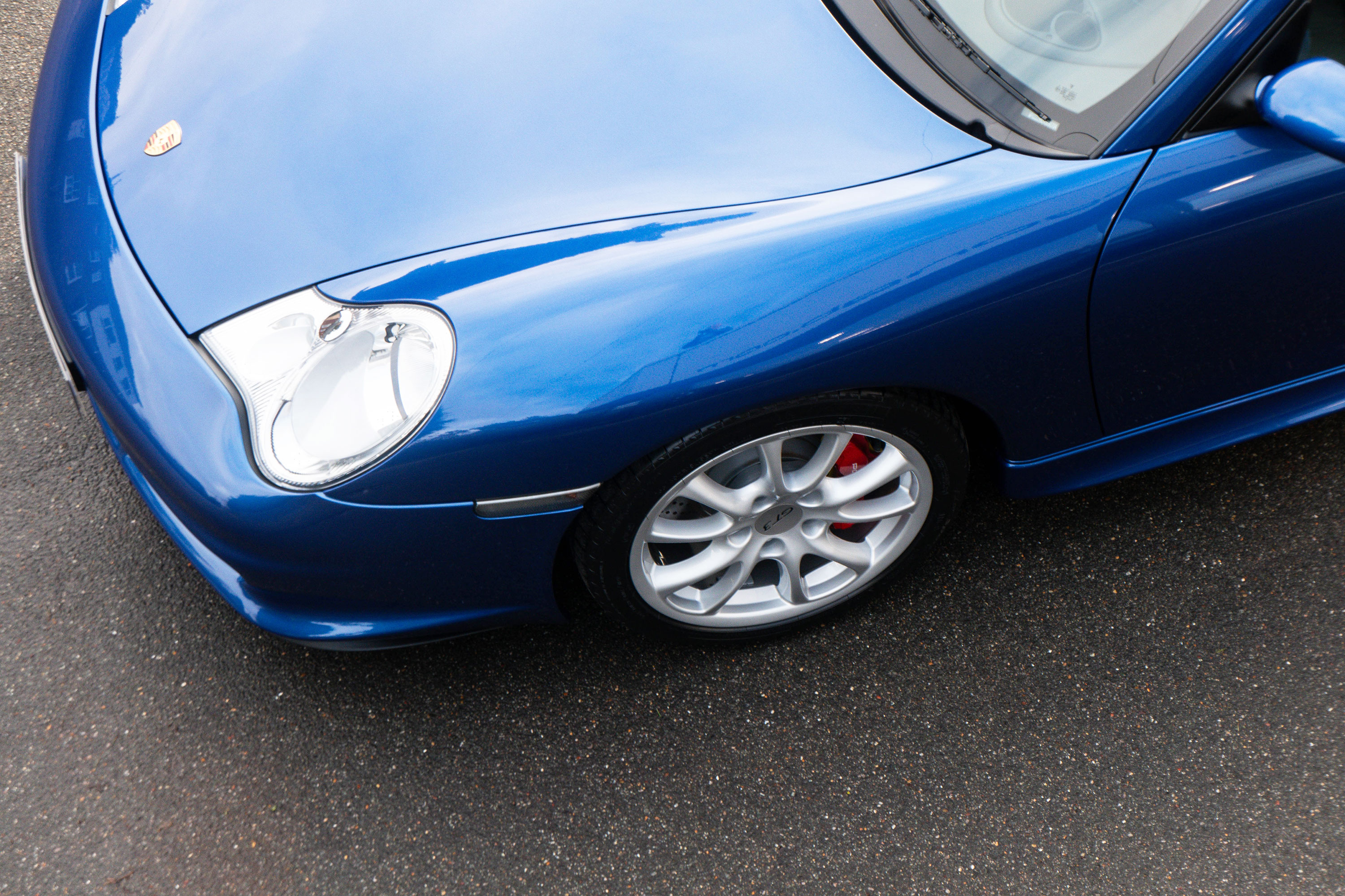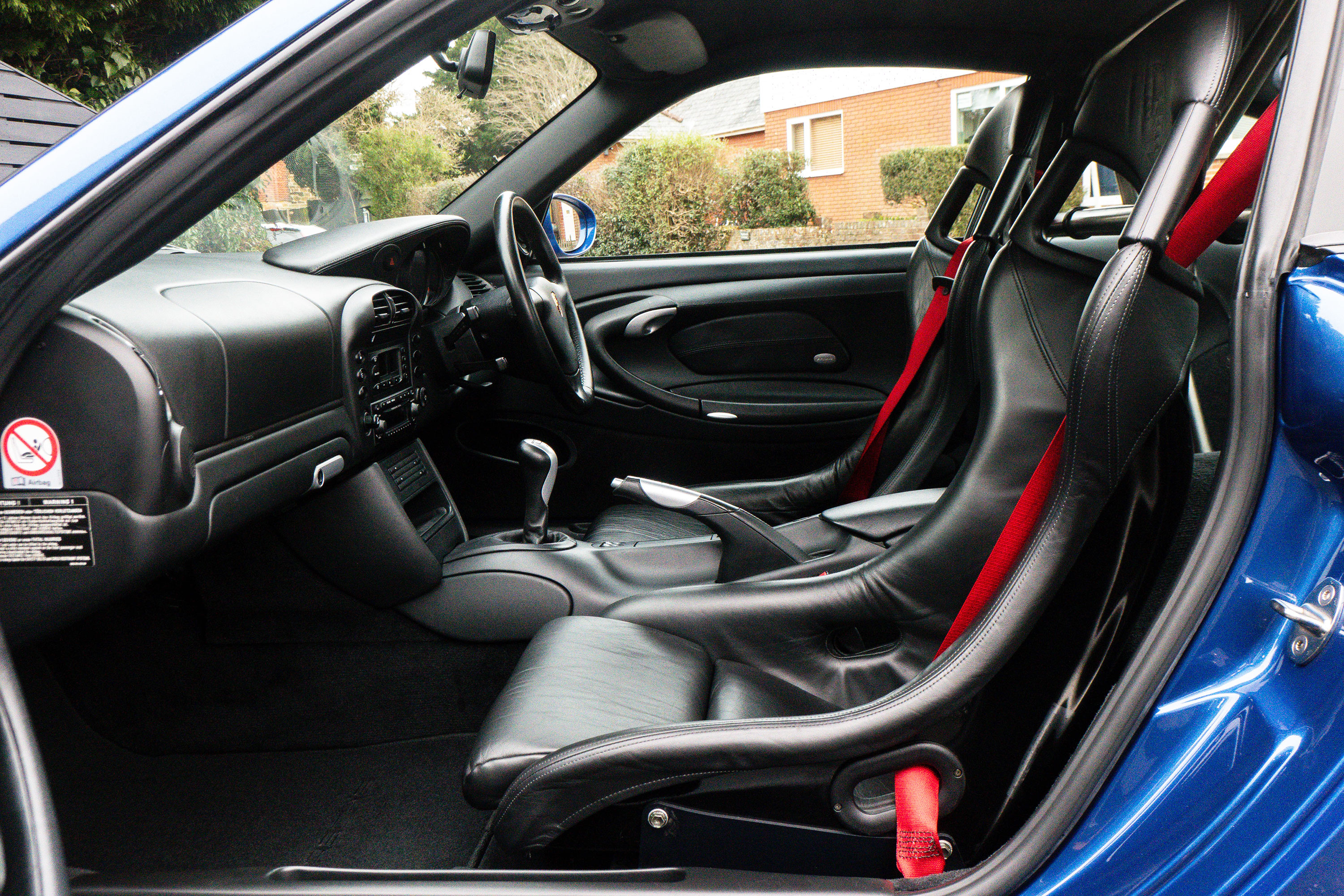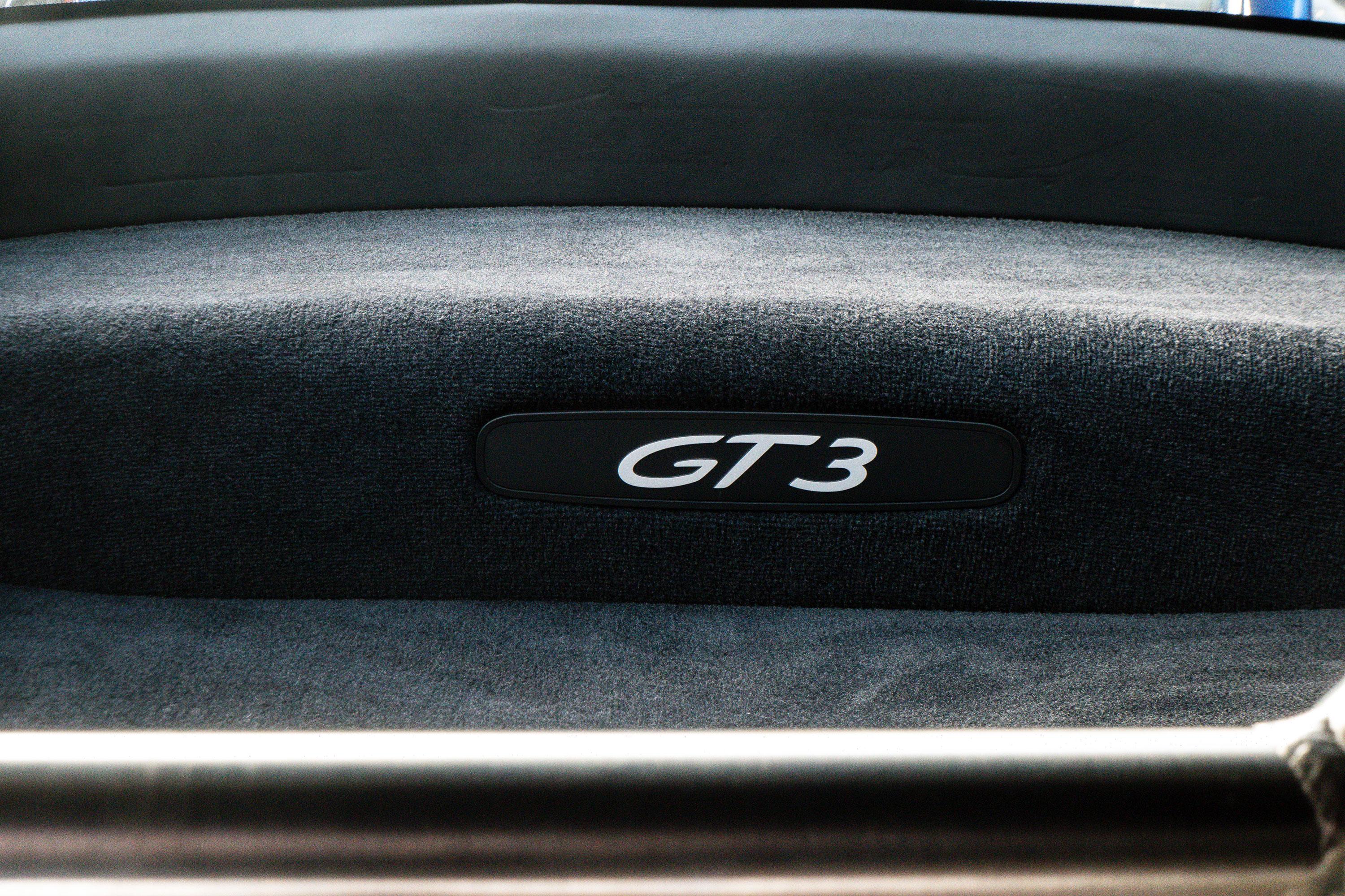 This 911 GT3 (996.2) has the 6-speed manual gearbox and is presented in Cobalt Blue with black leather bucket seats.