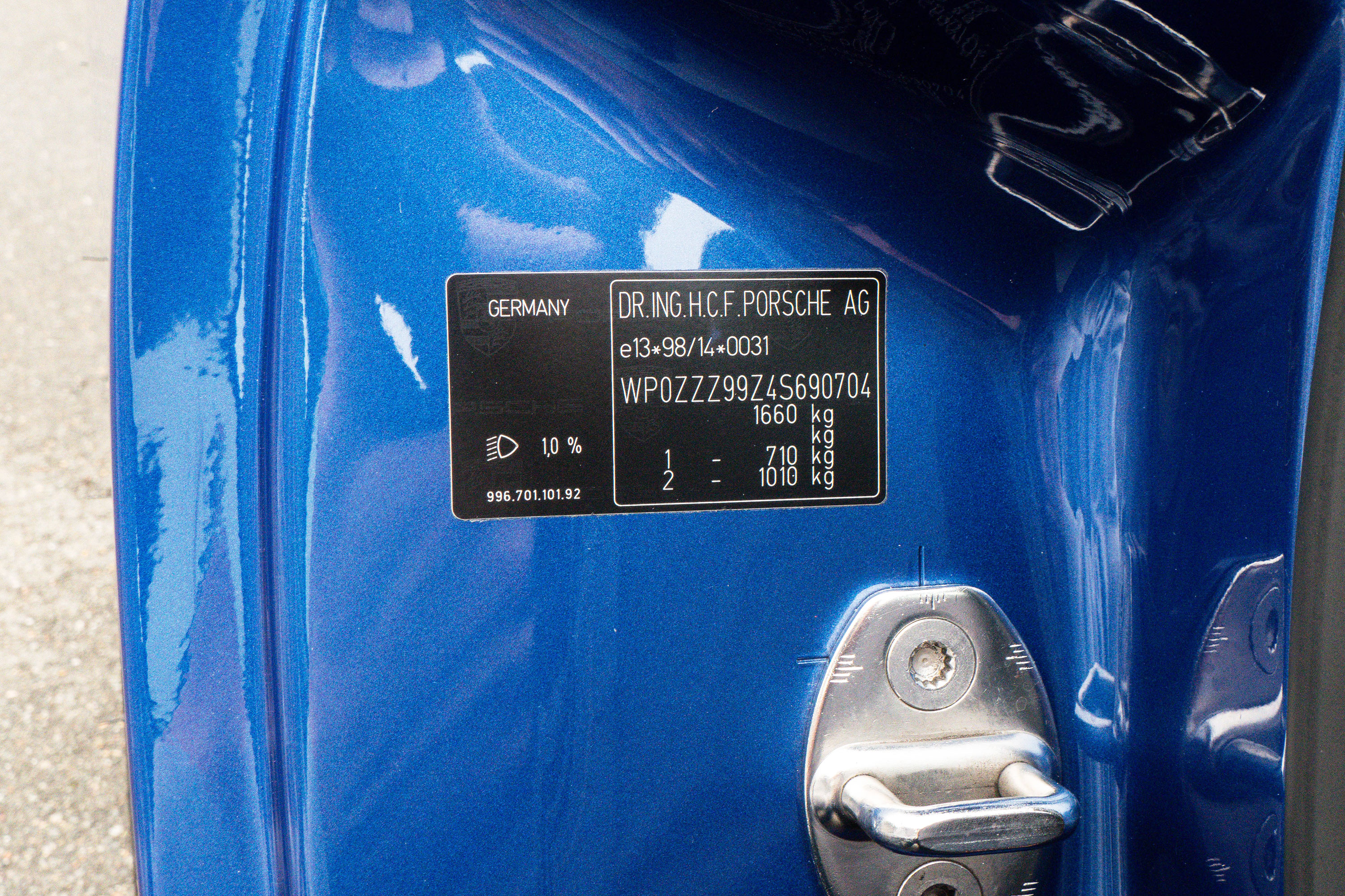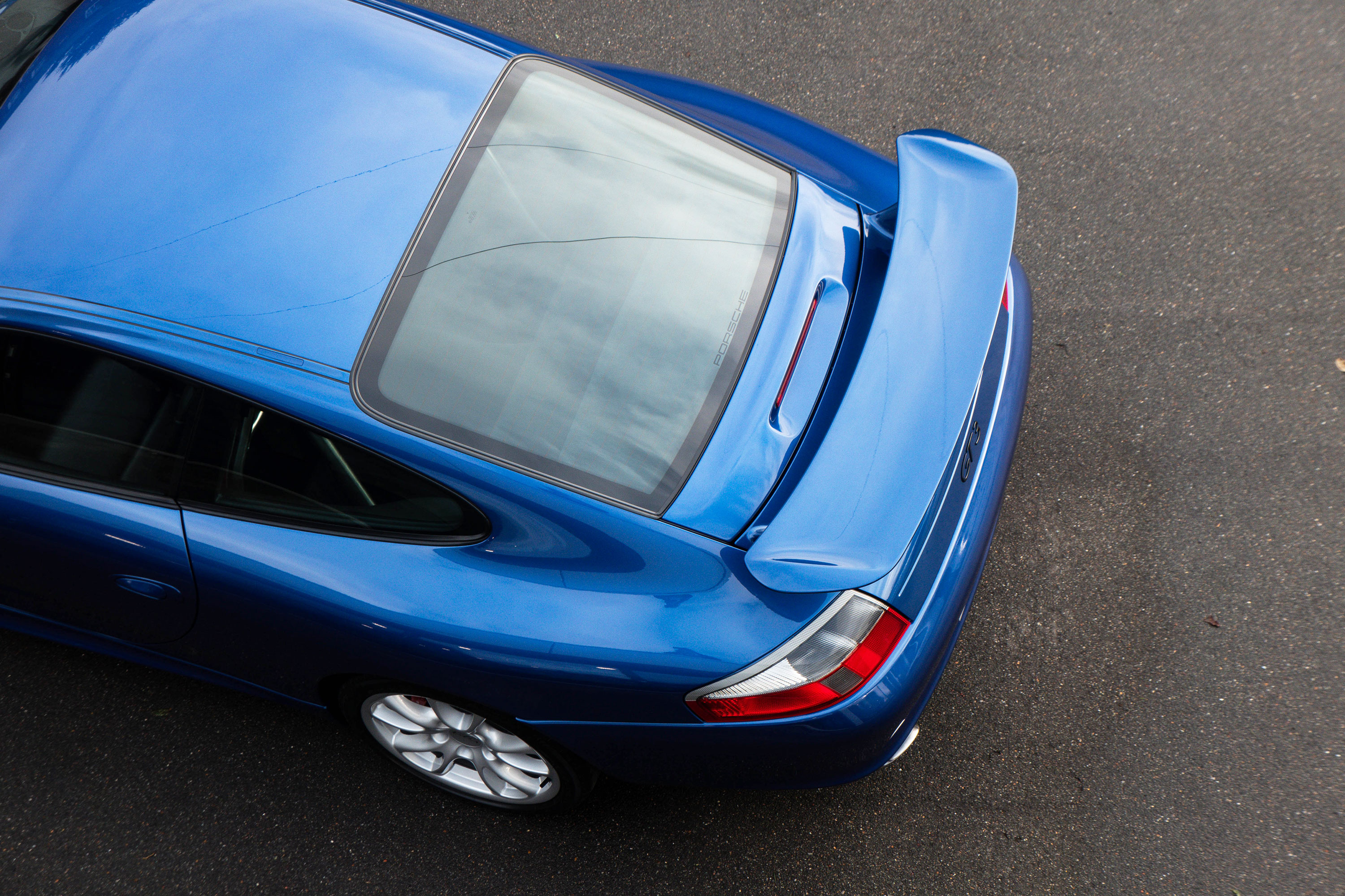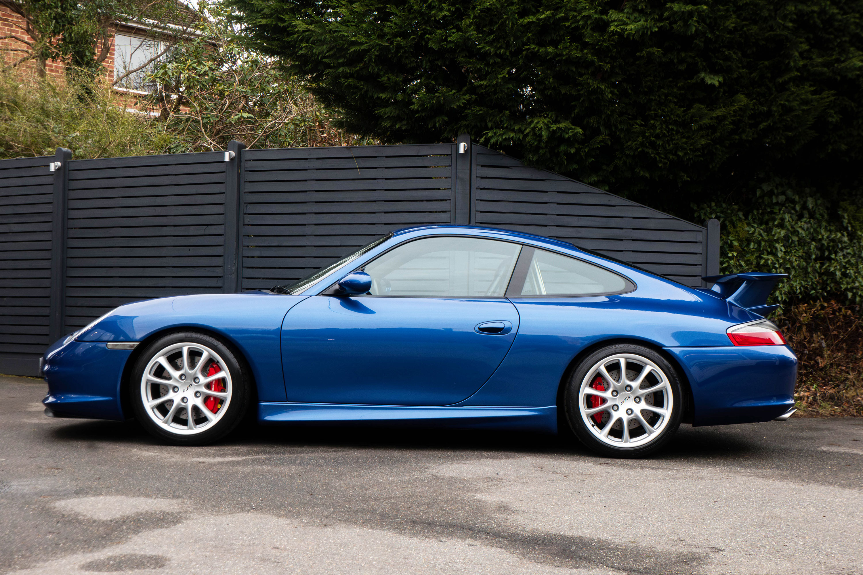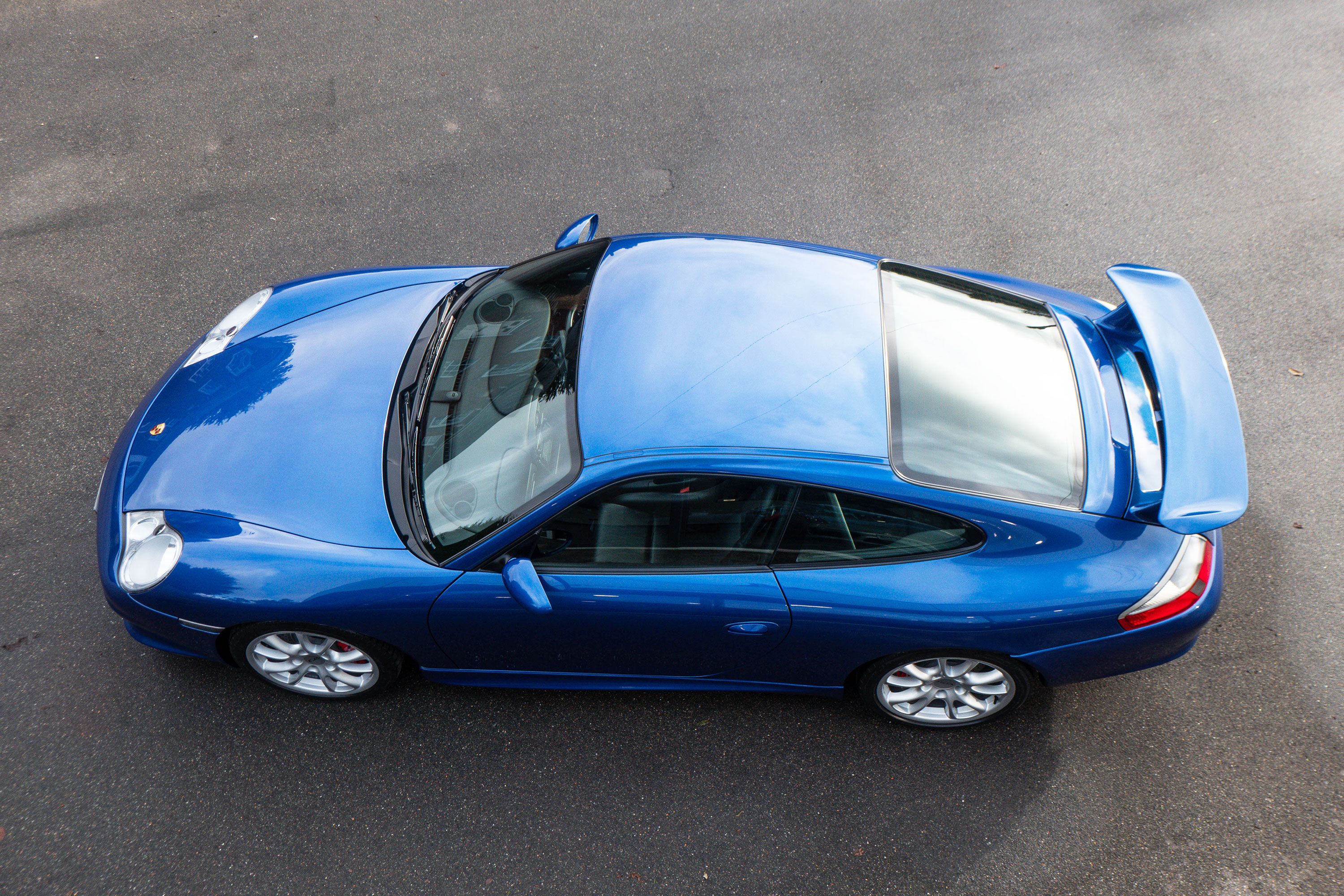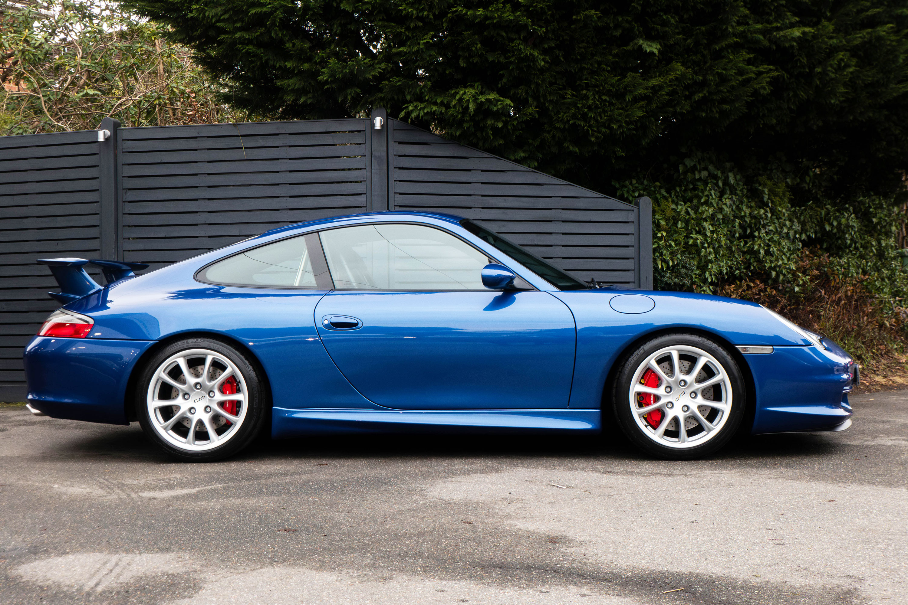 This 911 GT3 (996.2) has the 6-speed manual gearbox and is presented in Cobalt Blue with black leather bucket seats.
