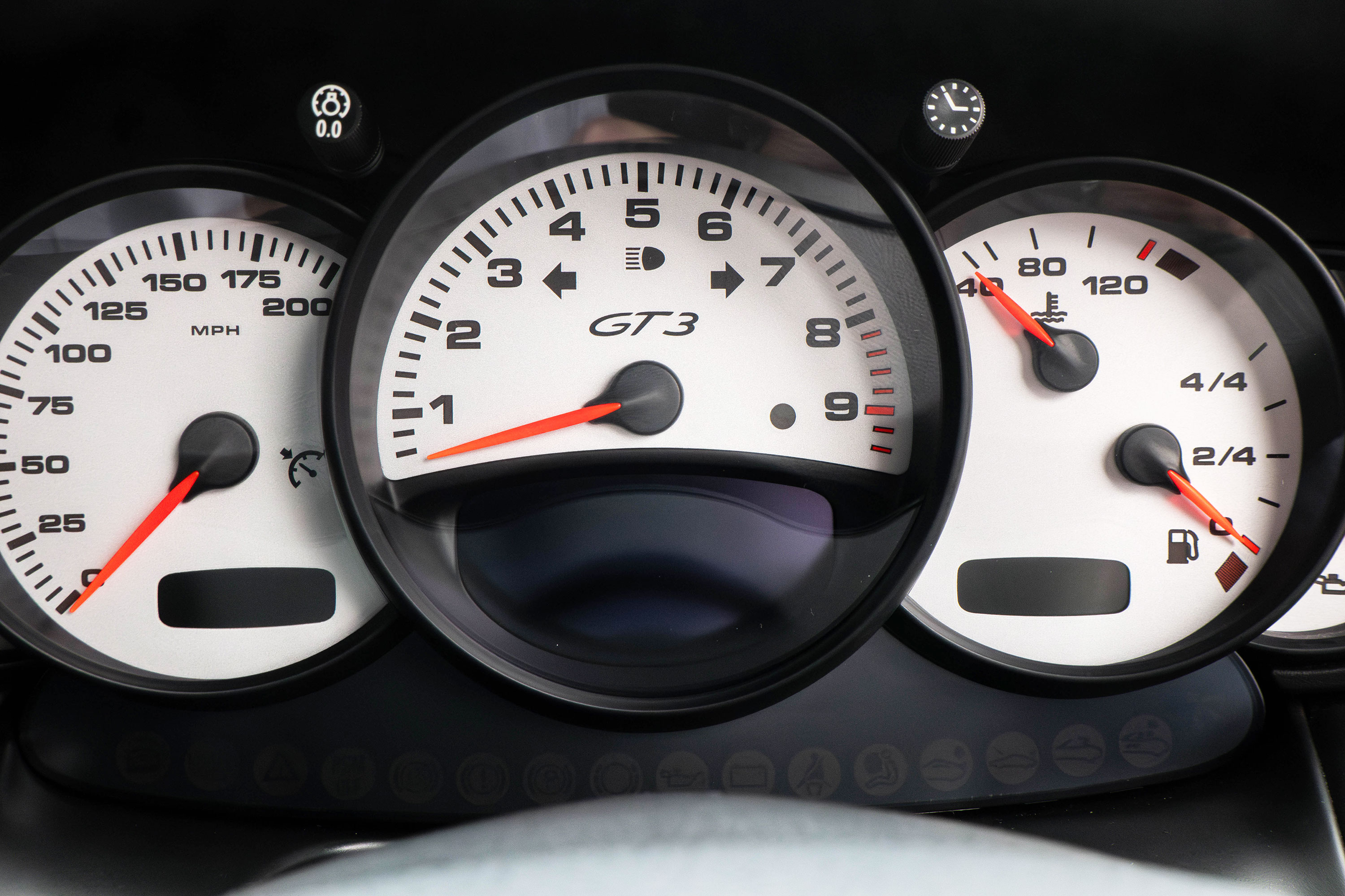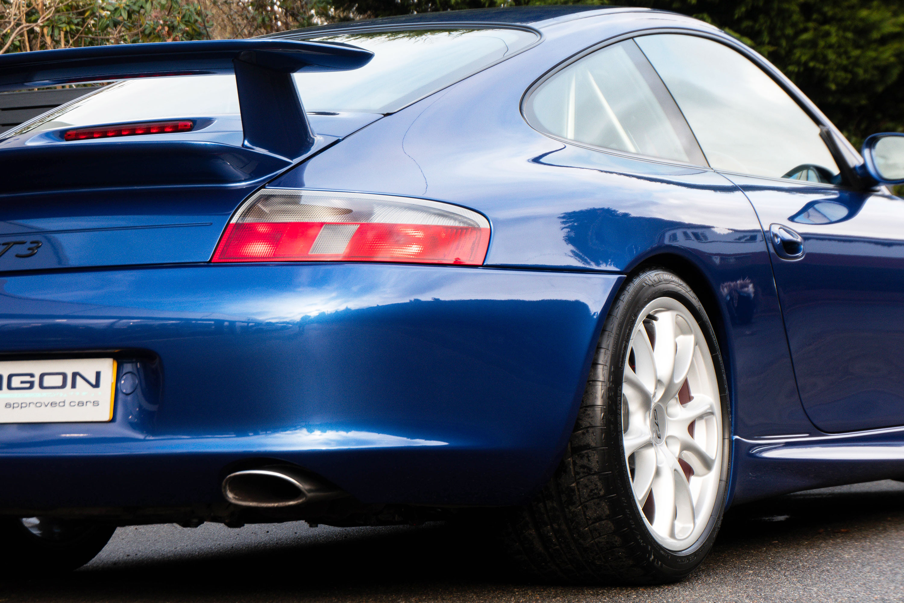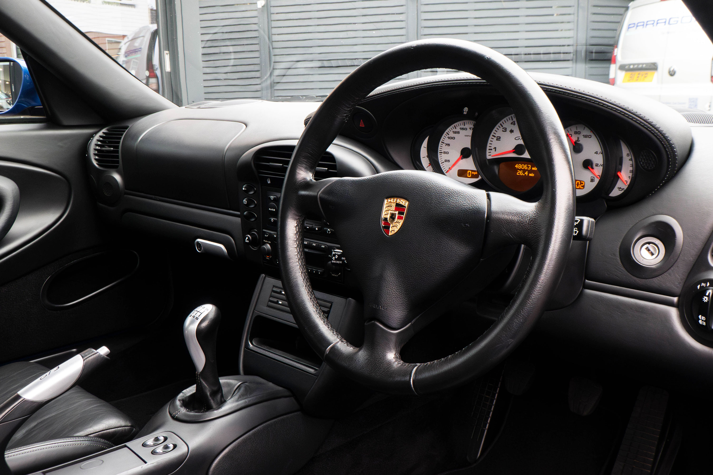 The 3.6 litre flat six Mezger engine develops 360 bhp and standard features include 18" GT3 wheels, electric windows & mirrors, an onboard computer, a centre console with CD storage and a Porsche CDR-23 CD player.