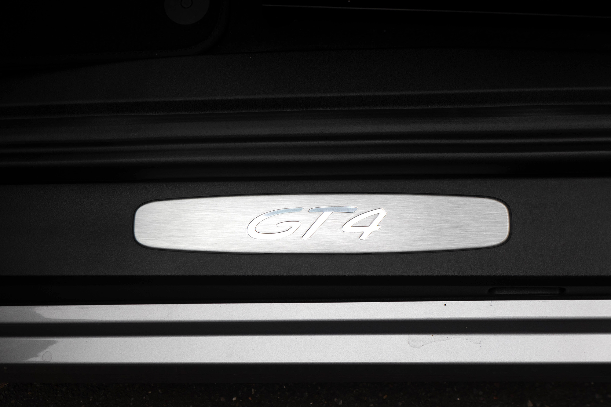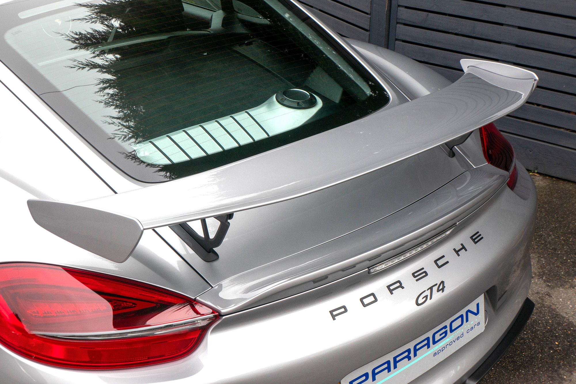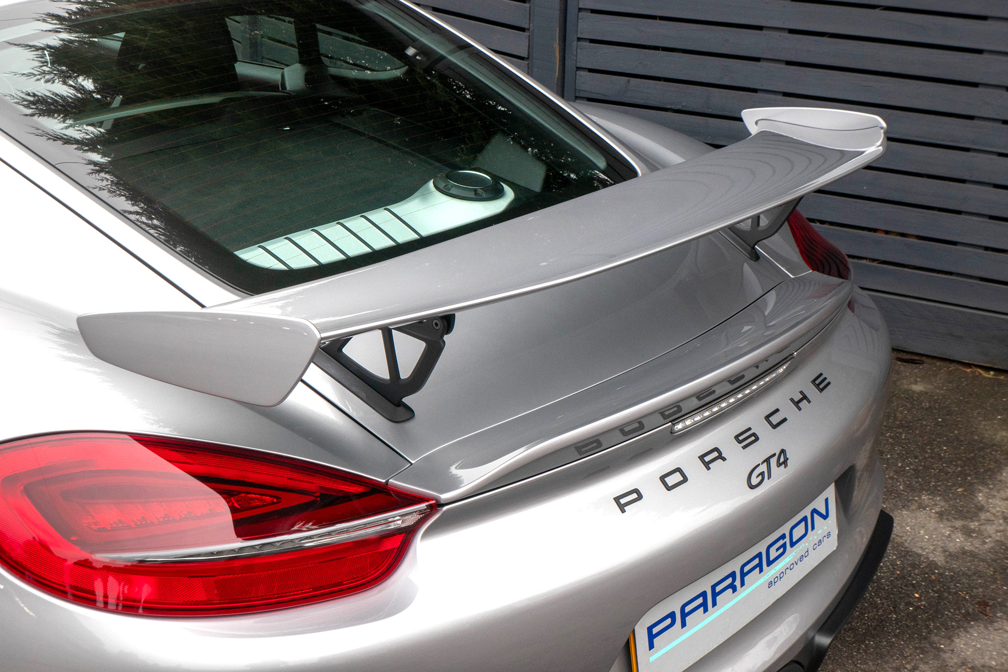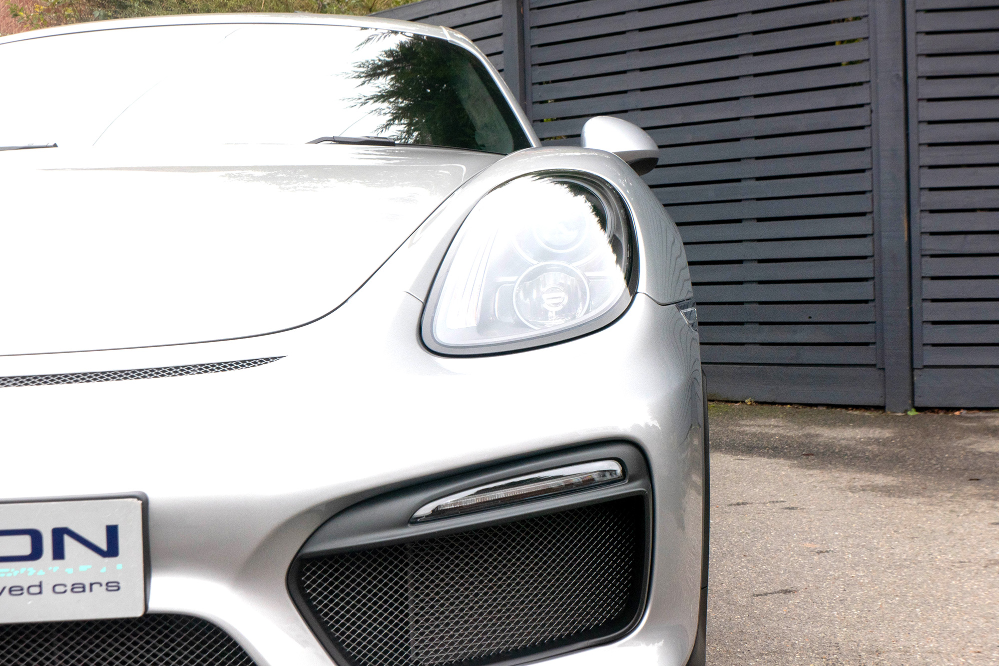 This Cayman GT4 (981) has the 6-speed manual gearbox and is presented in GT Silver with black half leather 918 bucket seats.