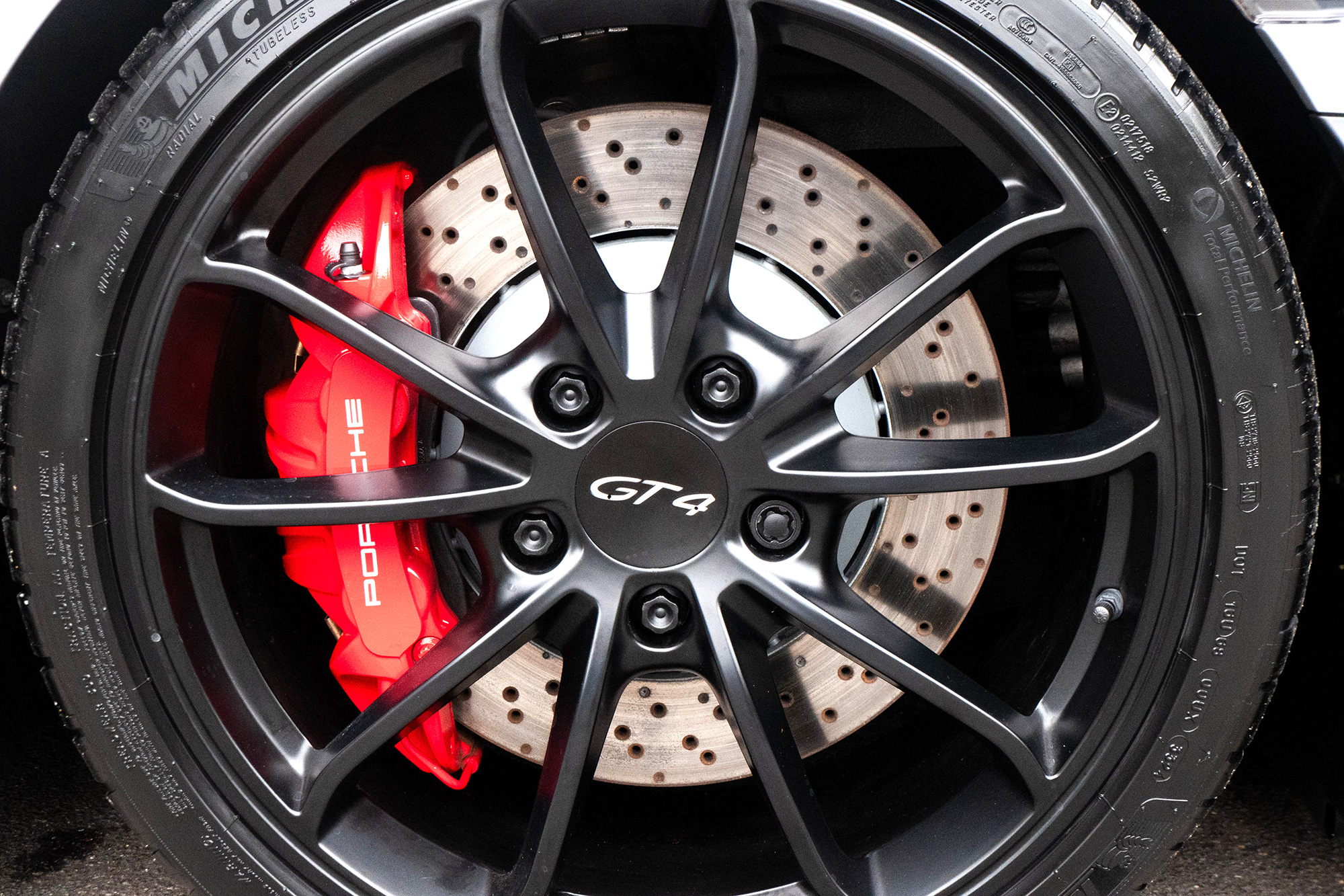 Factory-fitted options include 918 bucket seats, the Carbon Interior Pack, the wheels in Satin Black, Bluetooth phone, Guards Red seat belts and the Extended Leather Pack.