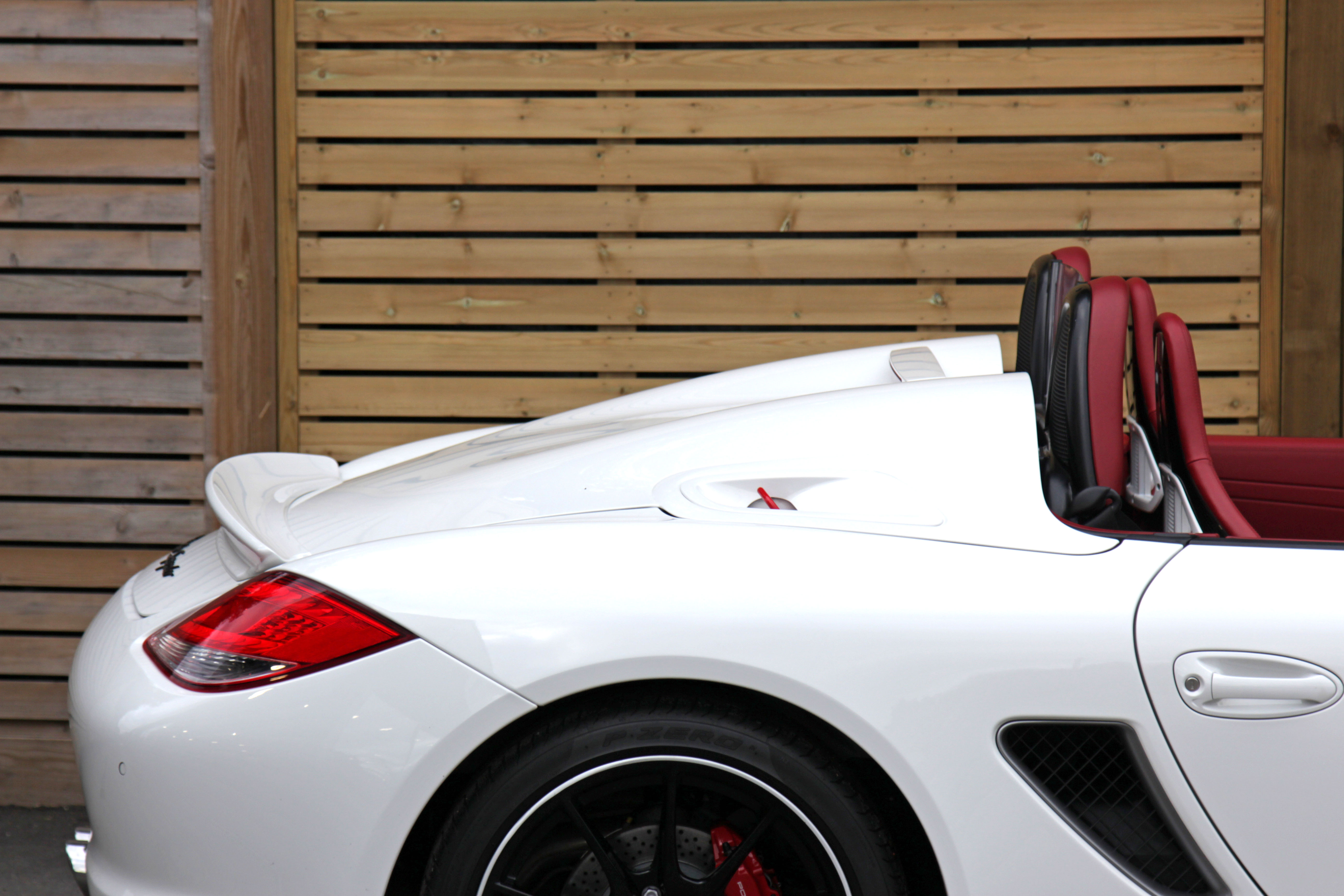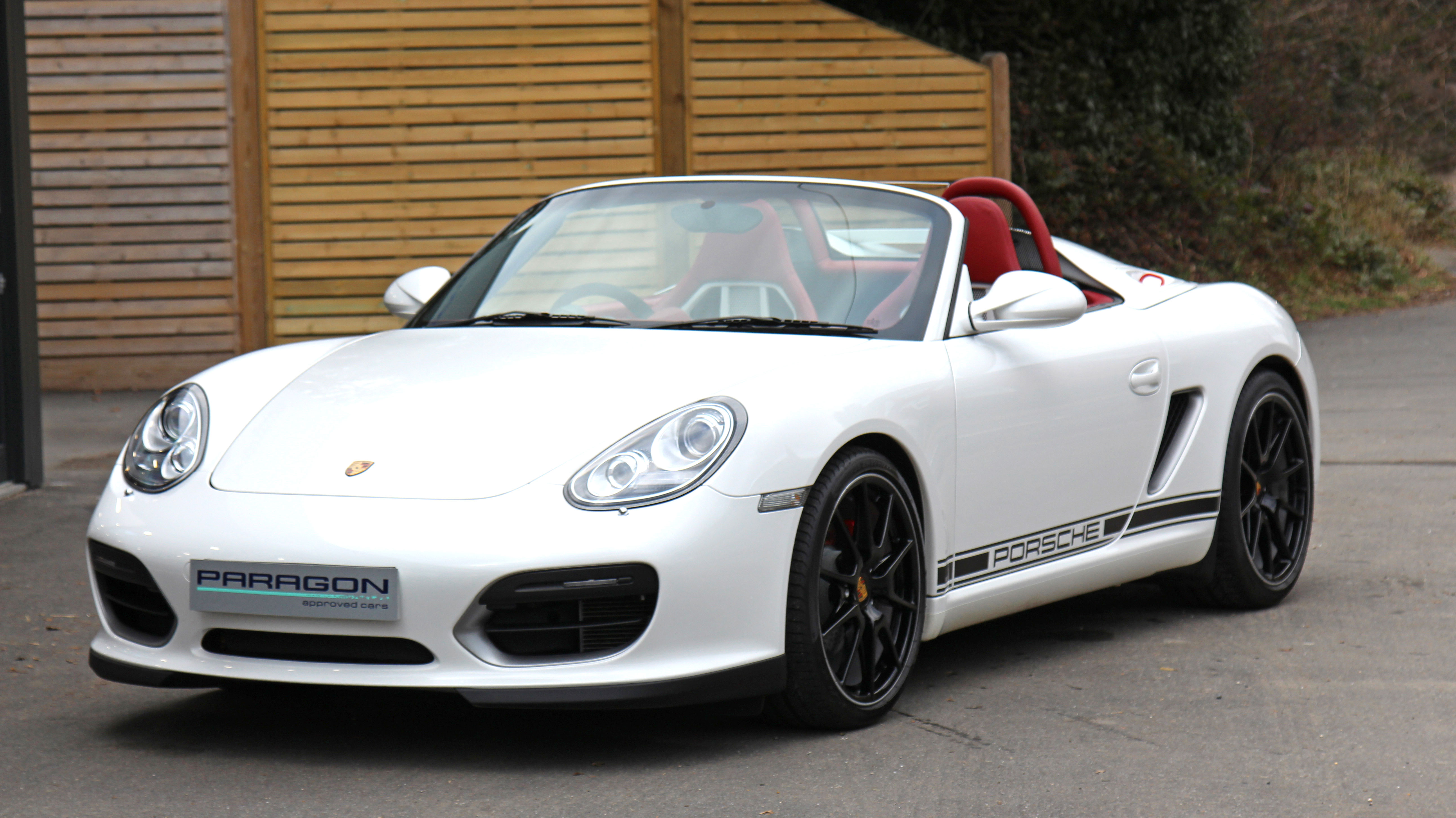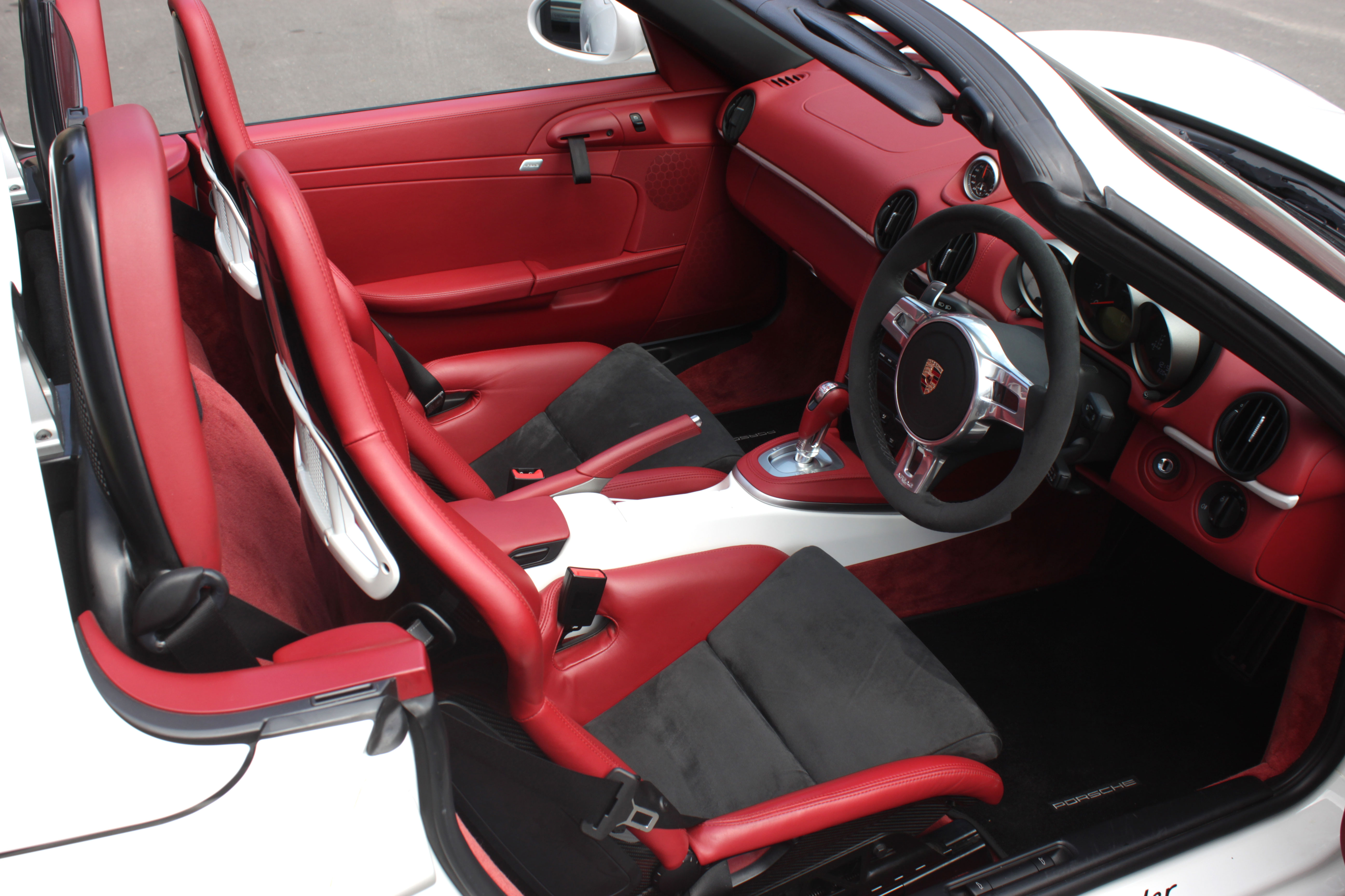 This Porsche Boxster Spyder (987 GEN ll) has the 7-speed PDK gearbox and is presented in Carrara White with Natural Red half leather bucket seats with Alcantara inserts.