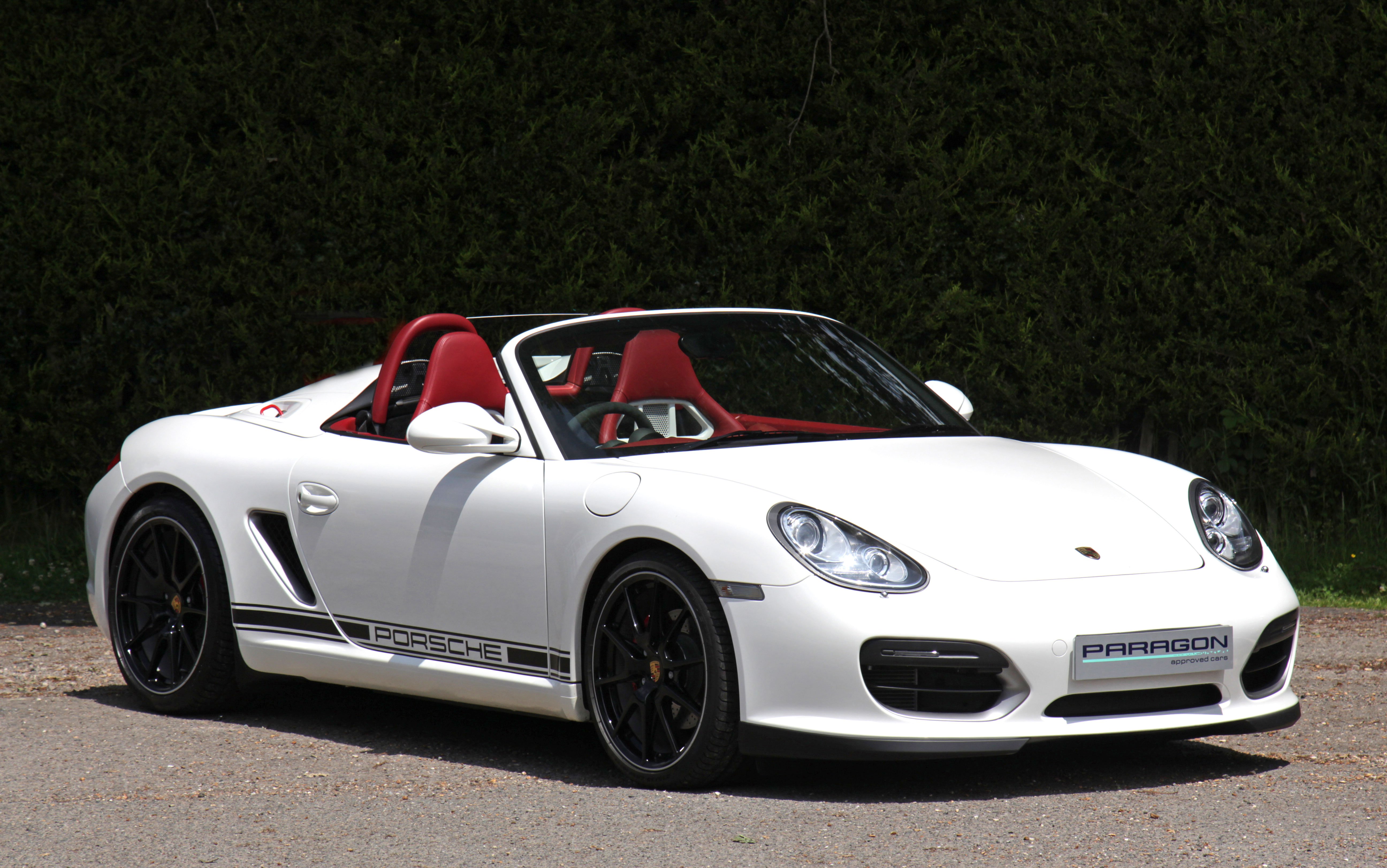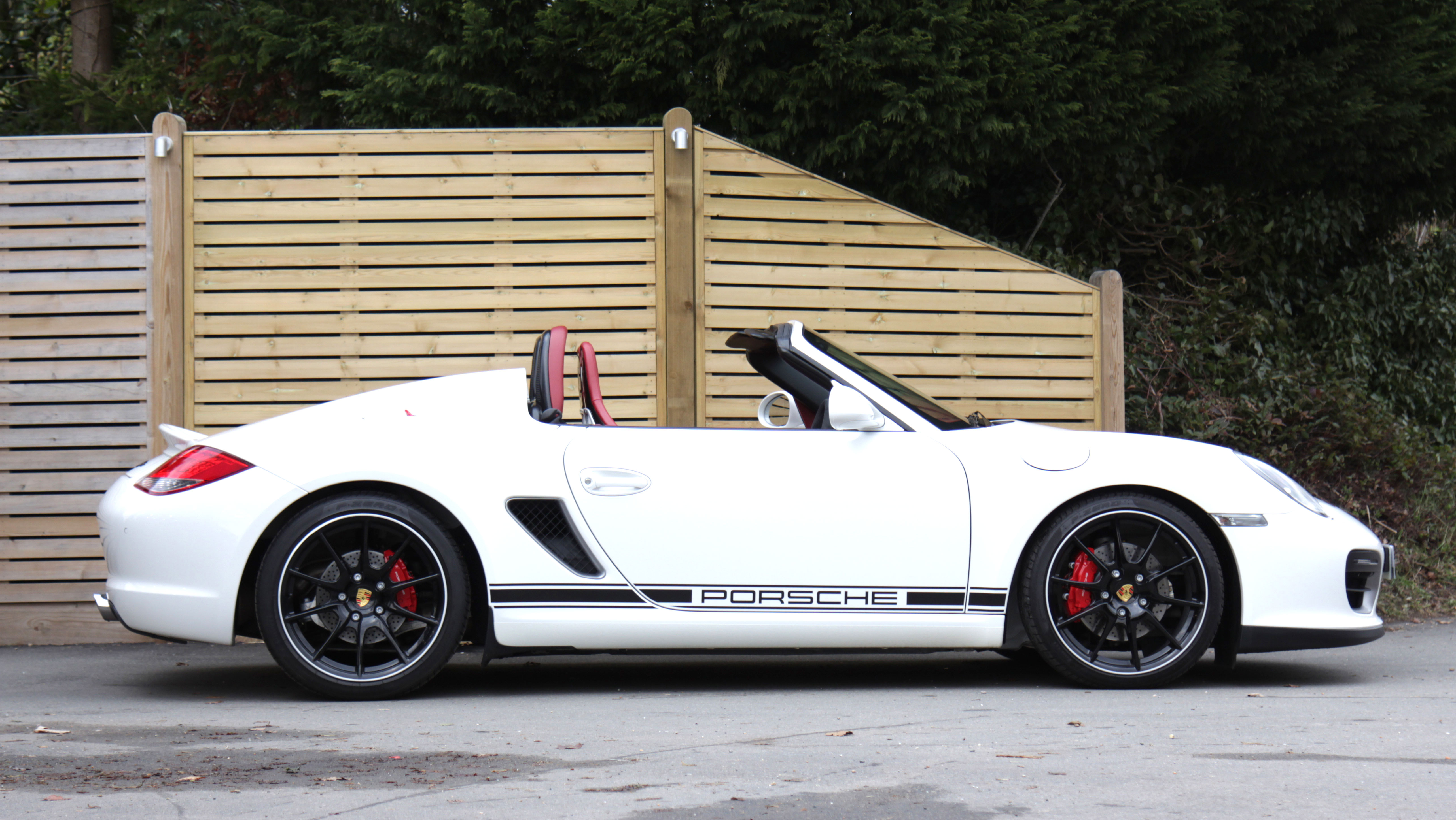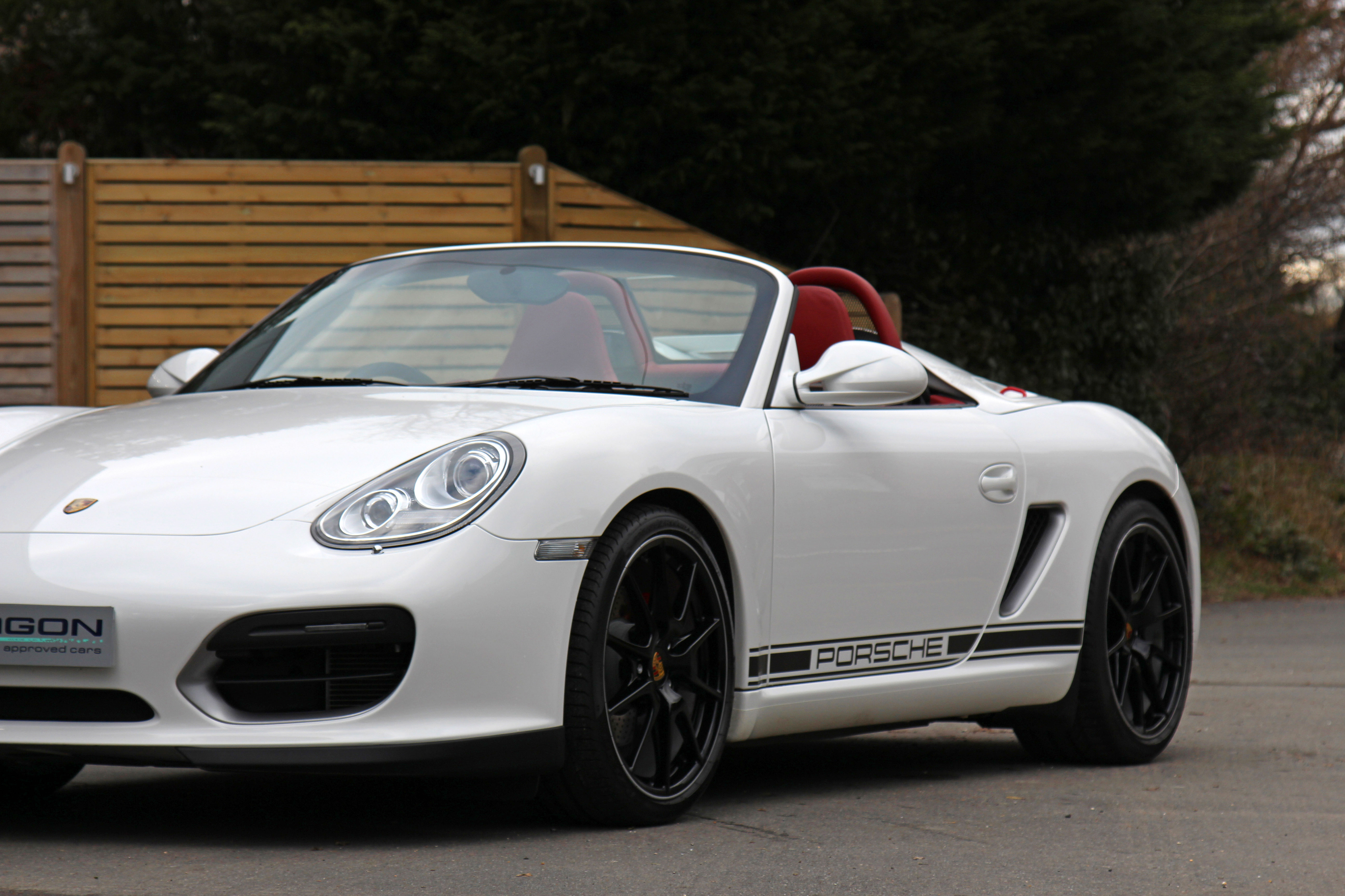 This Porsche Boxster Spyder (987 GEN ll) has the 7-speed PDK gearbox and is presented in Carrara White with Natural Red half leather bucket seats with Alcantara inserts.