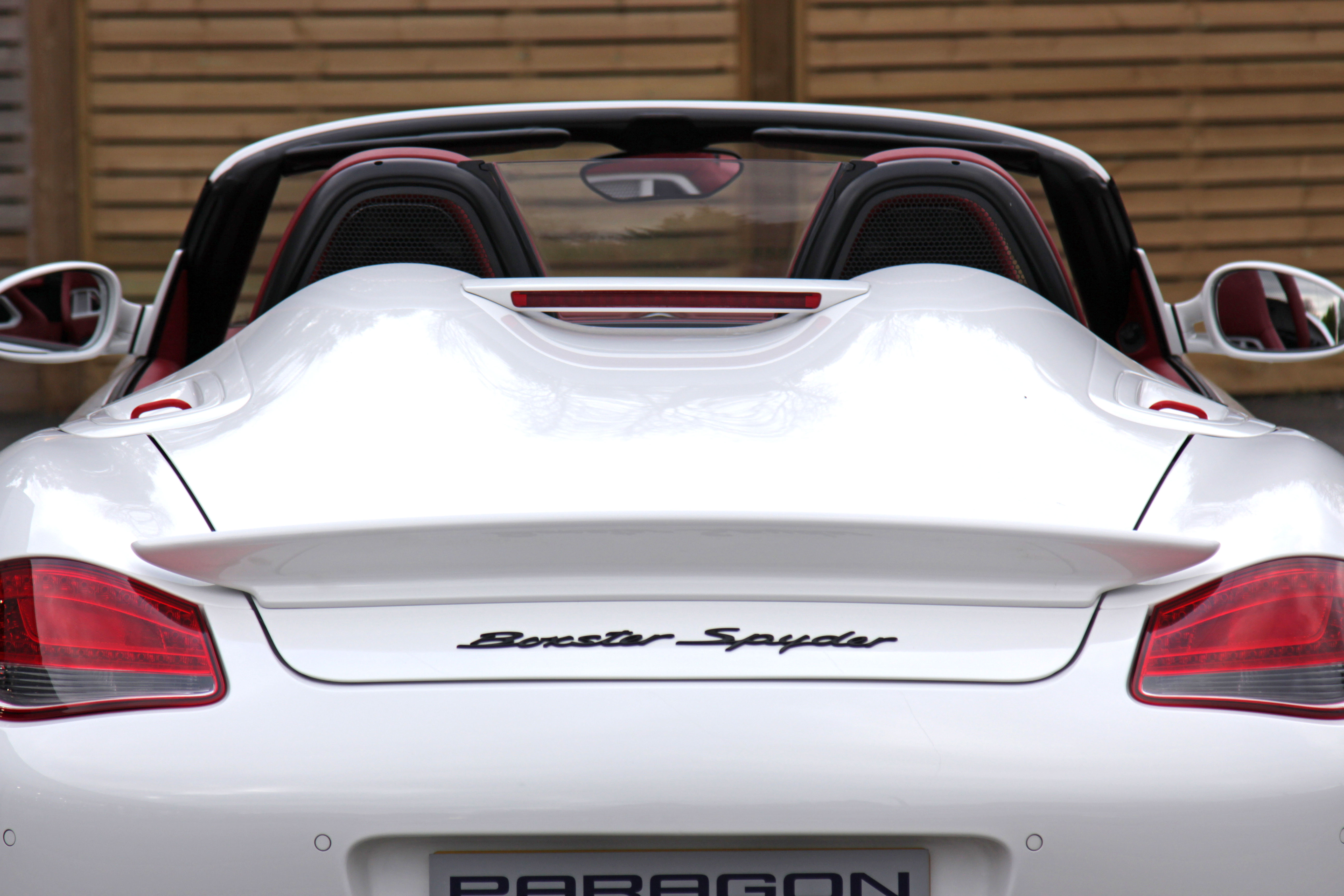 As standard the Spyder is fitted with a wind deflector, Porsche Stability Management, on board computer, Porsche sound package, 19" Boxster Spyder wheels, colour coded cetnre console, LED daytime running lights.