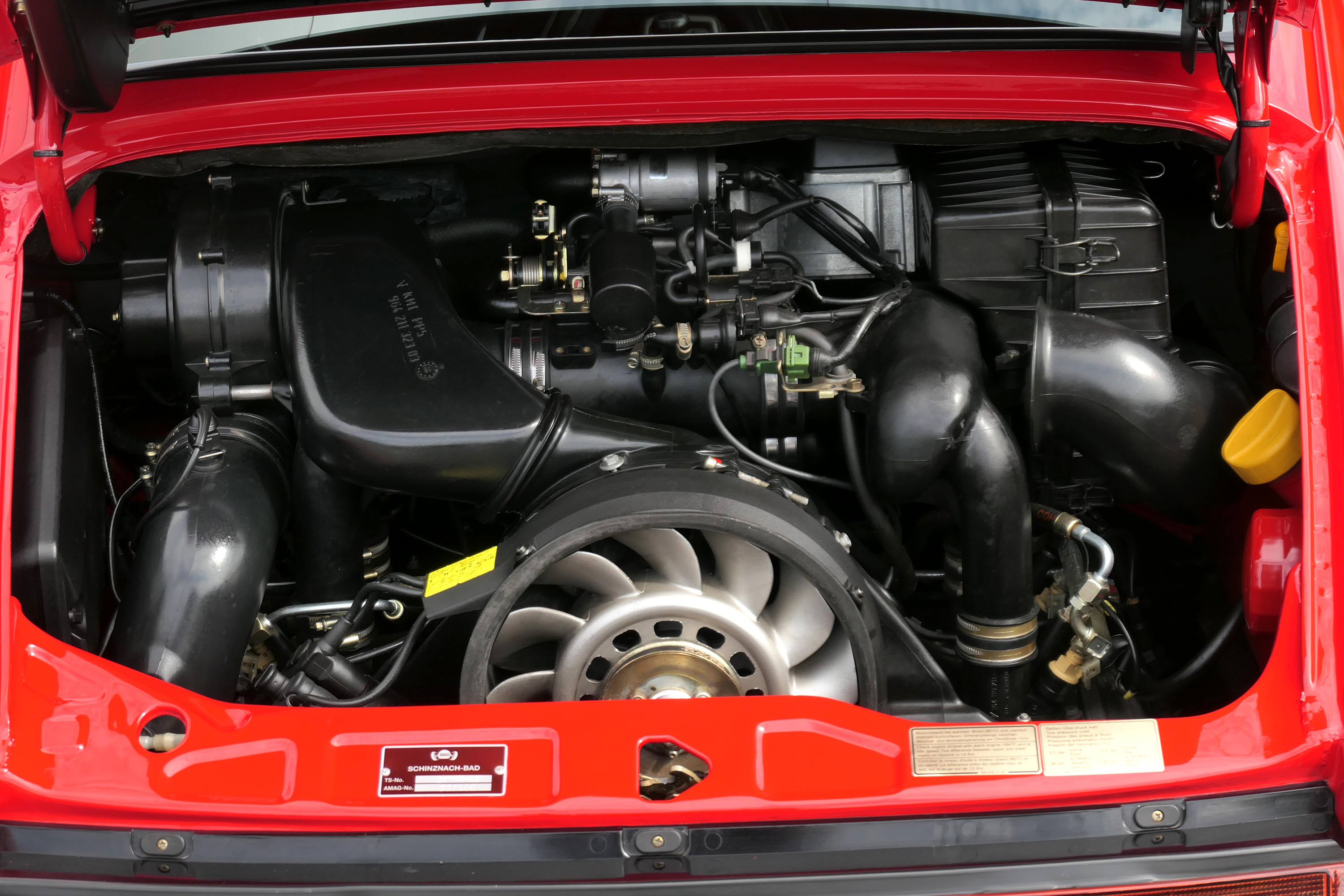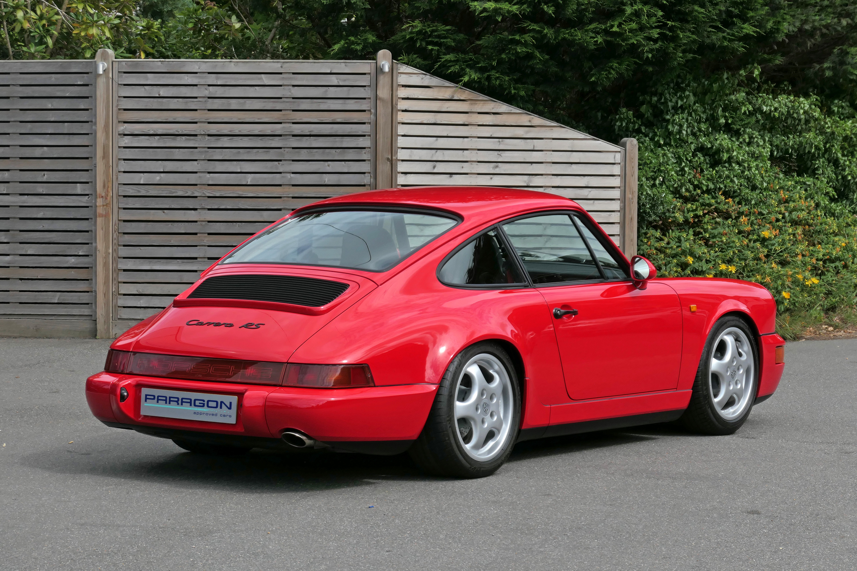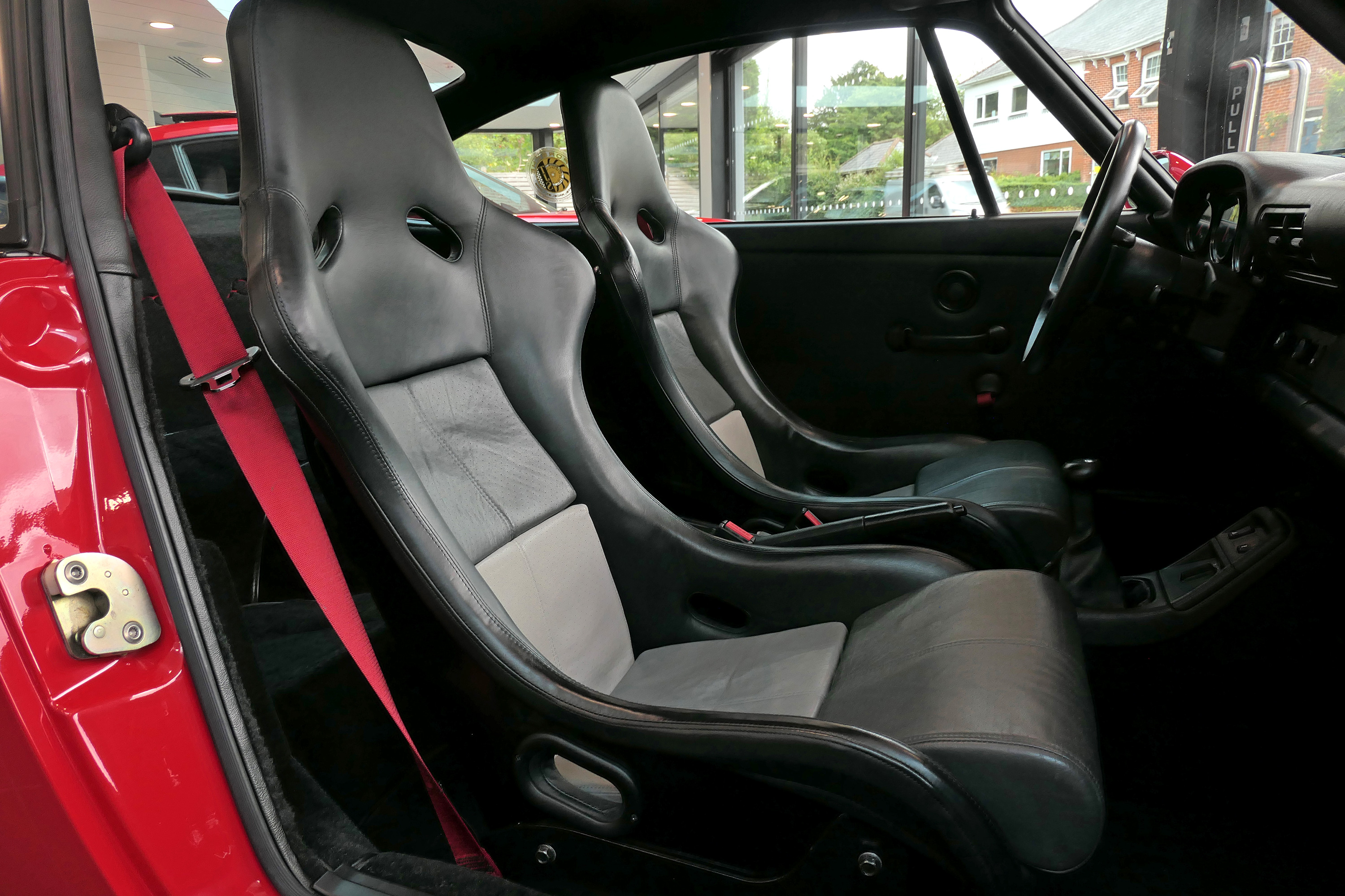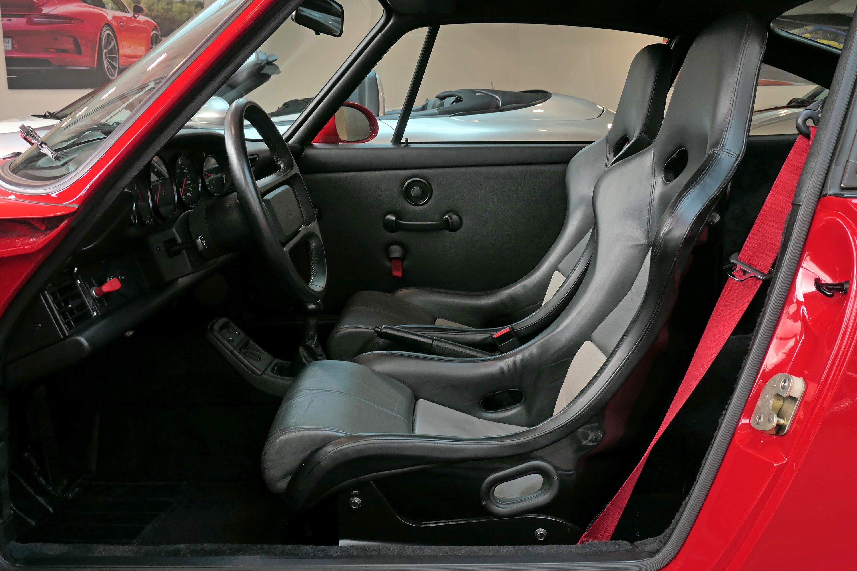 This exceptional 911 (964) RS is a left hand drive version with a 5-speed manual gearbox and is presented in Guards Red with triple tone leather bucket seats.